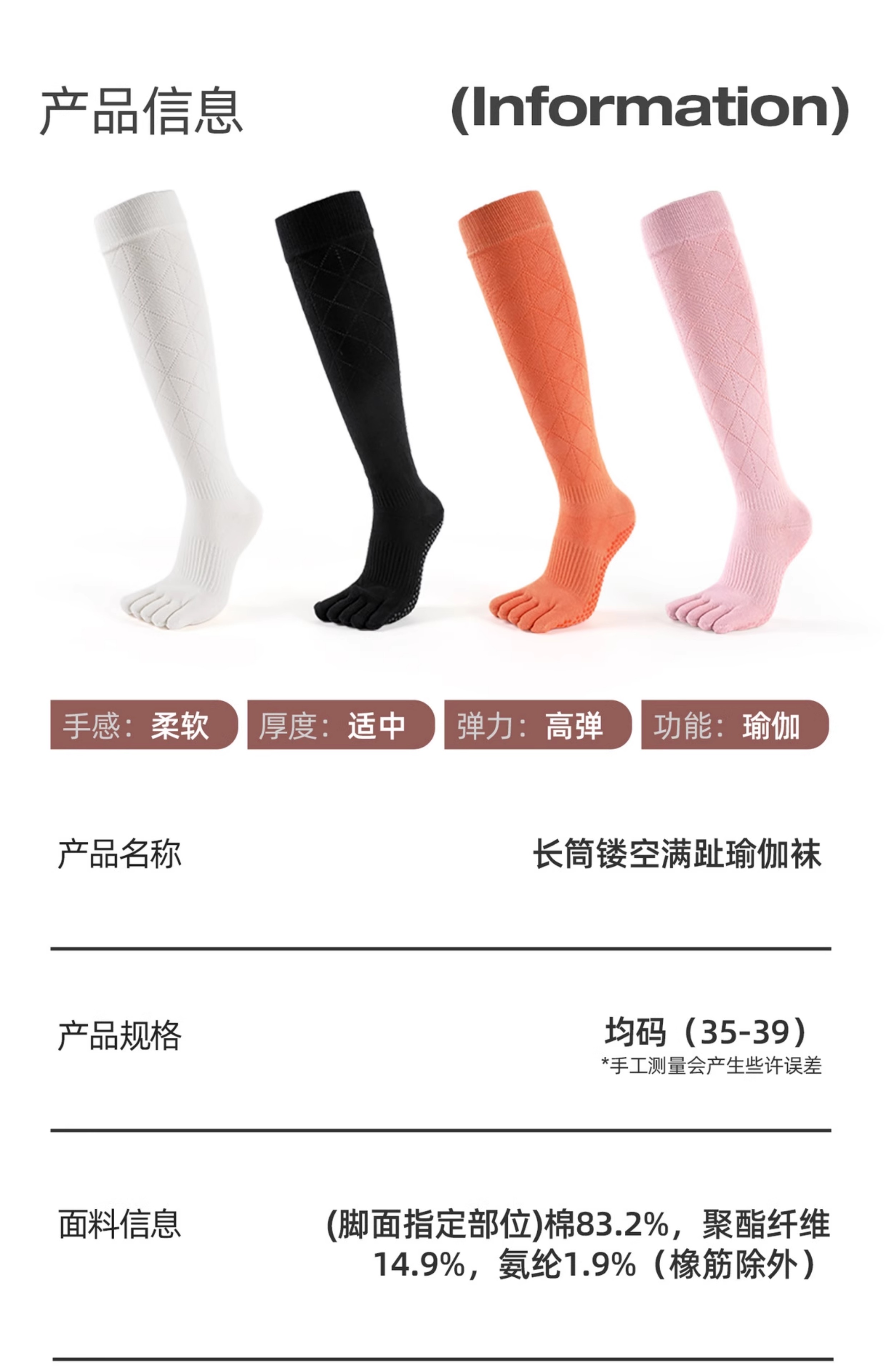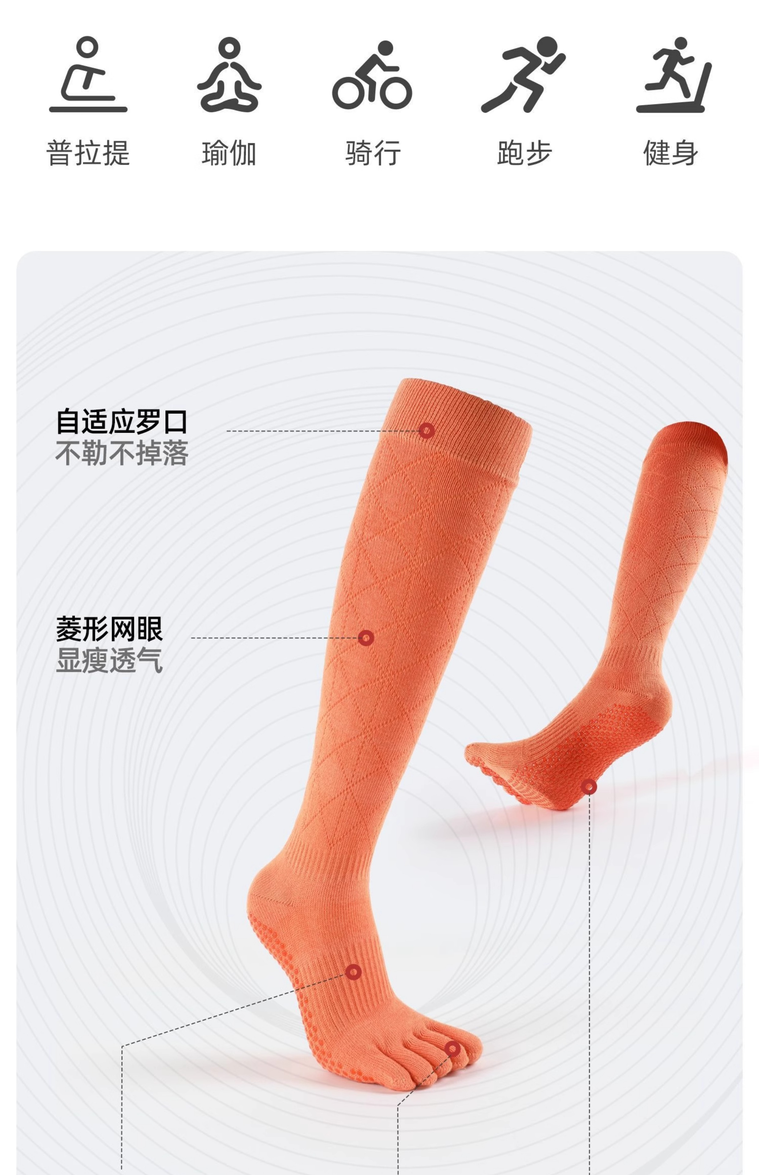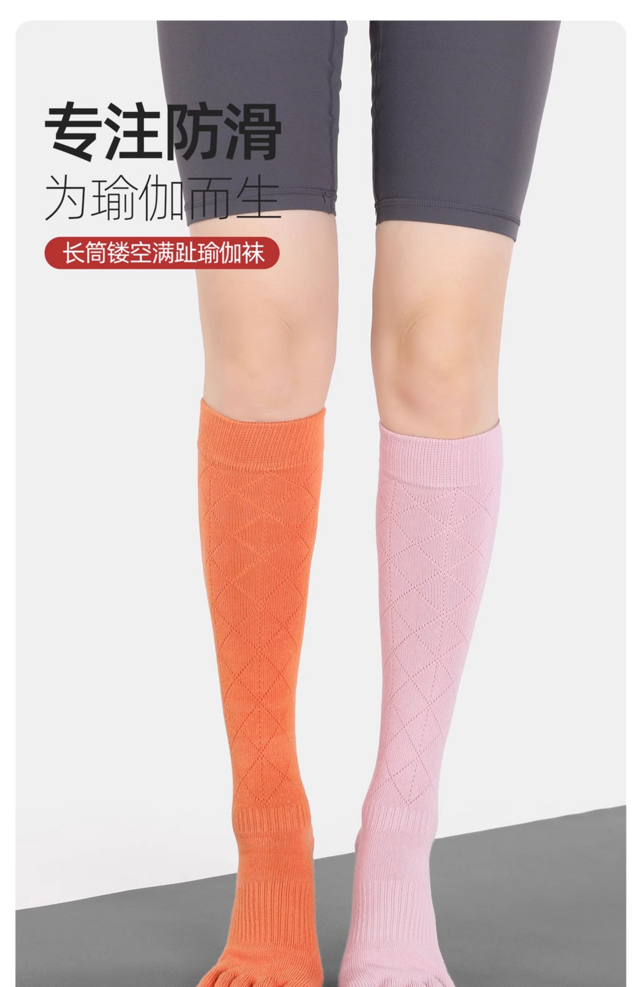 長筒瑜珈襪子防滑專業女五指襪健身防滑襪地板襪成人普拉提襪子