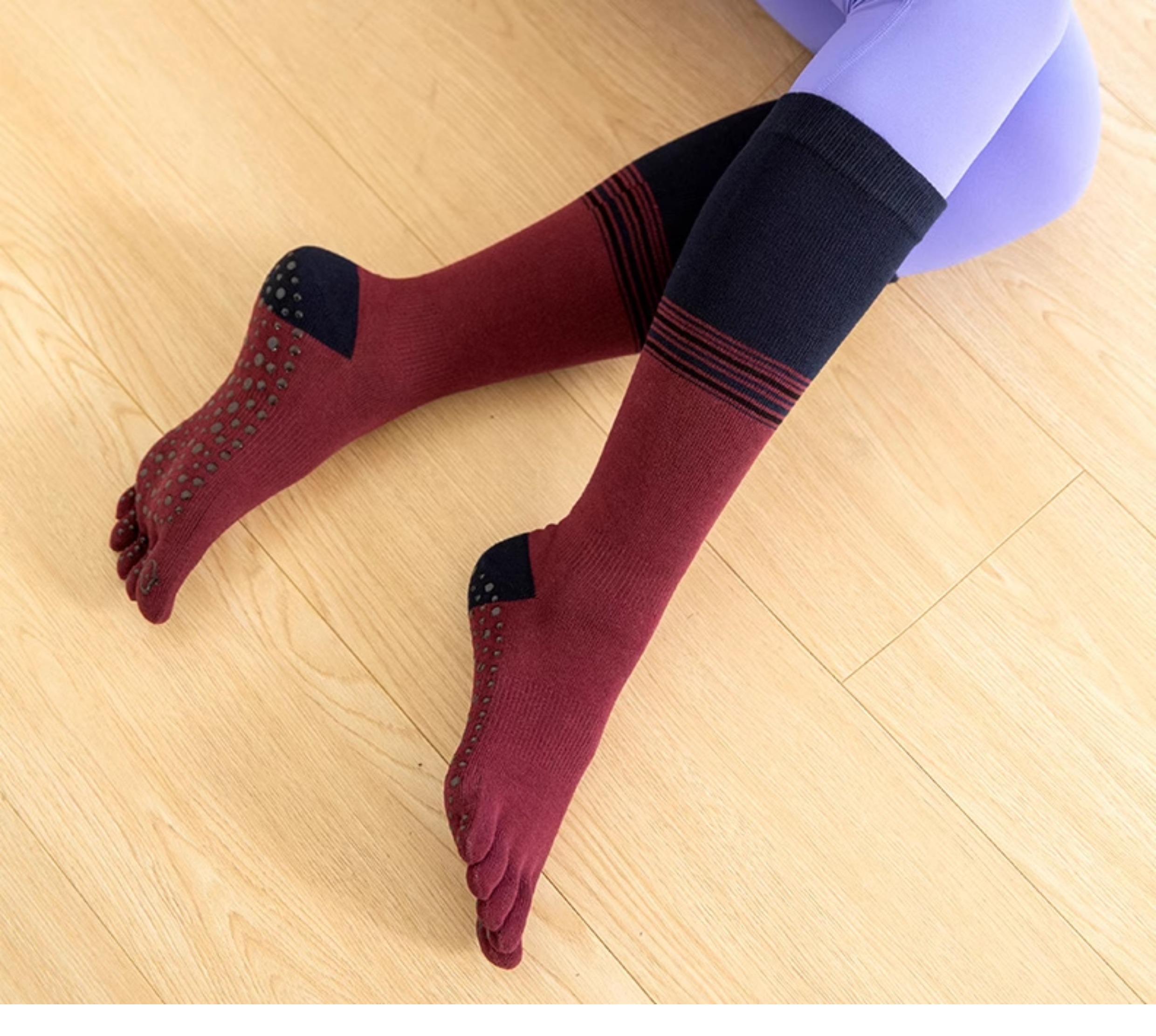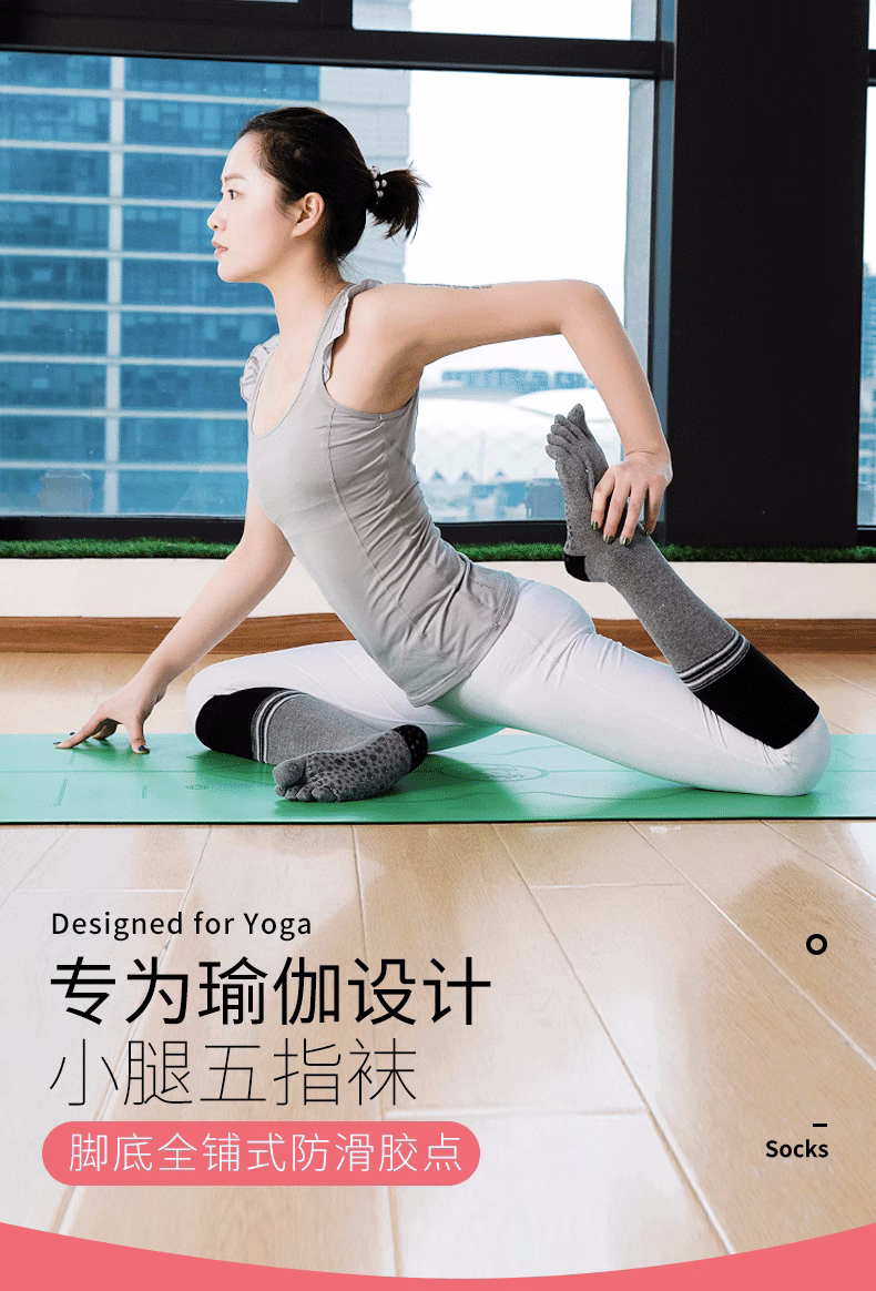 長筒瑜珈襪子防滑專業女五指襪地板襪成人瑜珈防滑襪普拉提襪子