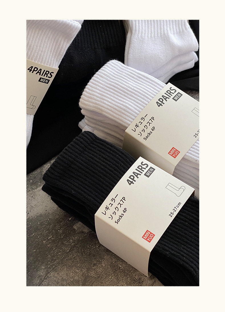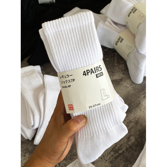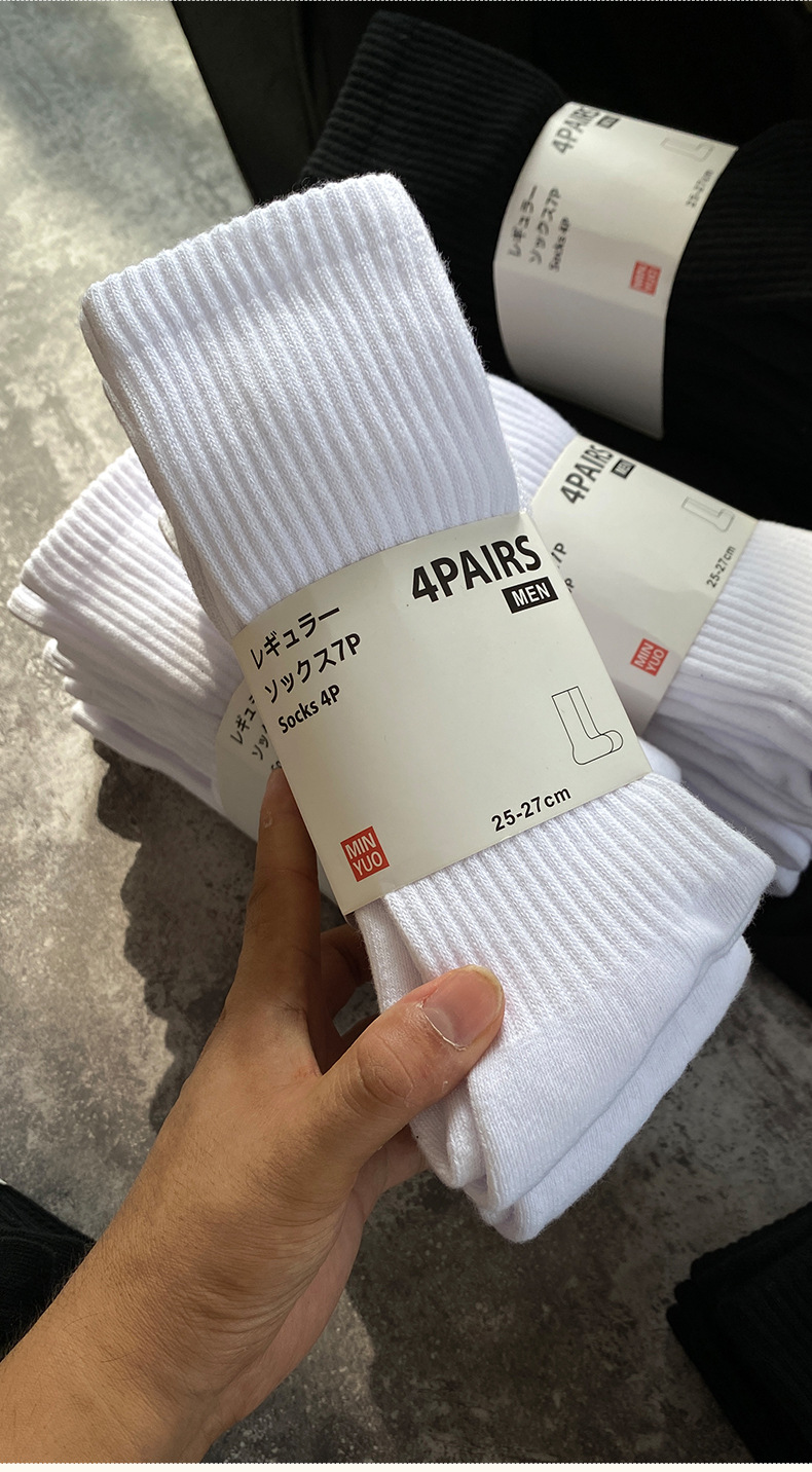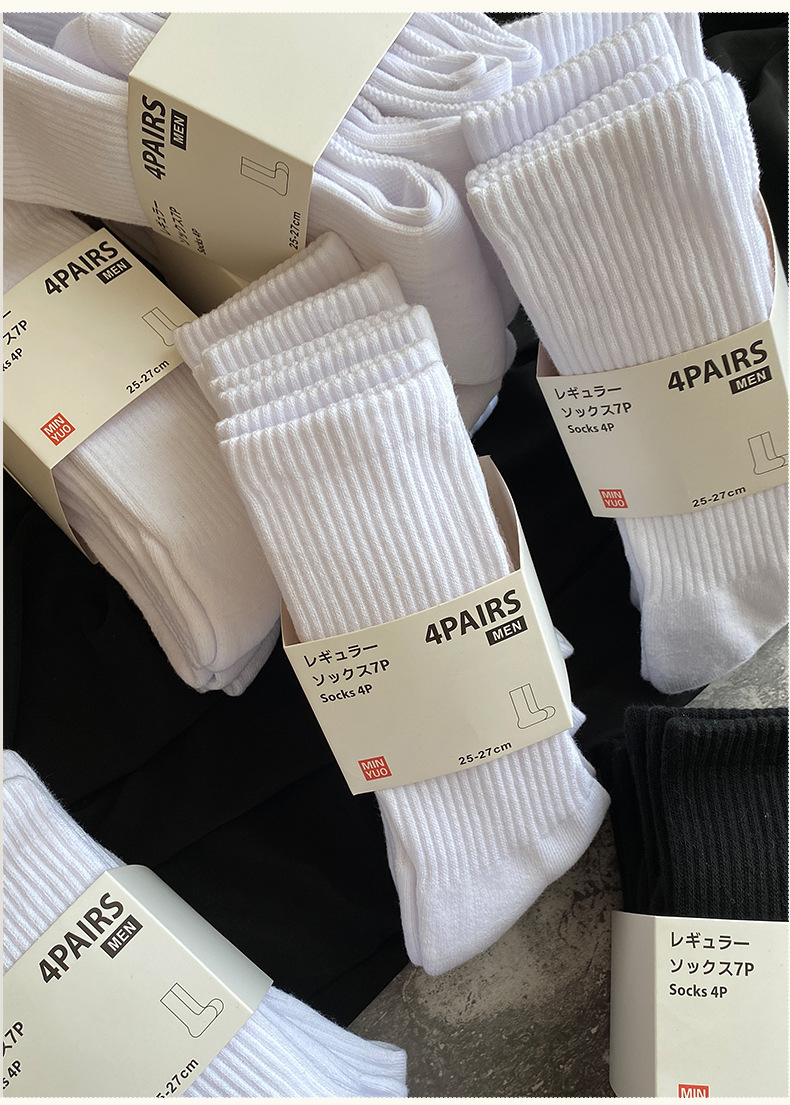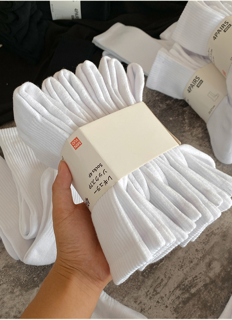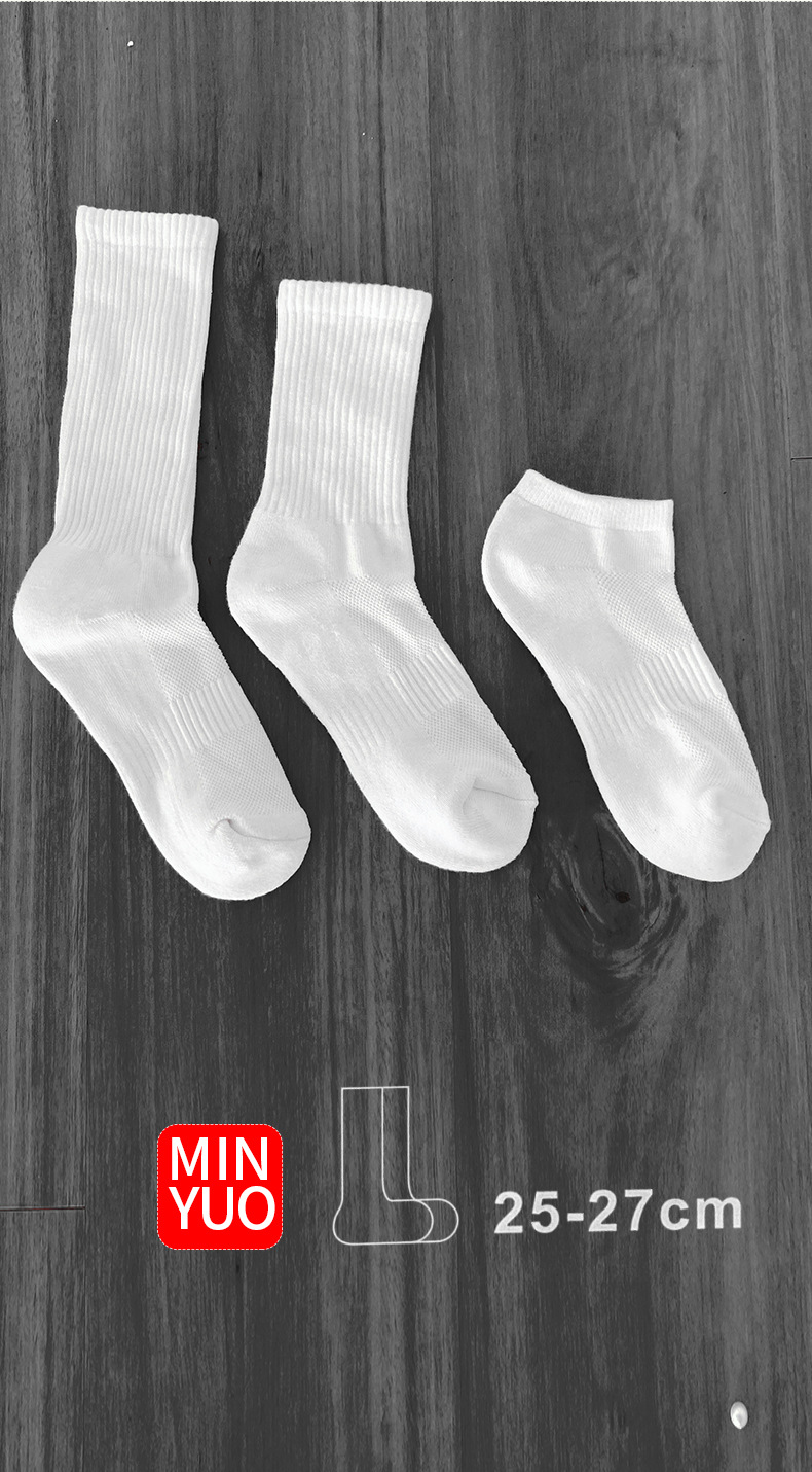 襪子男中筒襪白色純棉加厚毛巾底男生運動高筒襪吸汗防臭長筒襪