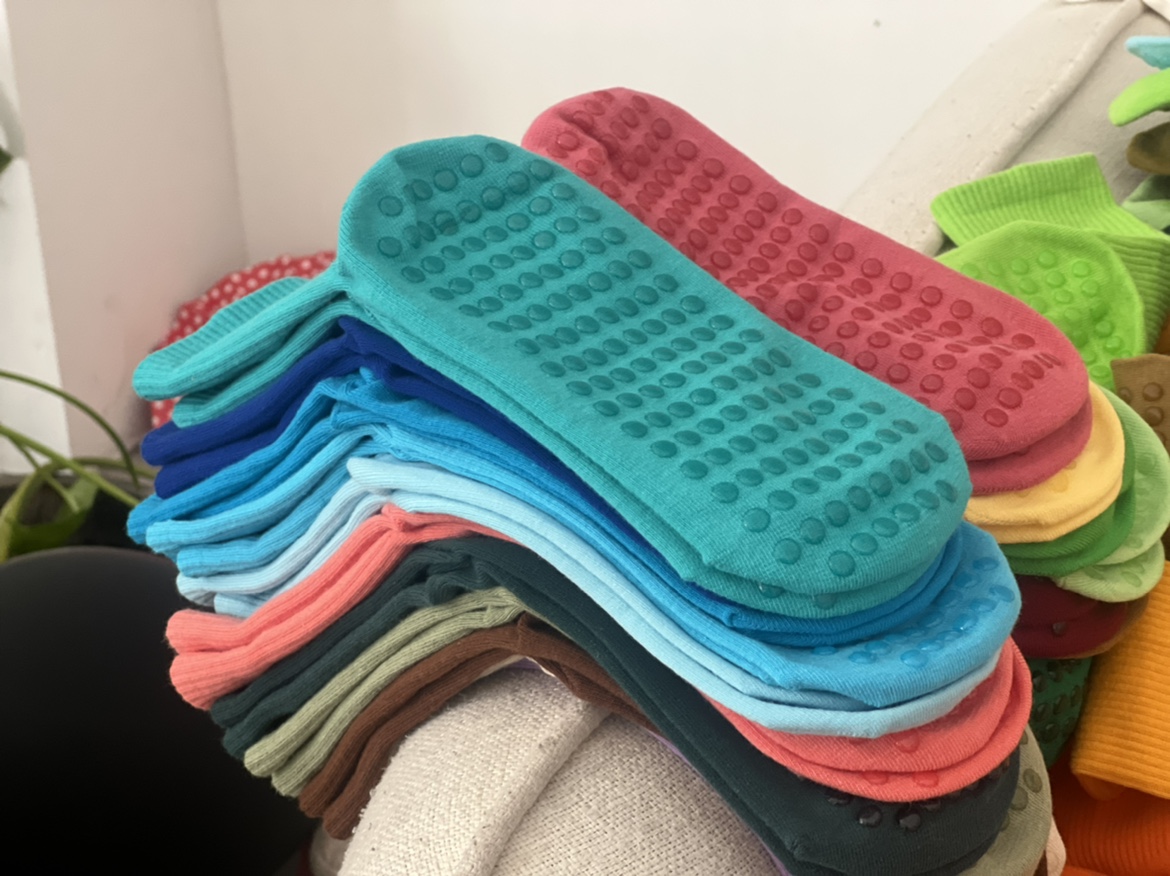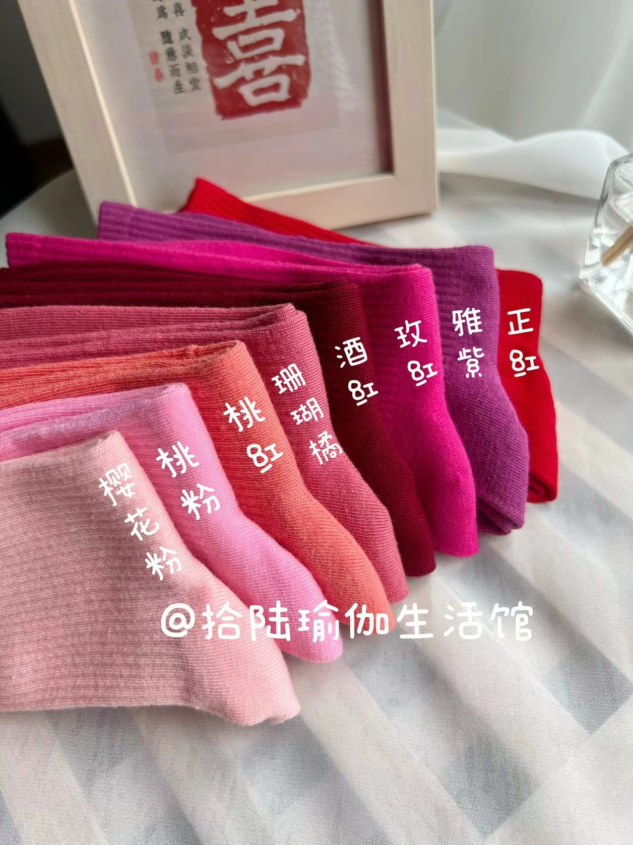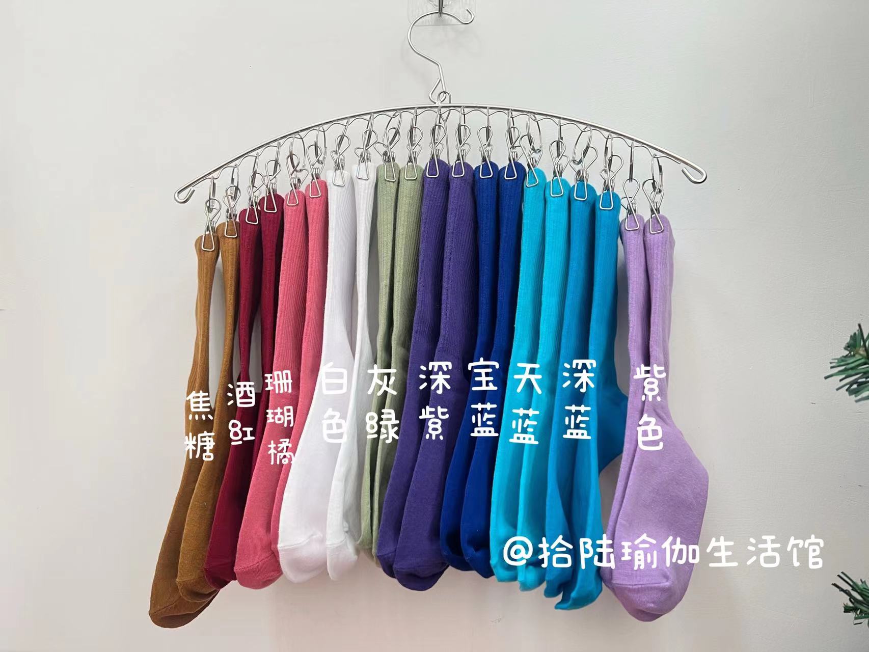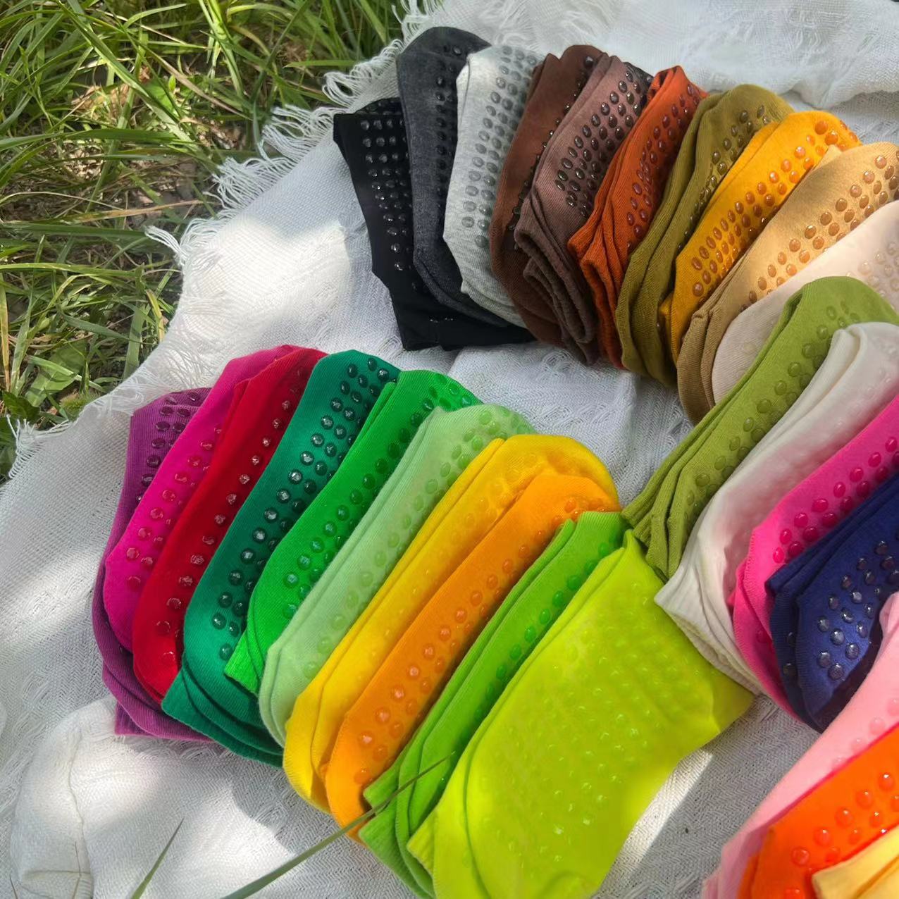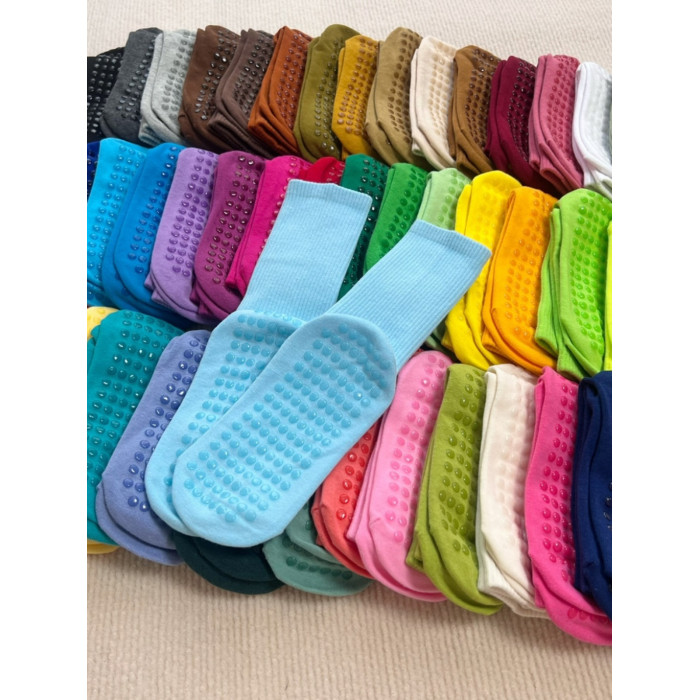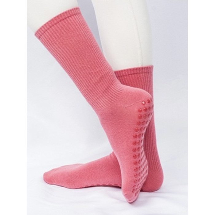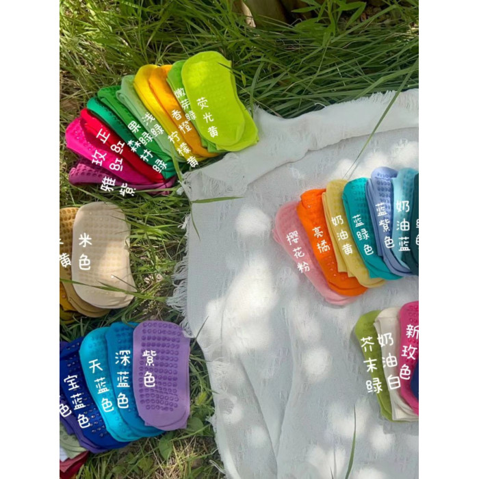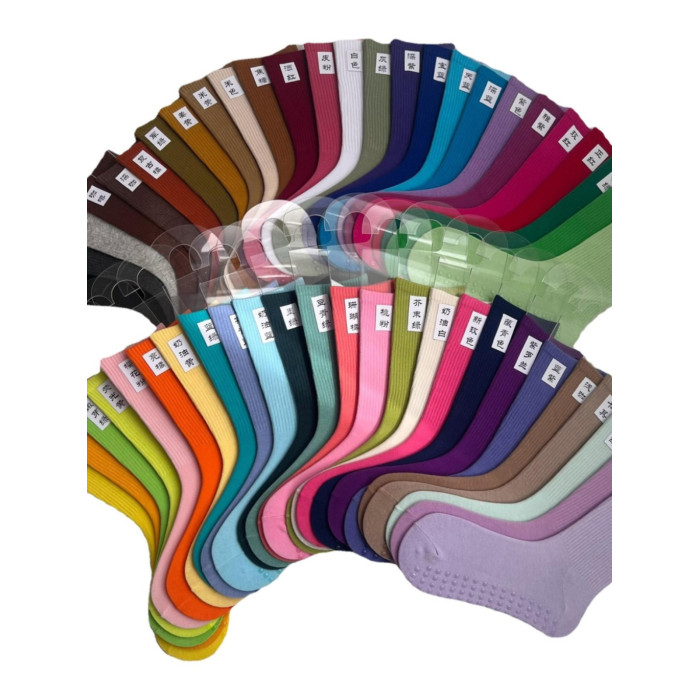 51色腳底防滑竪紋瑜珈普拉提舞蹈跳操中長筒棉襪彩色純色搭配紫色