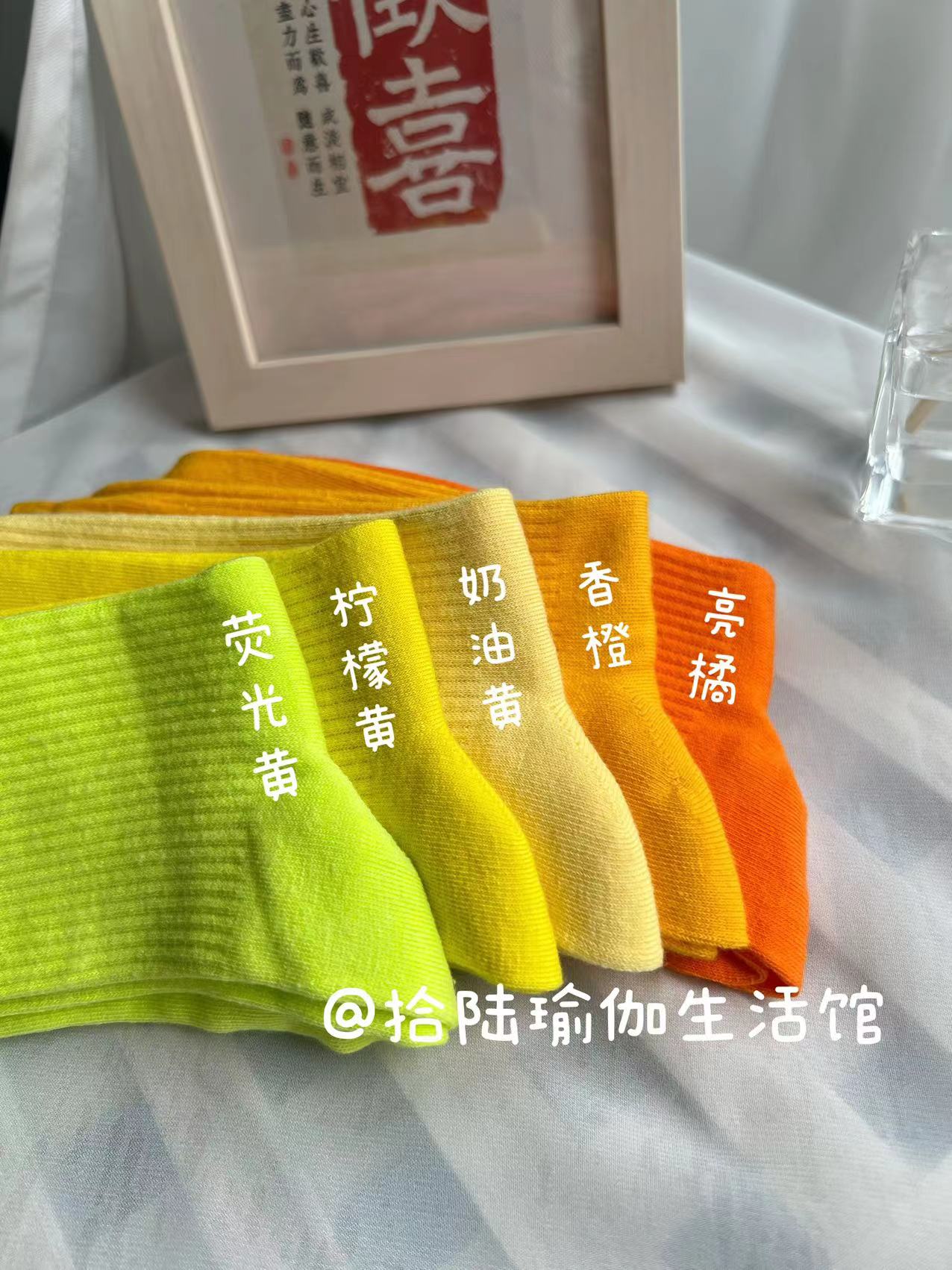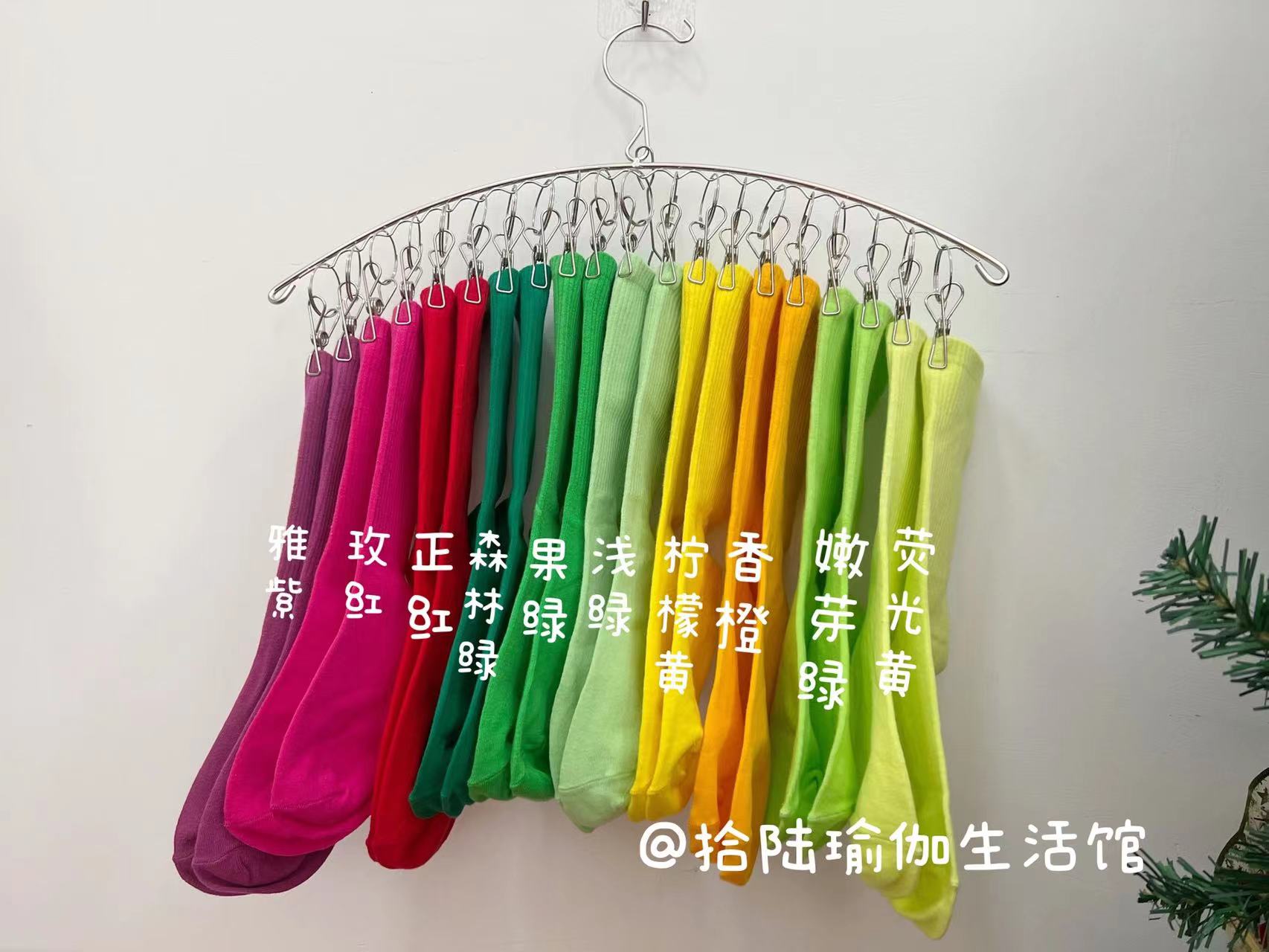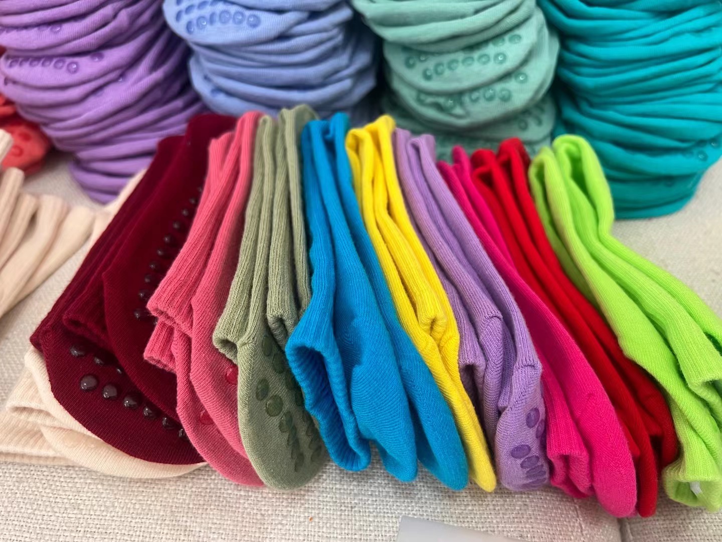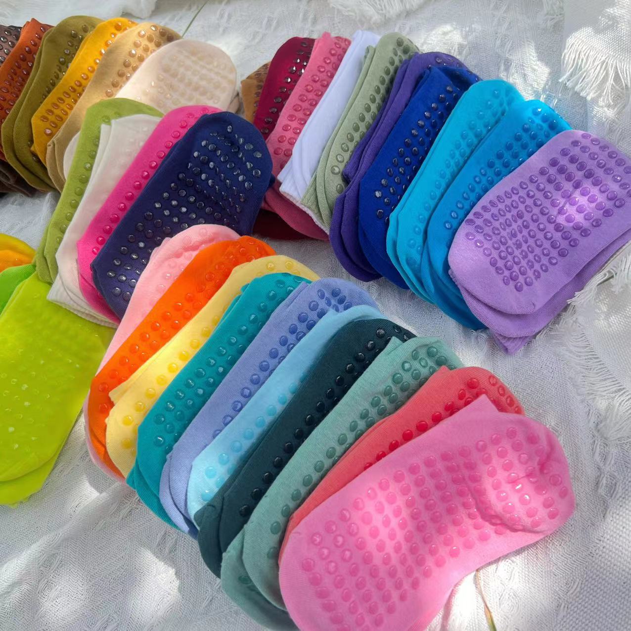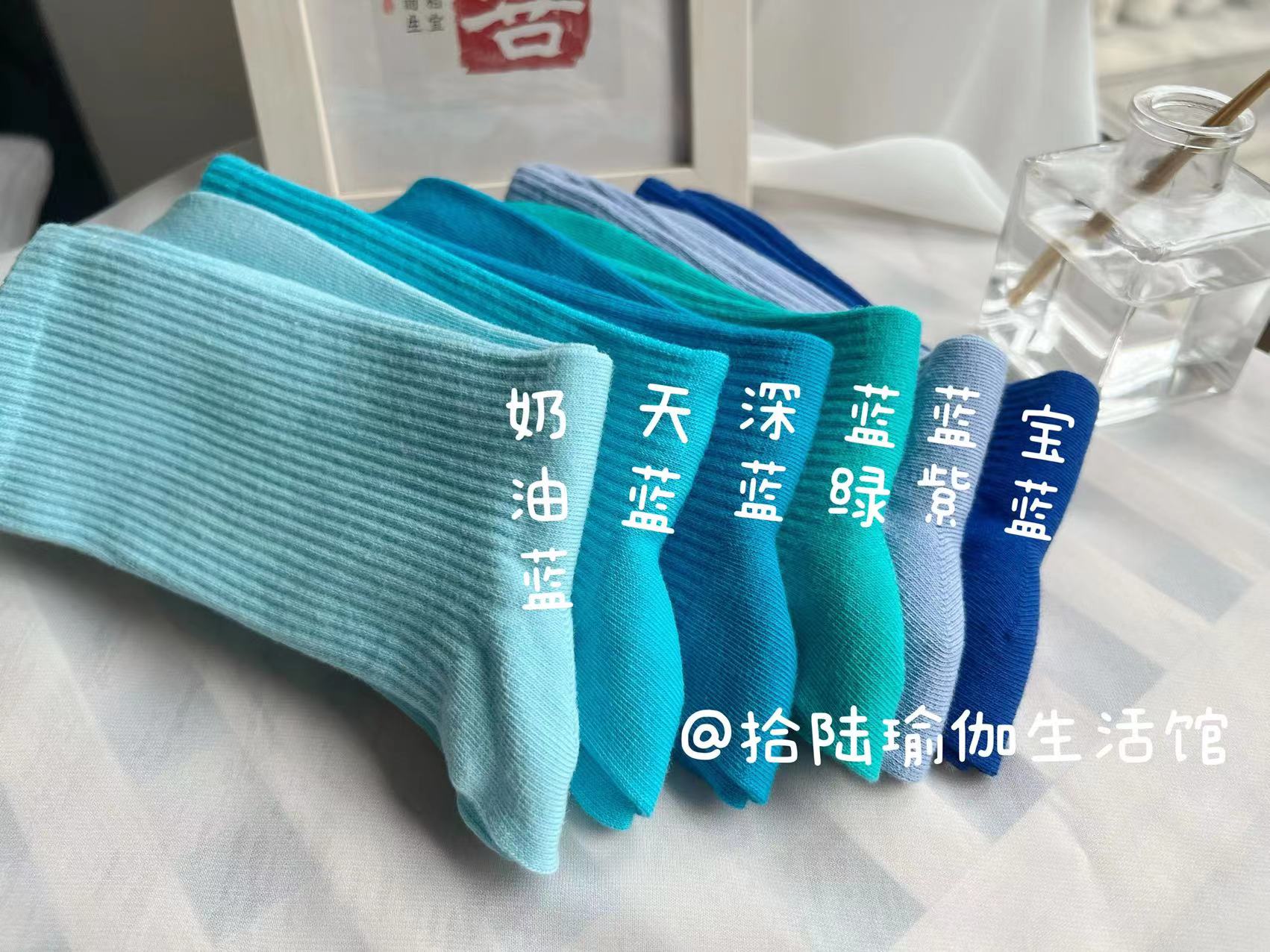 51色腳底防滑竪紋瑜珈普拉提舞蹈跳操中長筒棉襪彩色純色搭配紫色