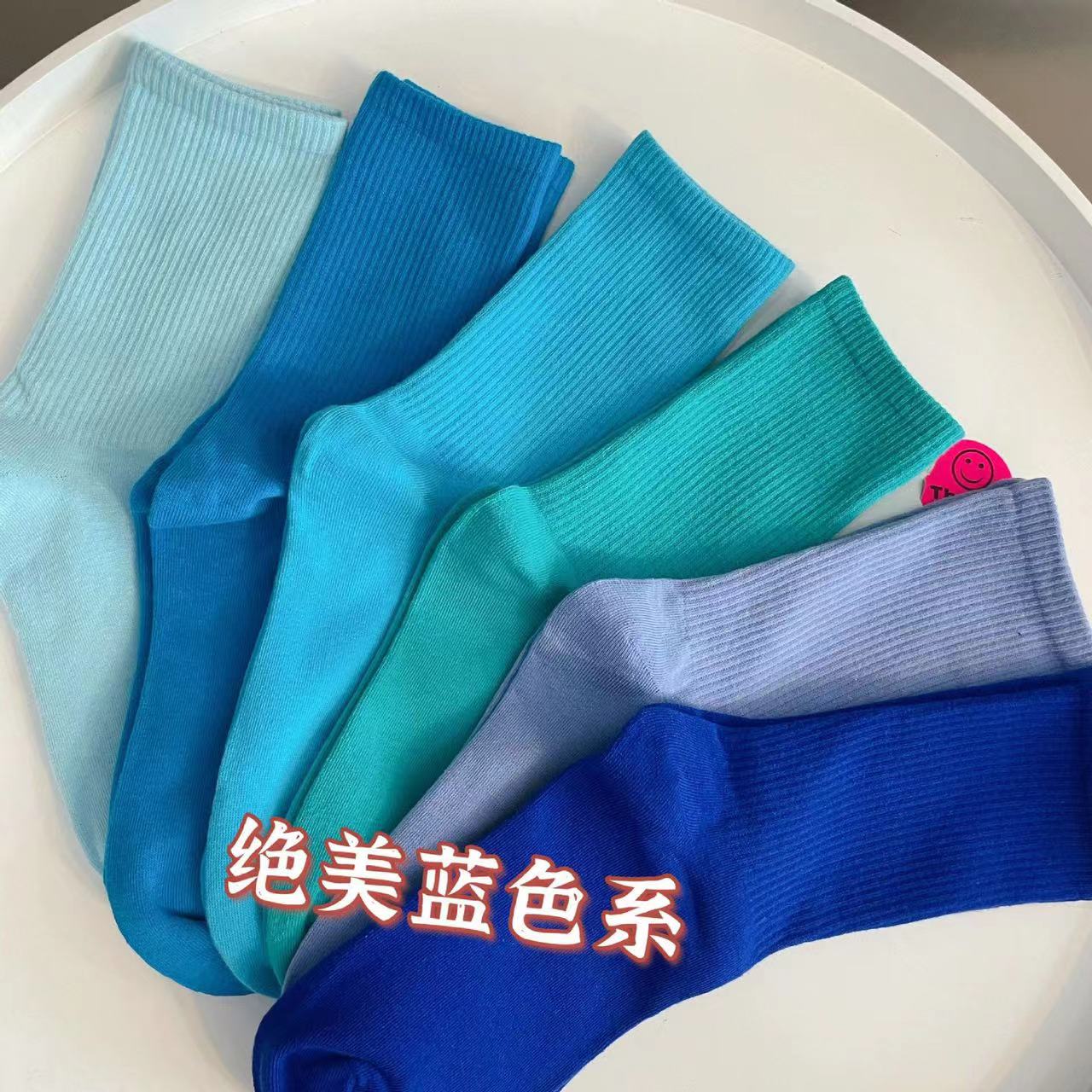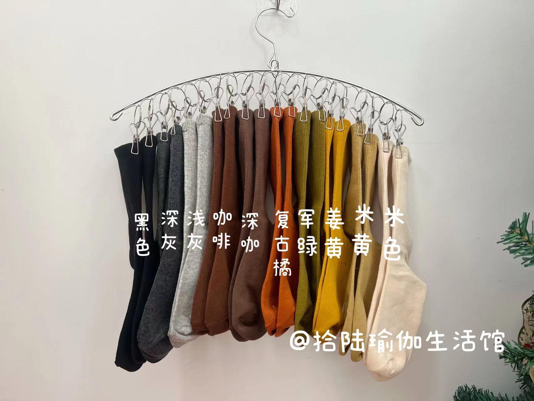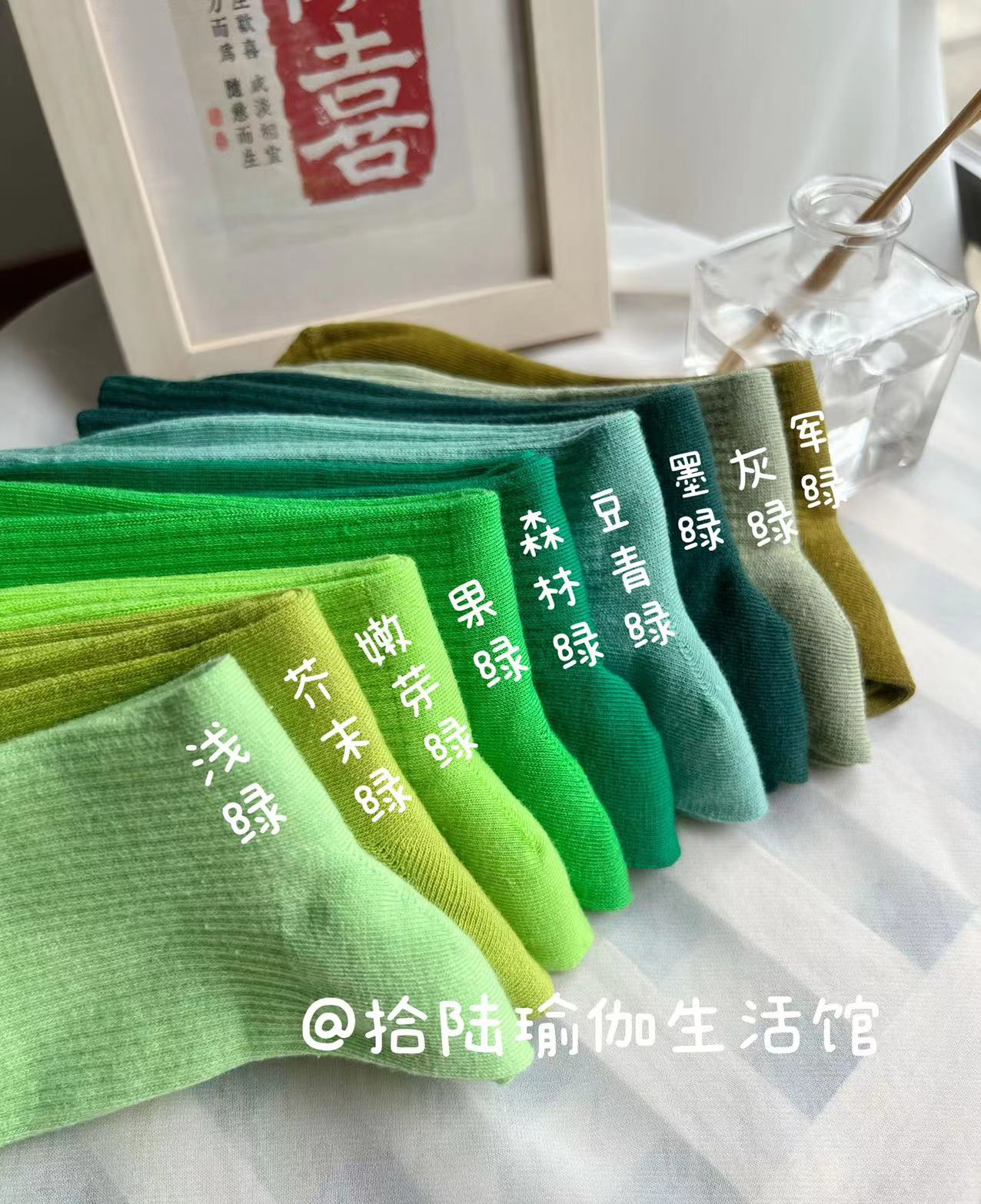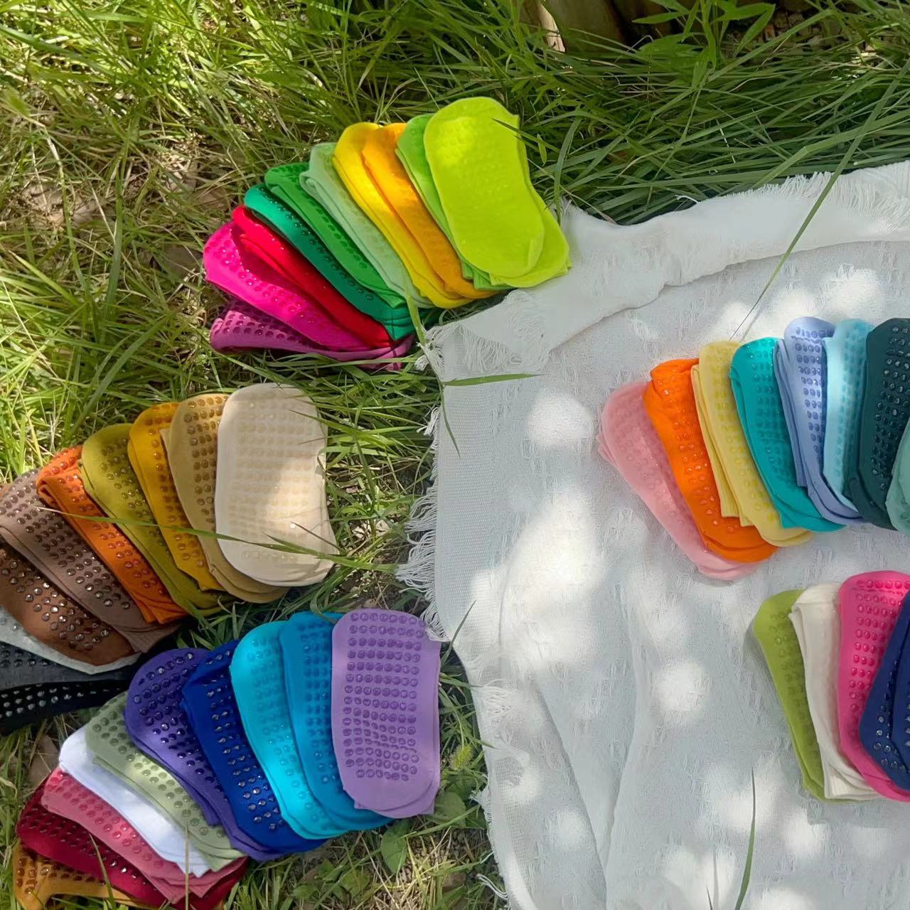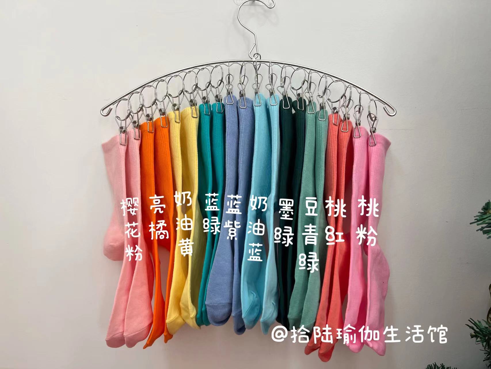 51色腳底防滑竪紋瑜珈普拉提舞蹈跳操中長筒棉襪彩色純色搭配紫色
