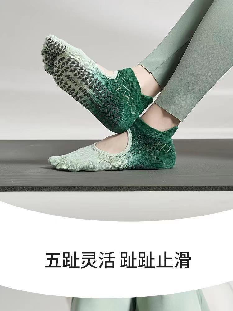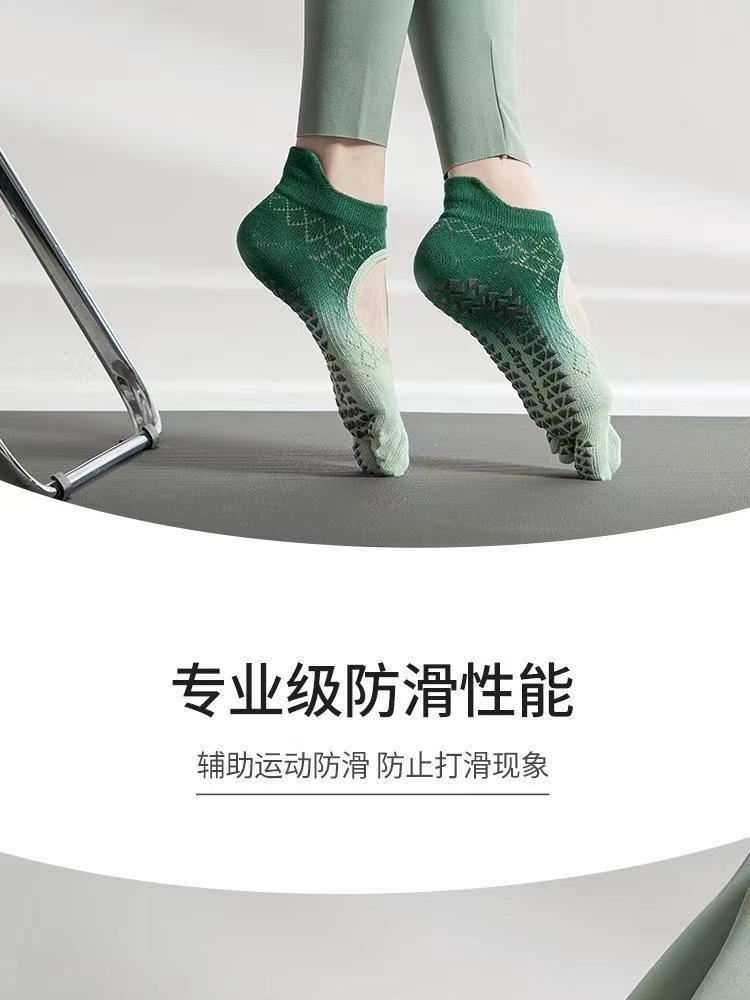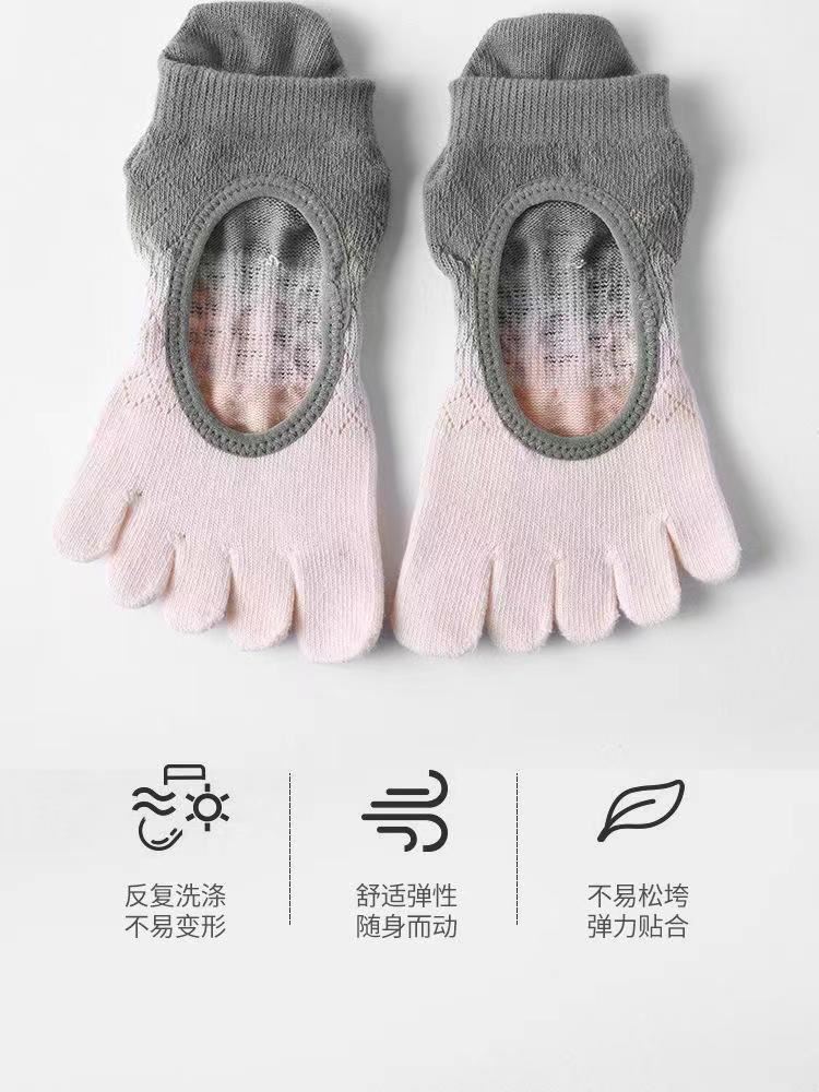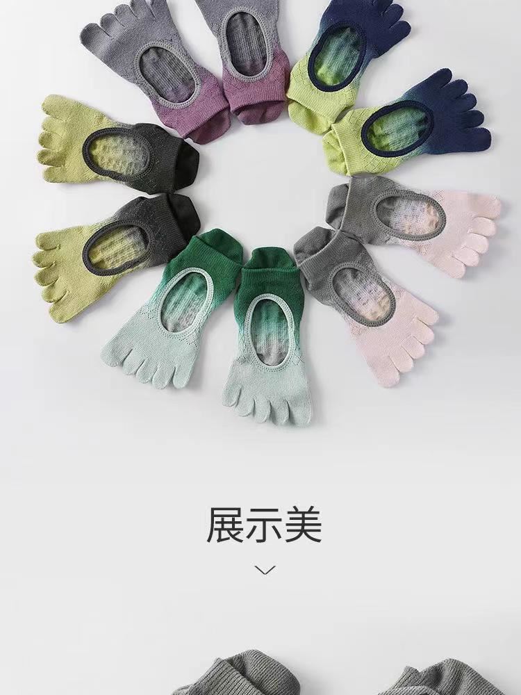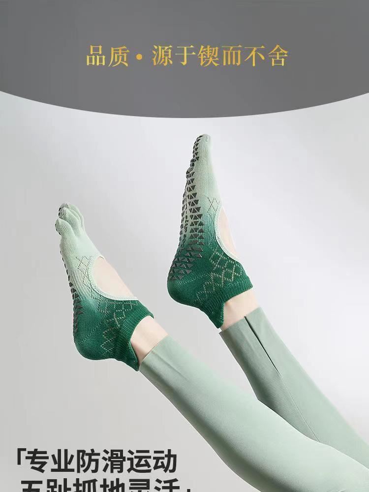 漸變綁帶露背瑜珈襪子室內防滑專業女五指襪普拉提健身舞蹈練功襪