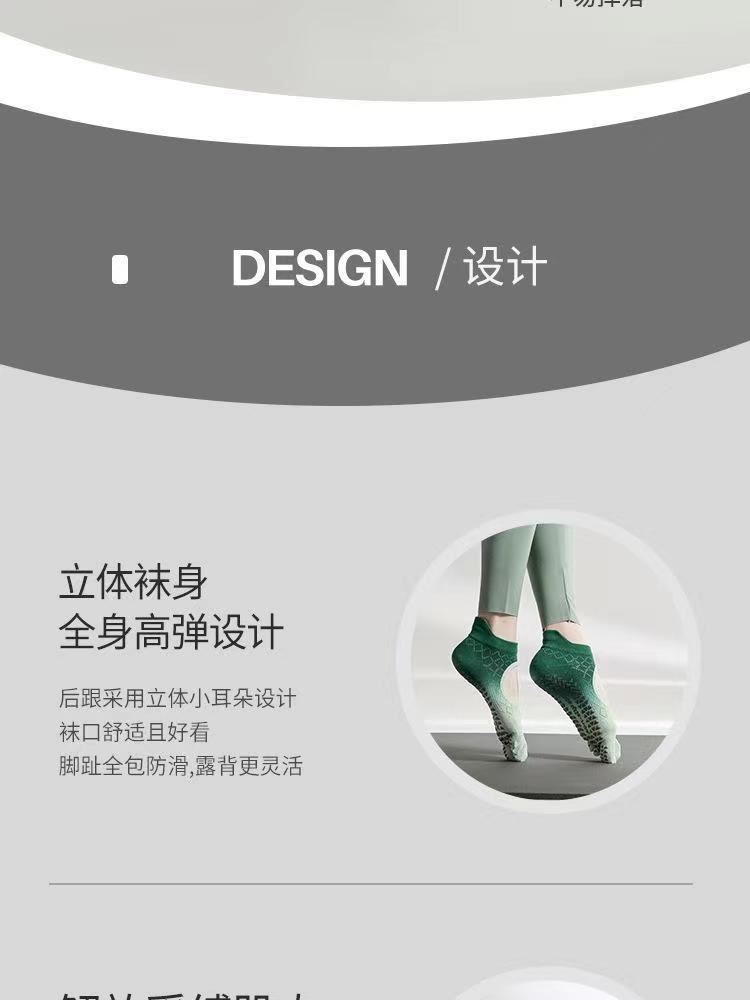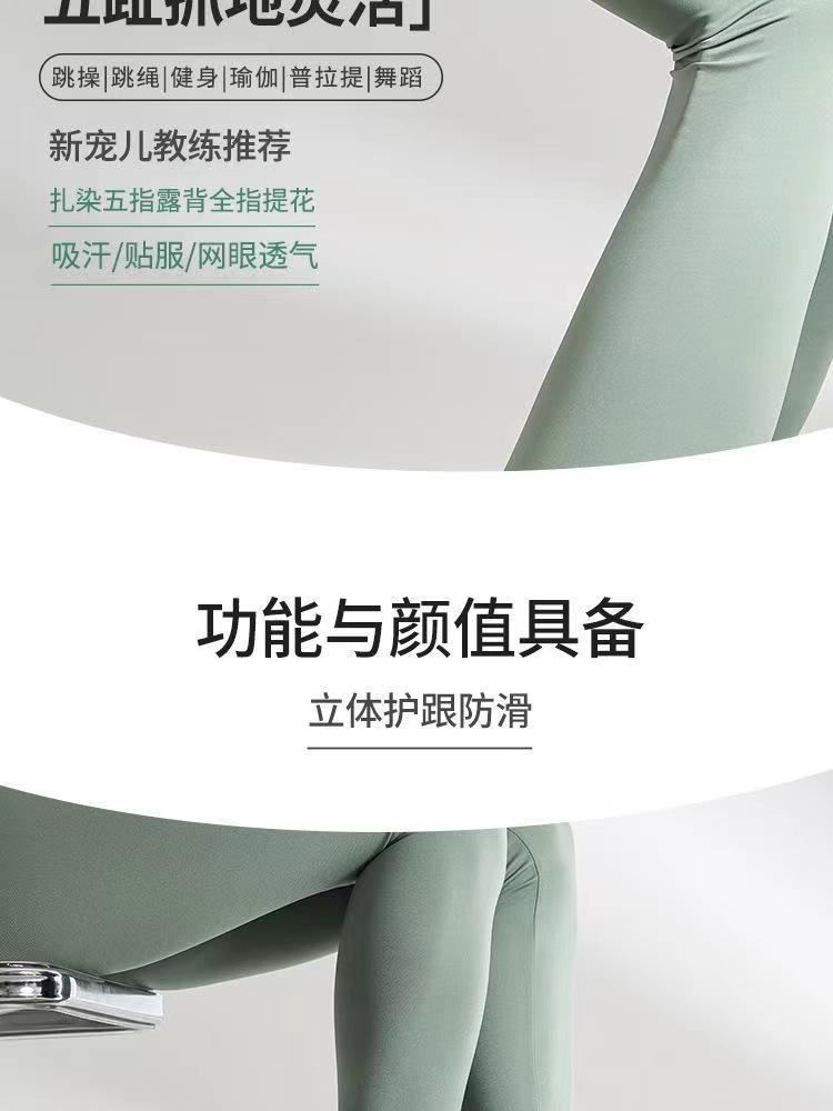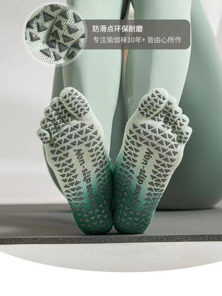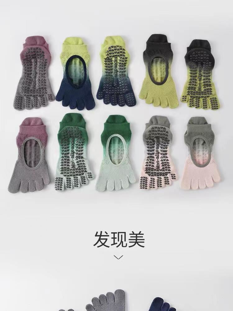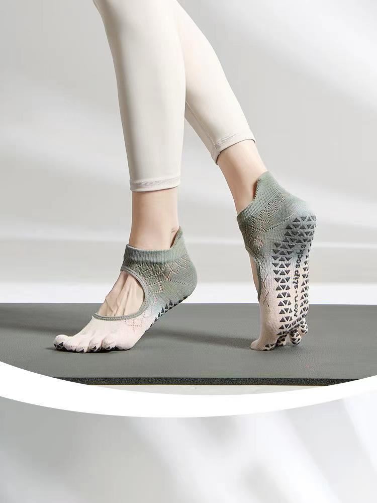 漸變綁帶露背瑜珈襪子室內防滑專業女五指襪普拉提健身舞蹈練功襪