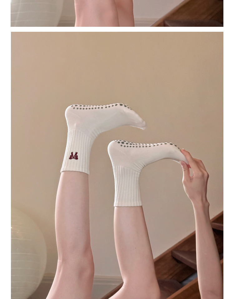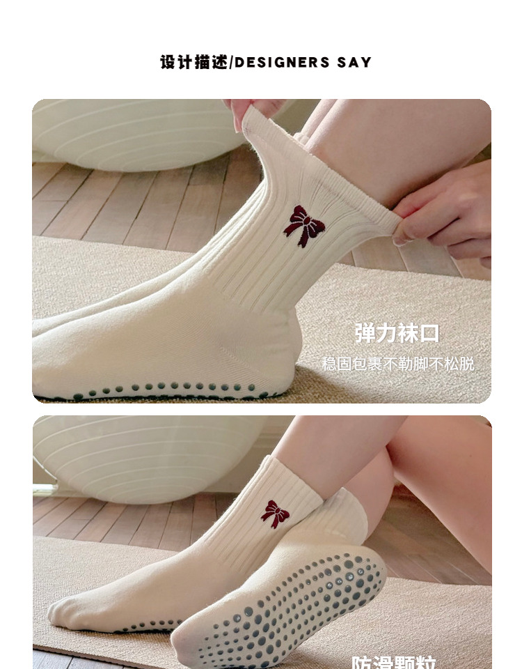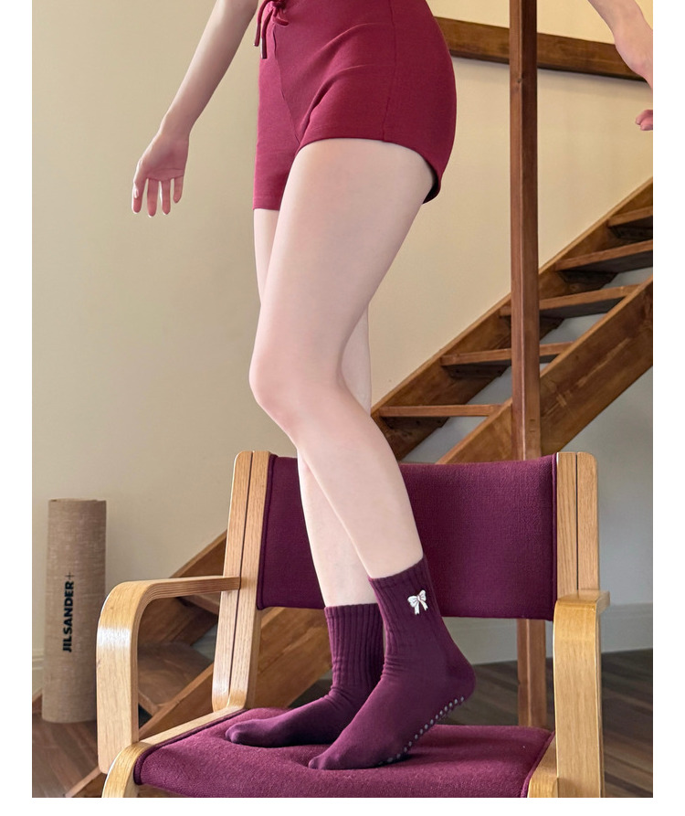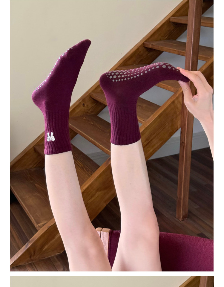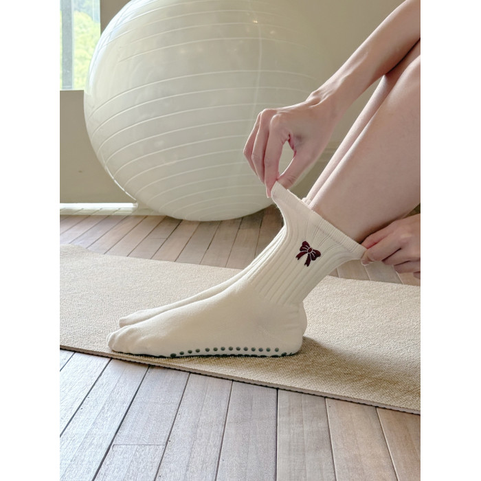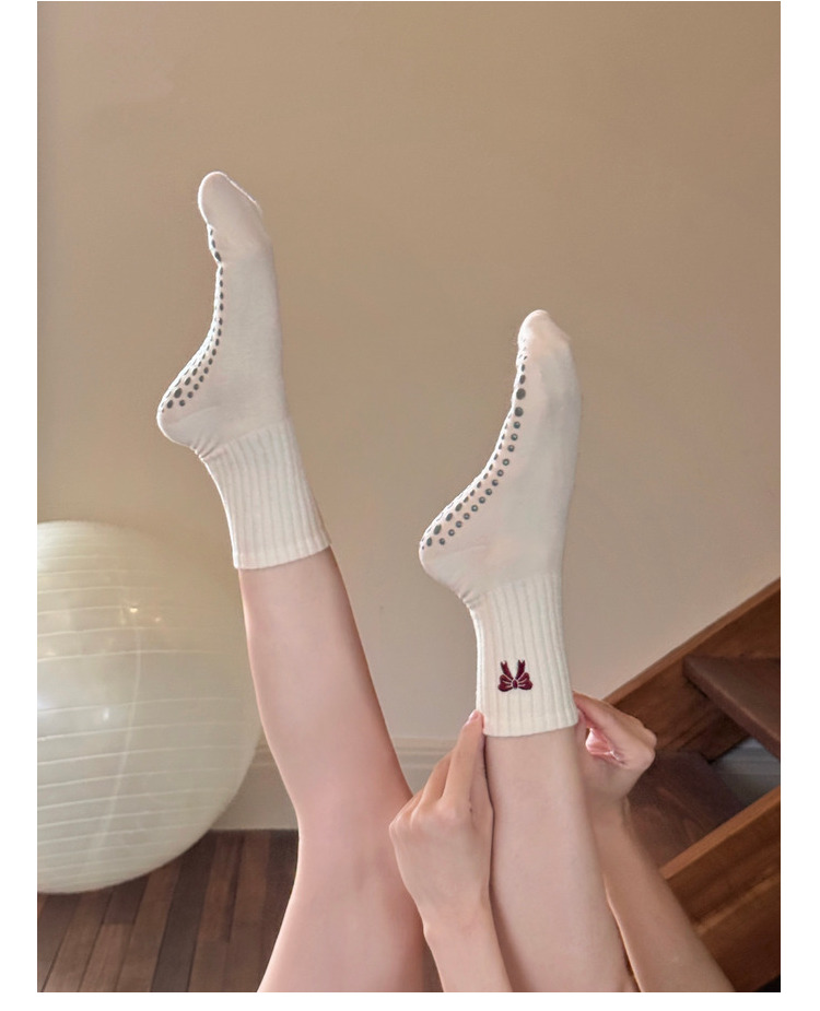 YSH/蝴蝶結刺綉襪 防滑靜音透氣瑜珈襪普拉提專業中筒襪跳操裝備