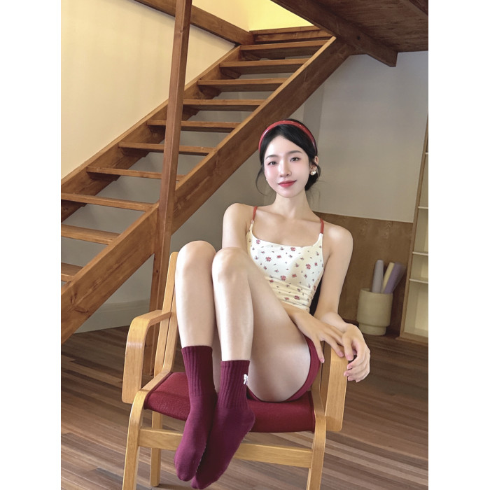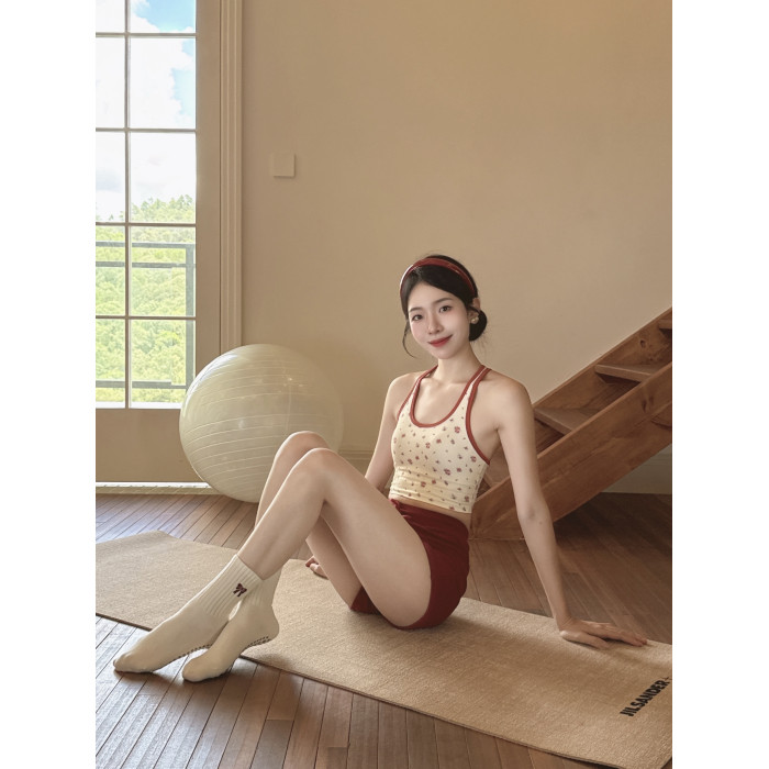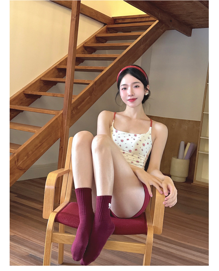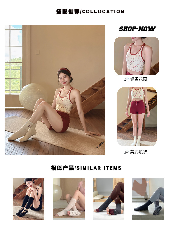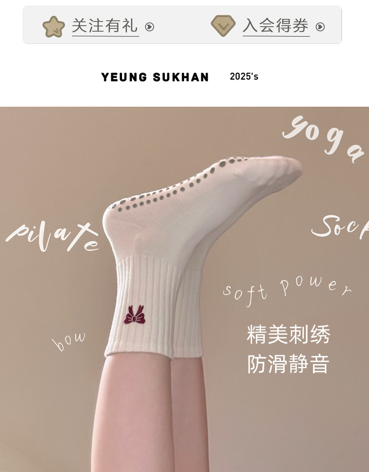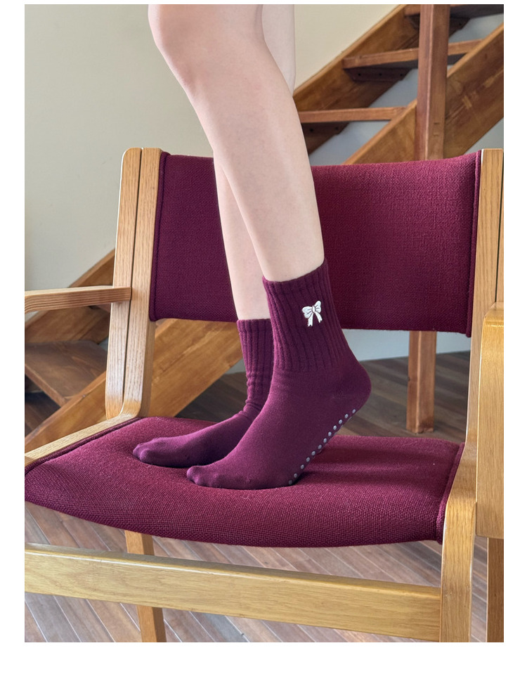 YSH/蝴蝶結刺綉襪 防滑靜音透氣瑜珈襪普拉提專業中筒襪跳操裝備