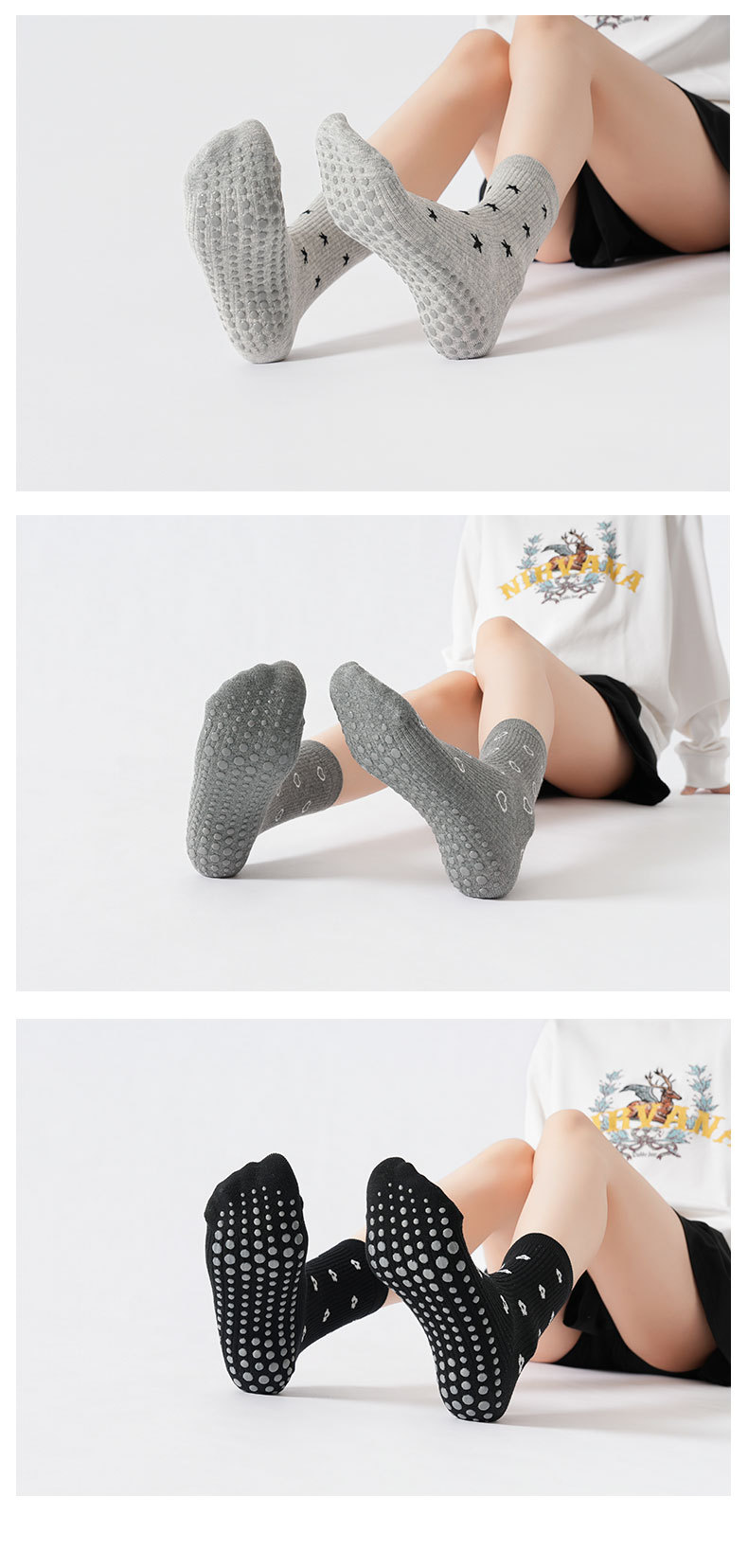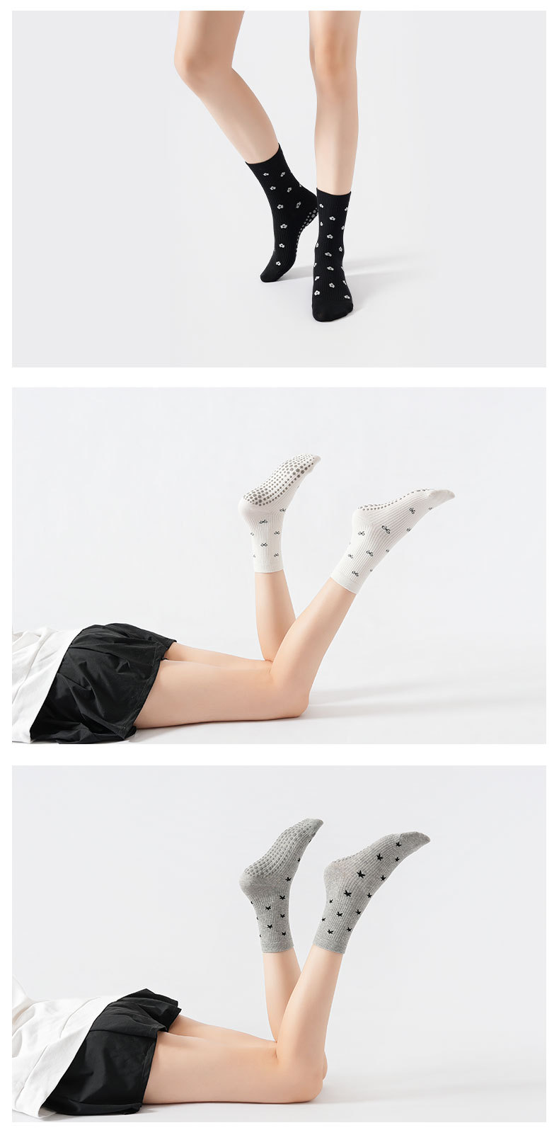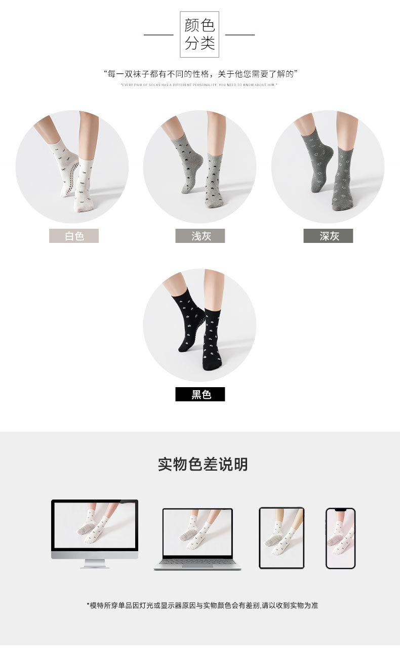 XY0864花色折釦壓力款瑜珈襪韓系學院風普拉提運動襪防滑經典百搭