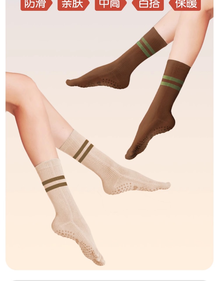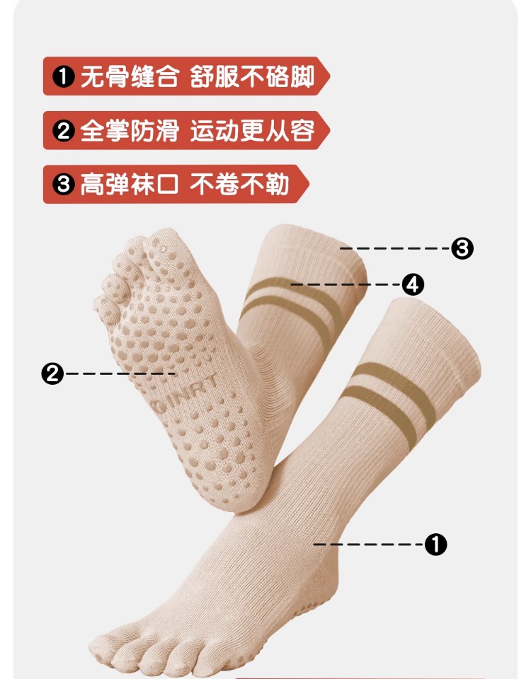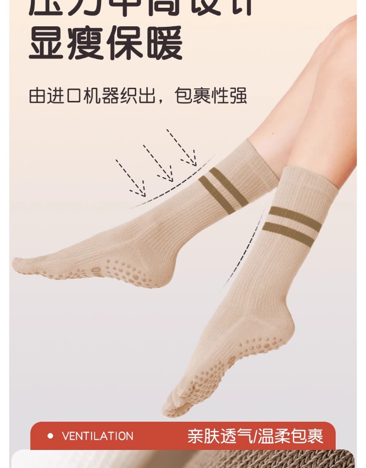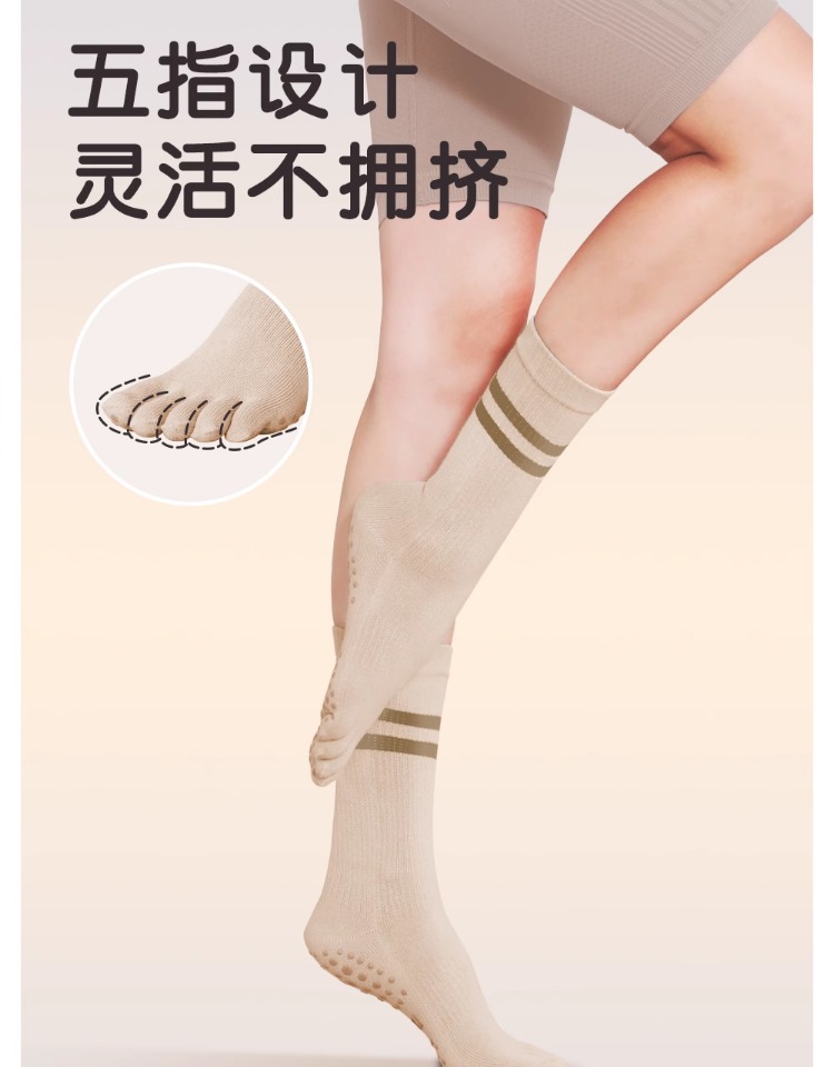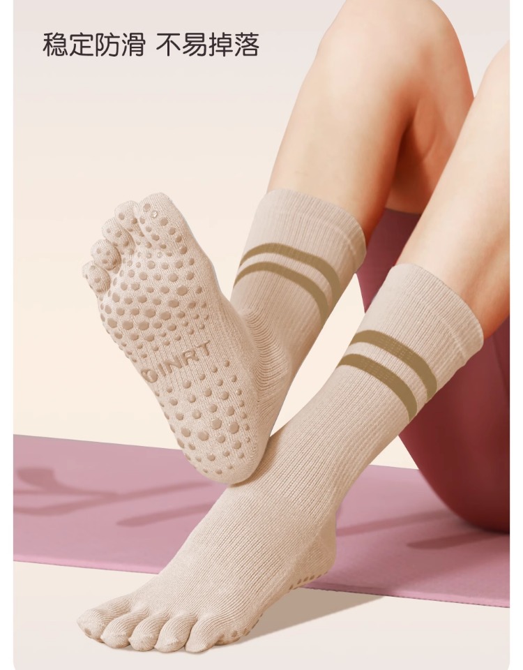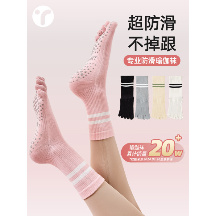 瑜珈襪子防滑專業女普拉提五指襪運動健身分趾襪壓力中筒室內秋冬