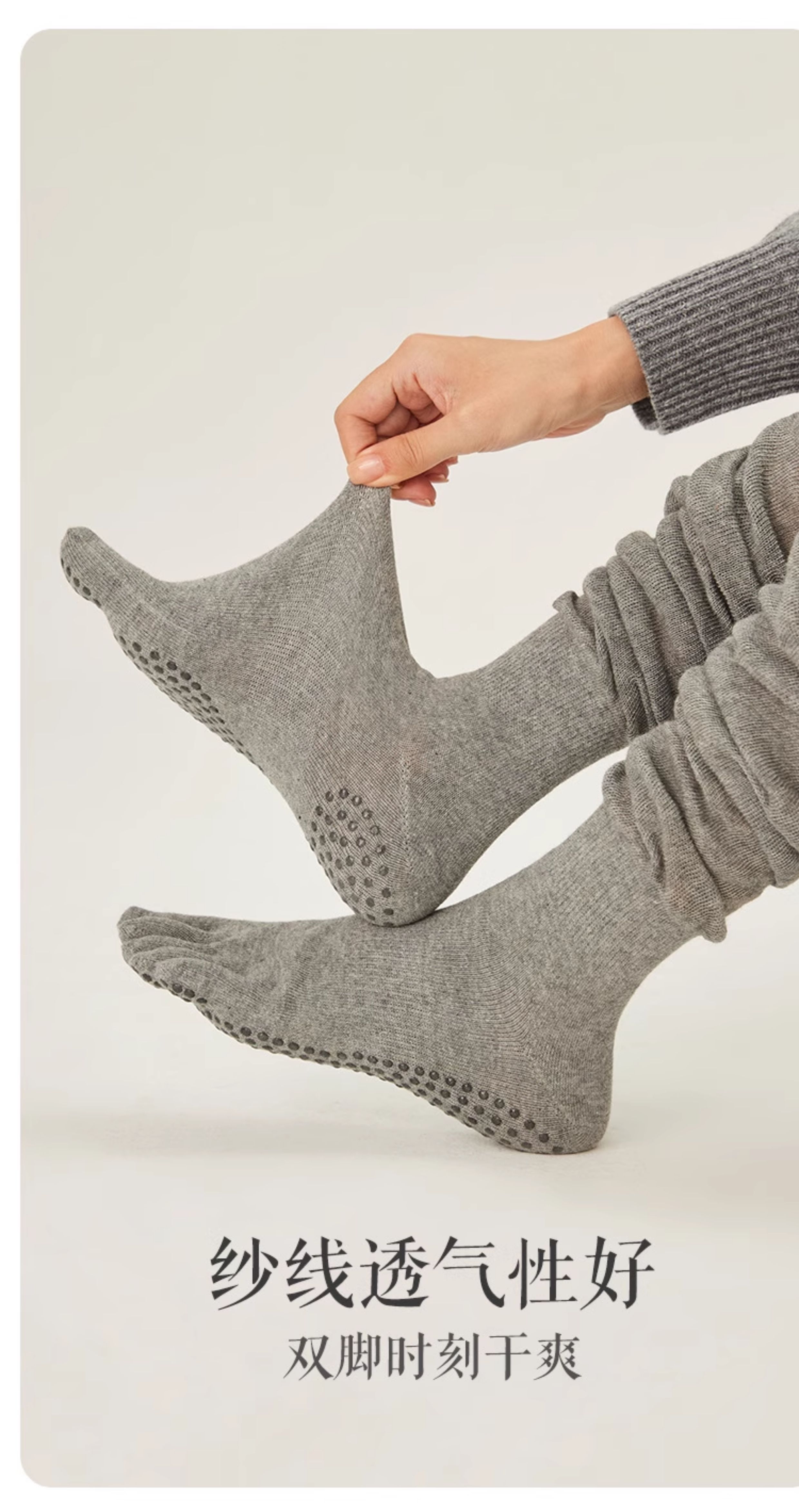 五指襪普拉提專用襪子瑜珈堆堆襪女過膝長襪室內運動防滑襪分趾襪