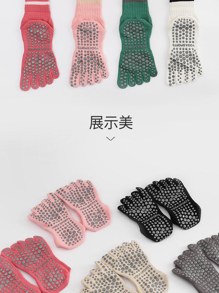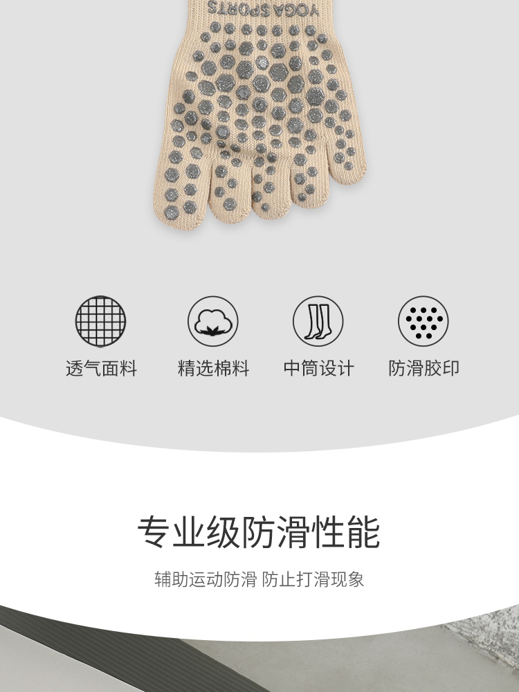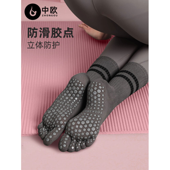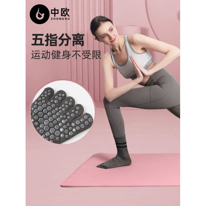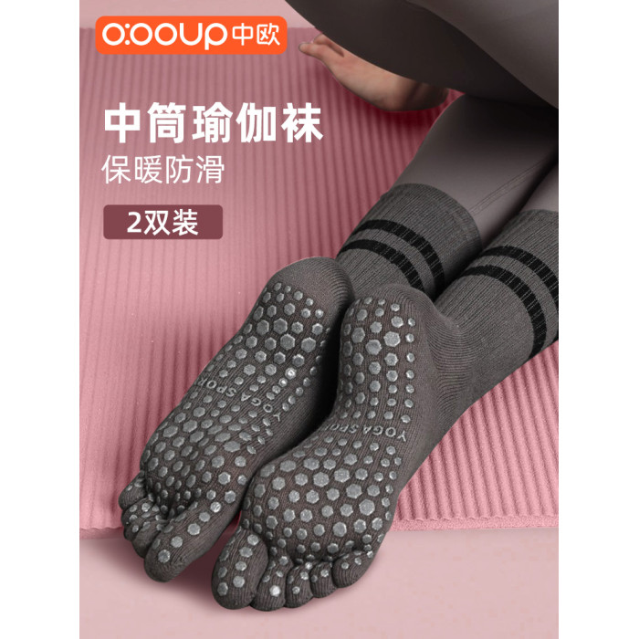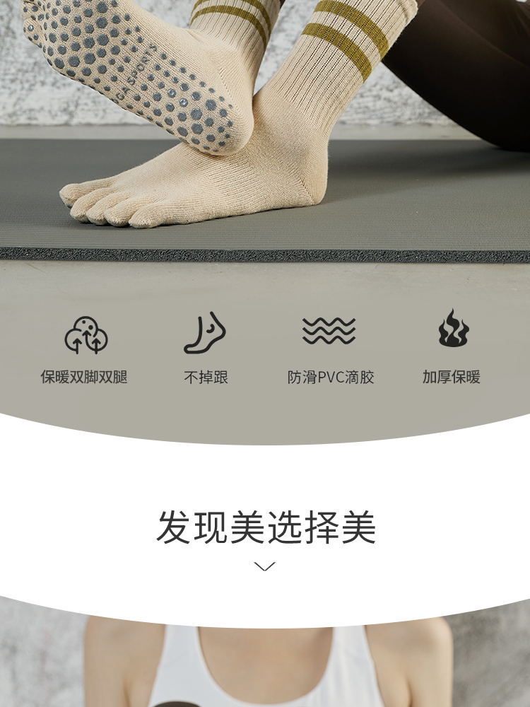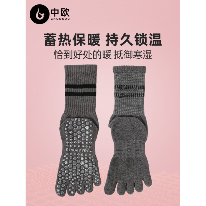 中筒五指瑜珈襪防滑專業女普拉提襪子室內健身運動冬季防滑長襪子