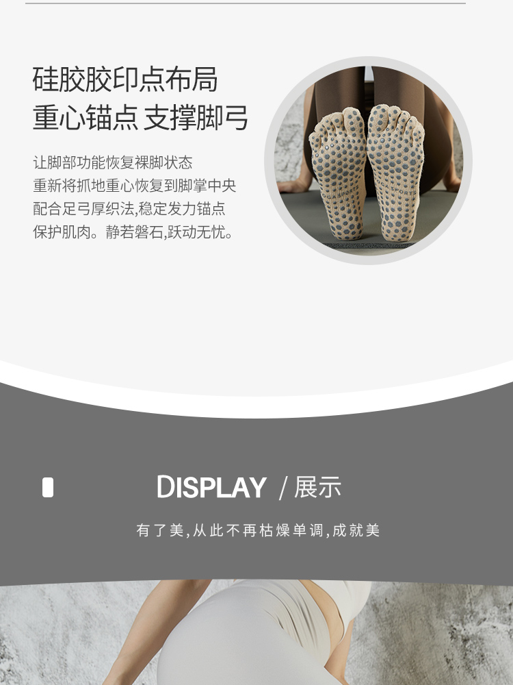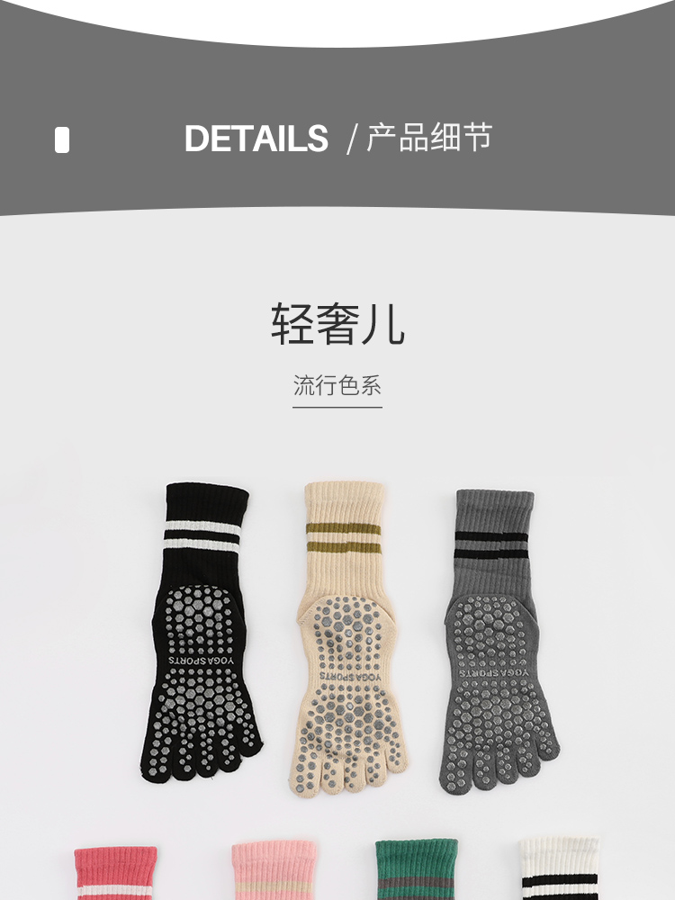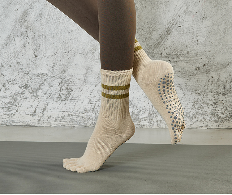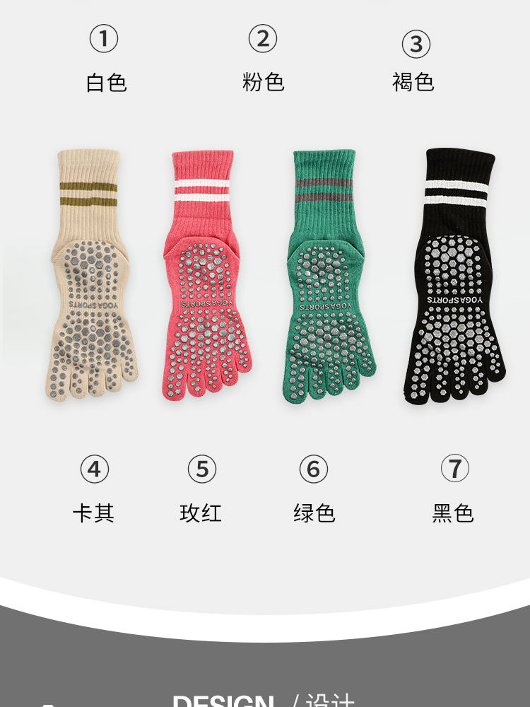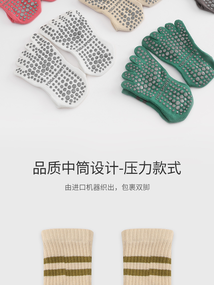 中筒五指瑜珈襪防滑專業女普拉提襪子室內健身運動冬季防滑長襪子