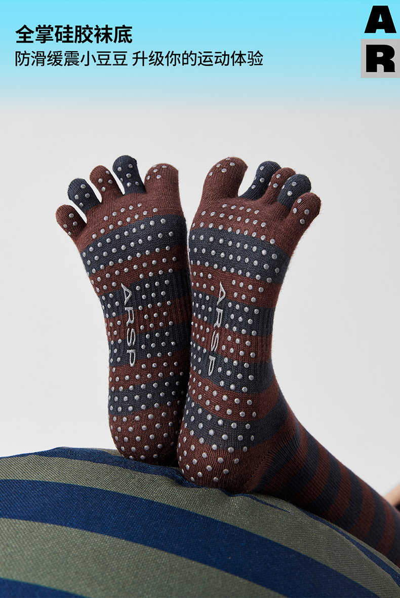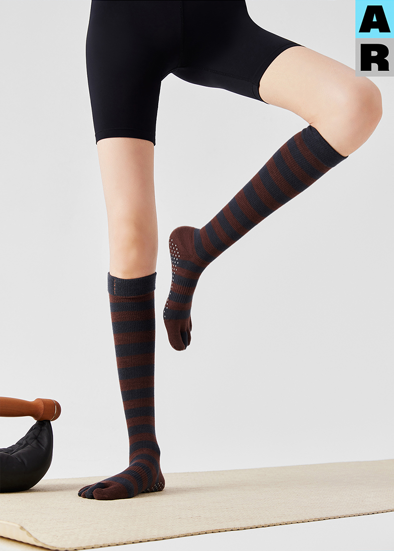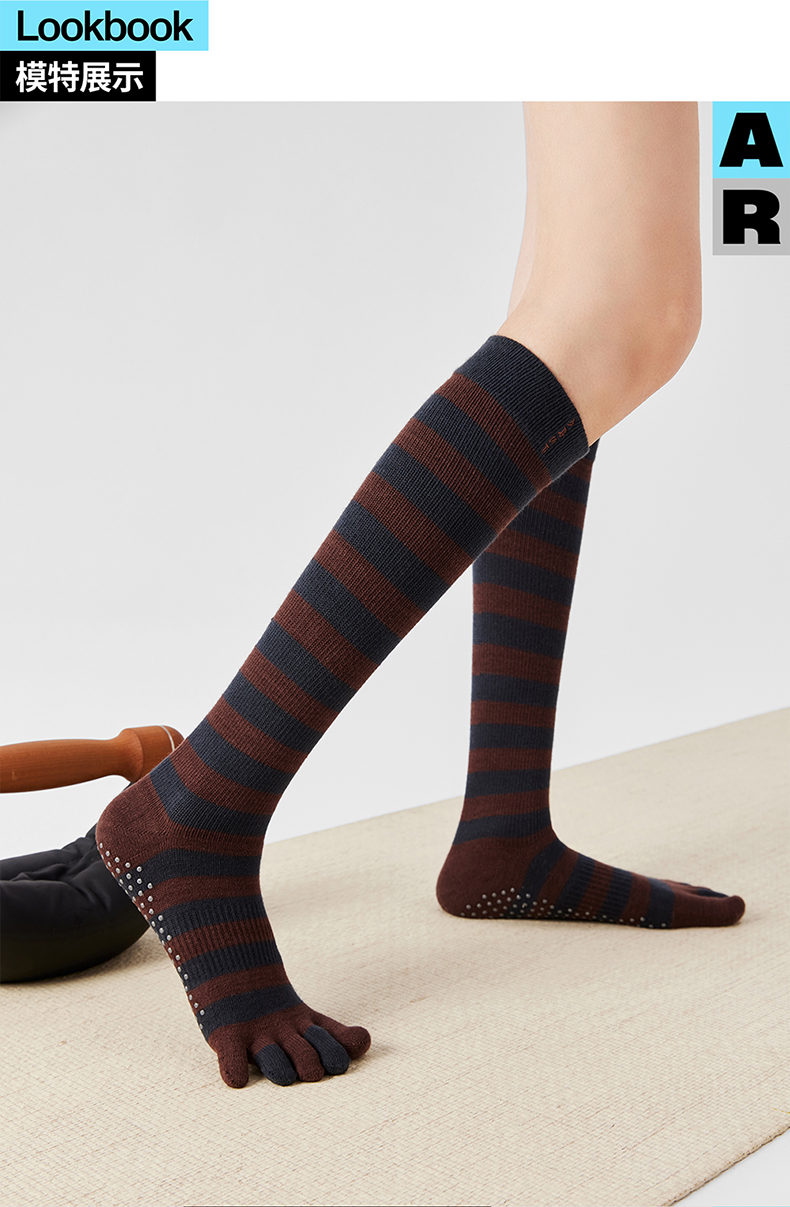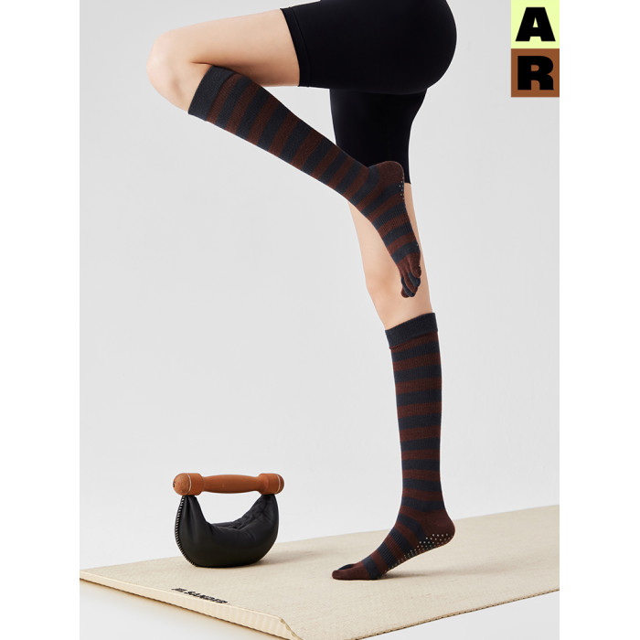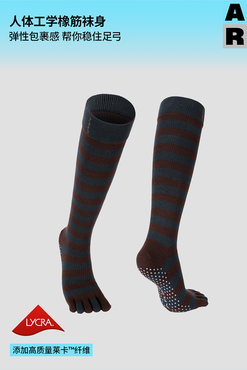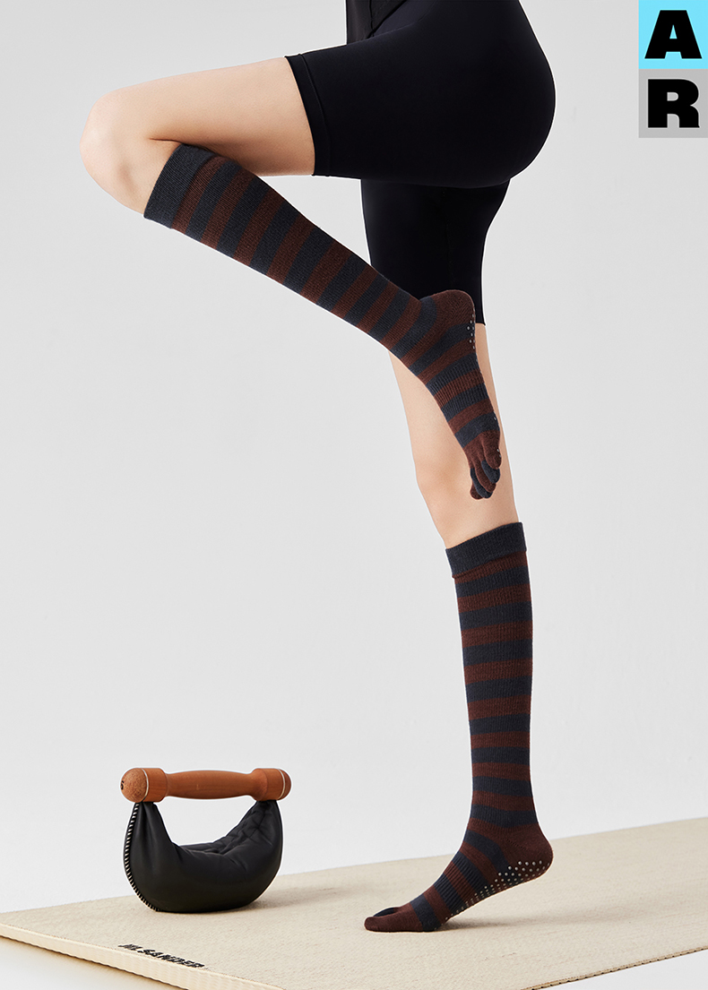 AR專業瑜珈襪普拉提抗菌五指襪條紋防滑壓力運動襪小腿襪彈力分趾