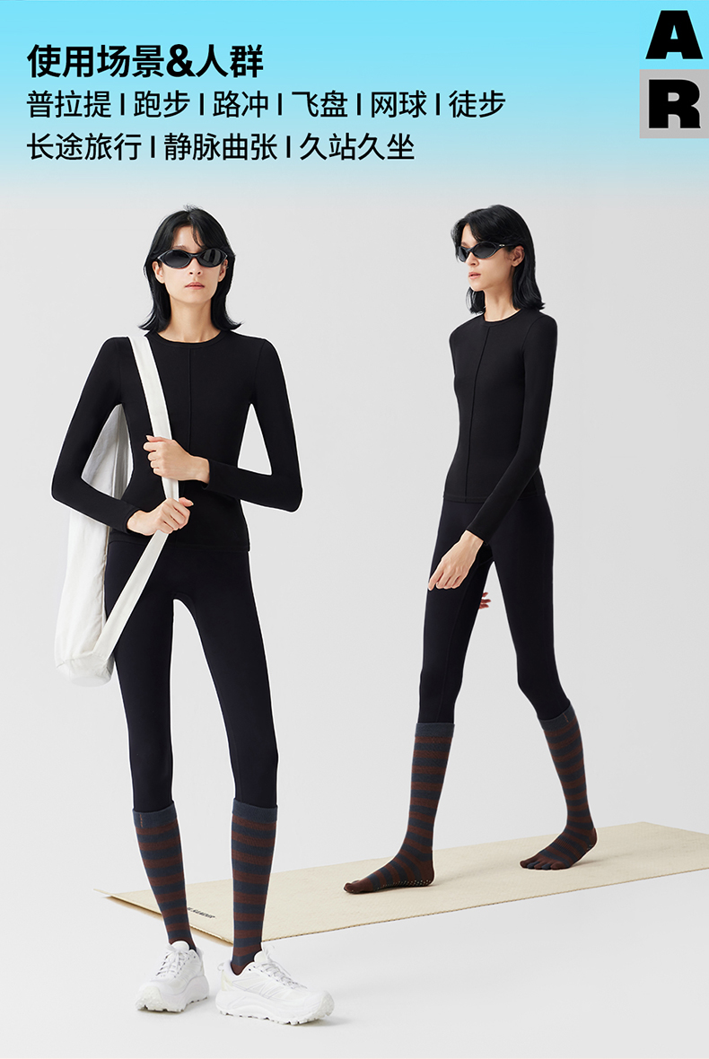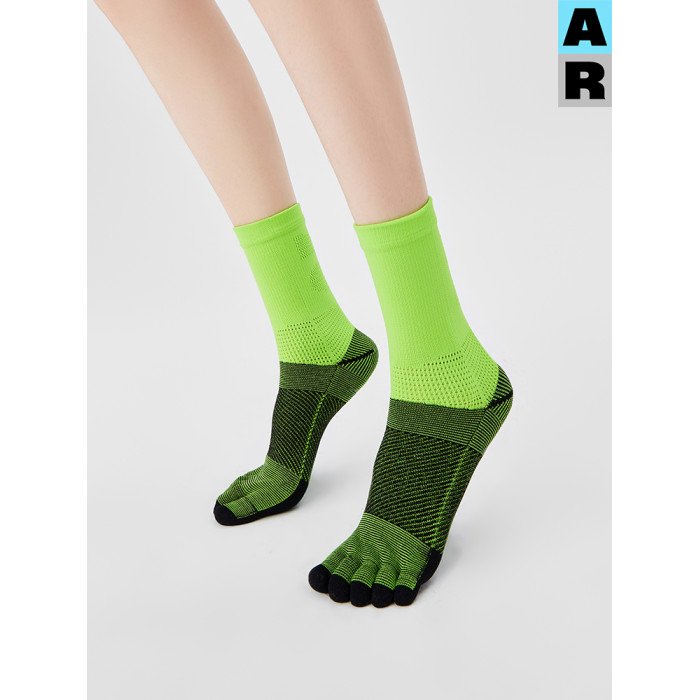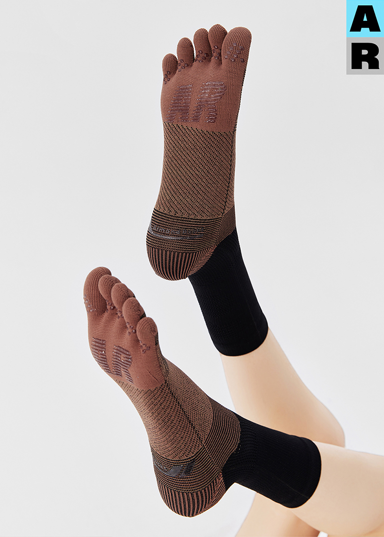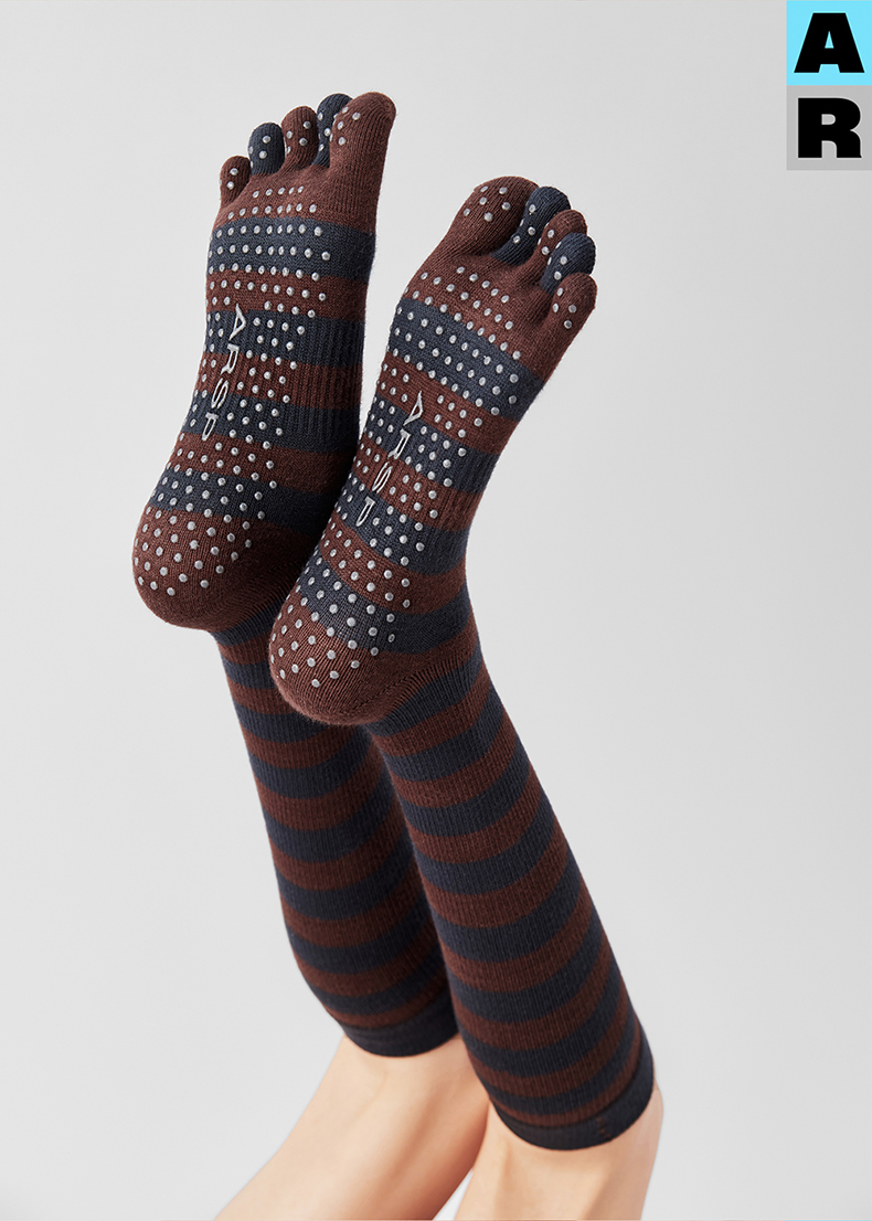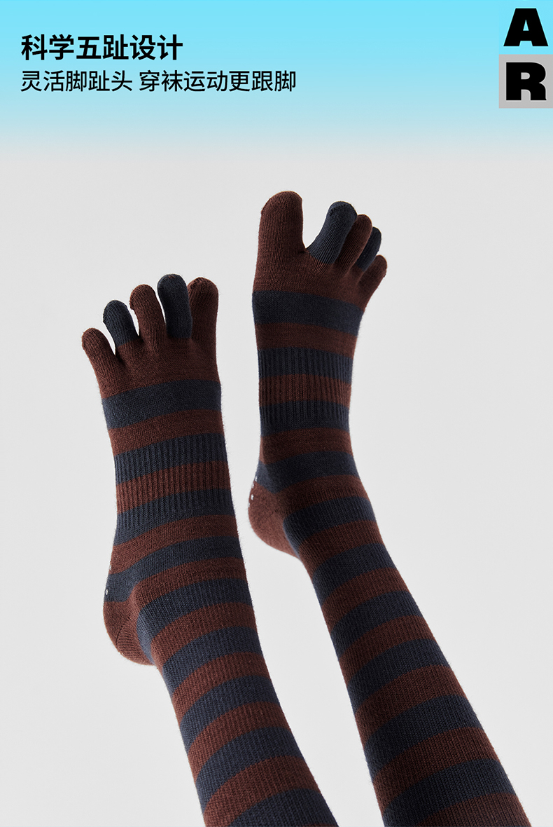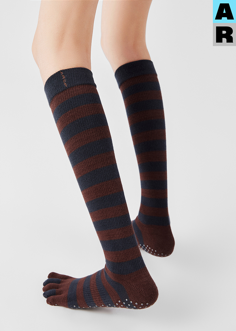 AR專業瑜珈襪普拉提抗菌五指襪條紋防滑壓力運動襪小腿襪彈力分趾