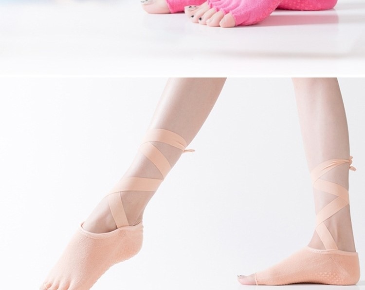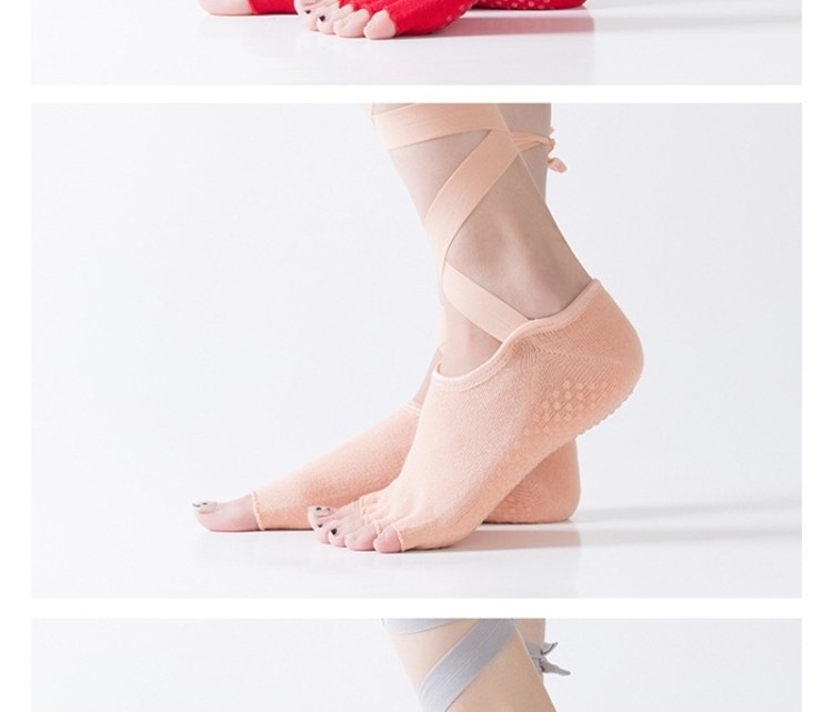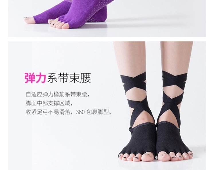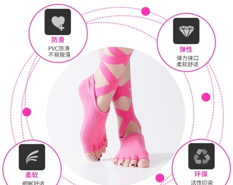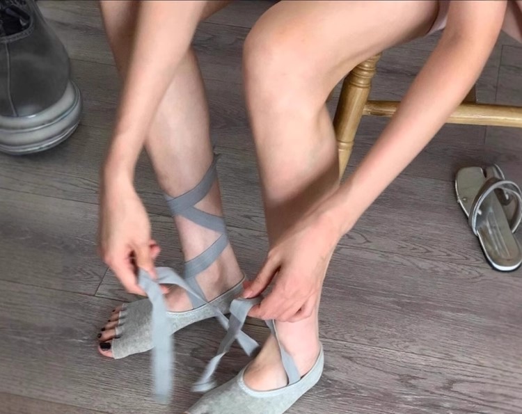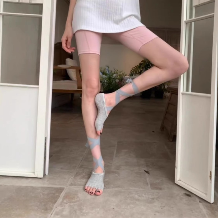 這雙芭蕾瑜珈襪也太miu了吧~防滑普拉提綁帶五指襪~顯腿又長又細