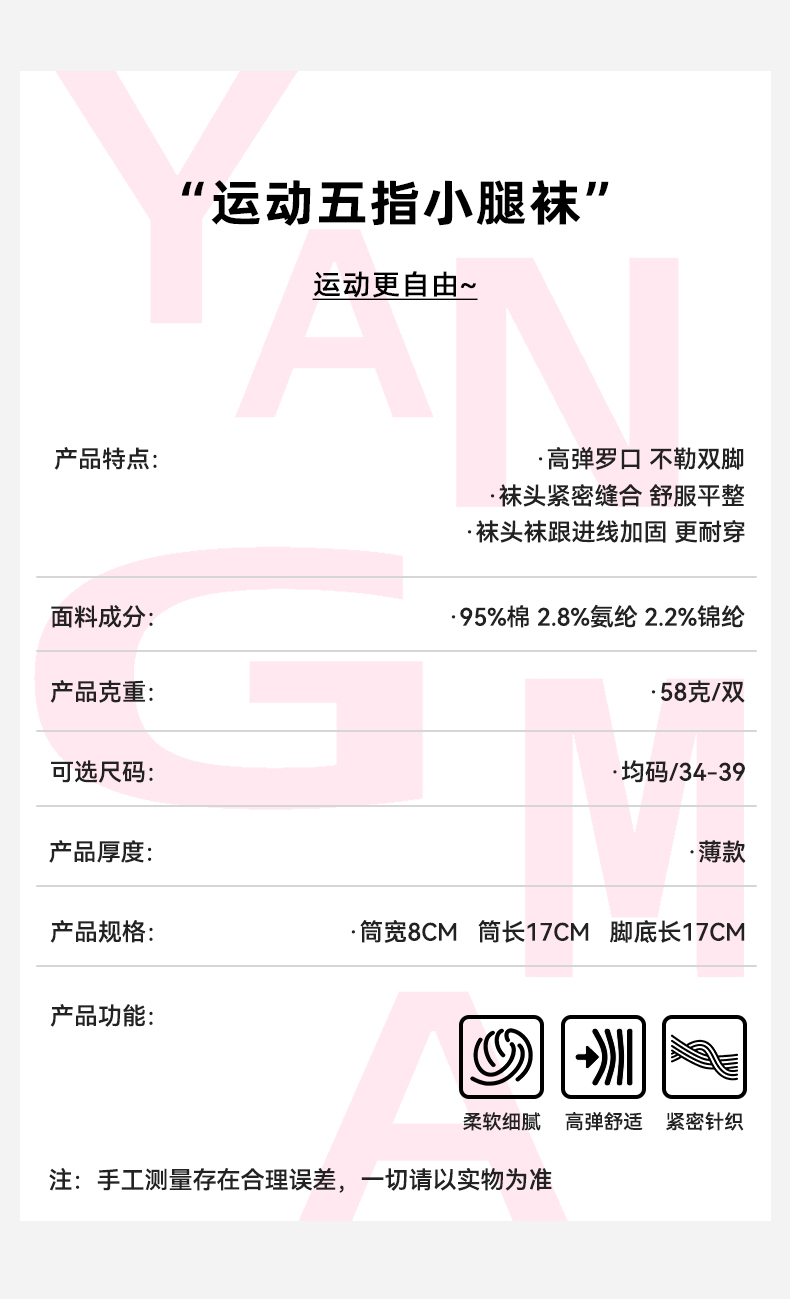 YANGMA瑜珈五指襪子女運動專業健身防滑室內普拉提分趾襪2025新款