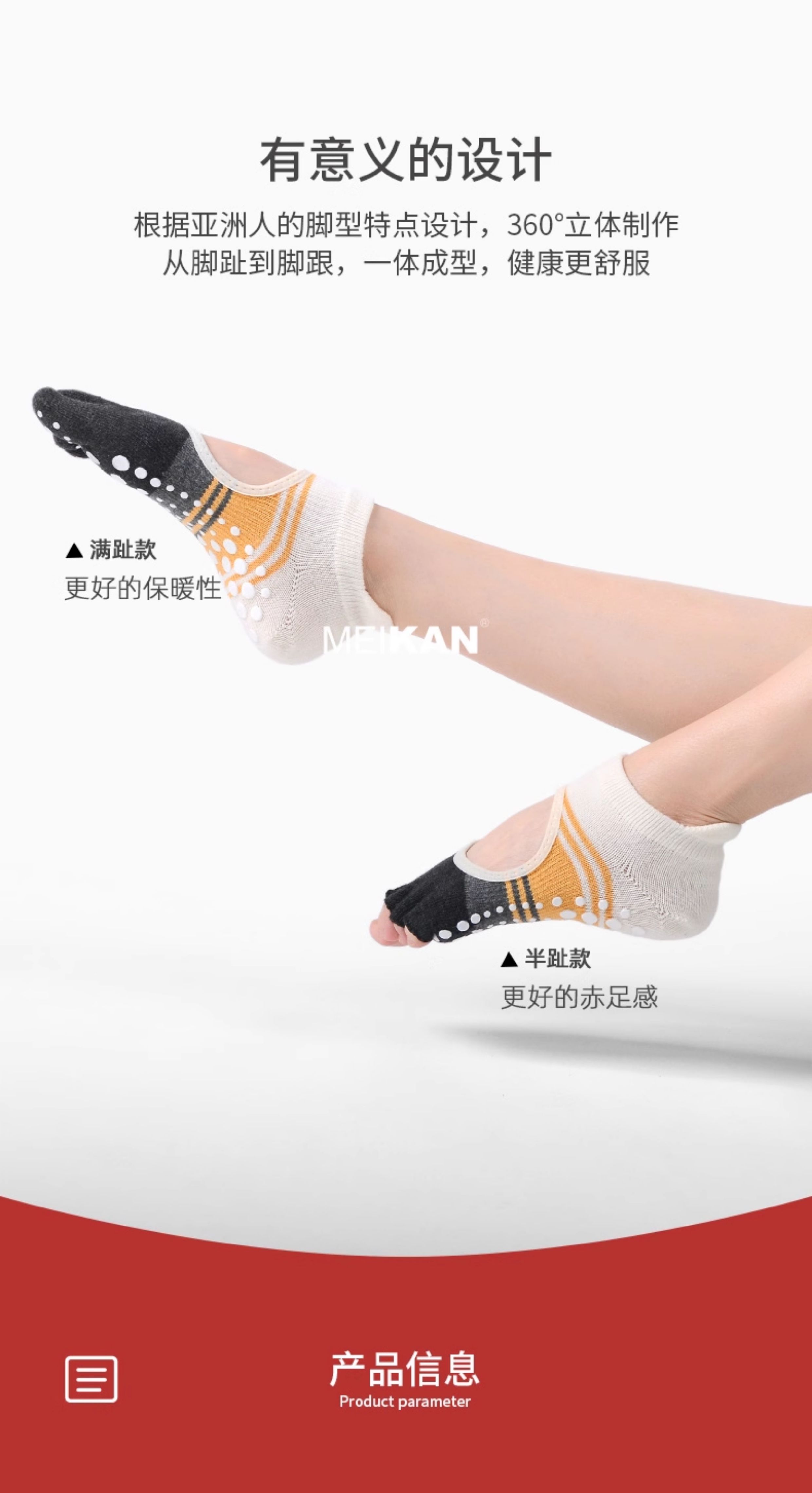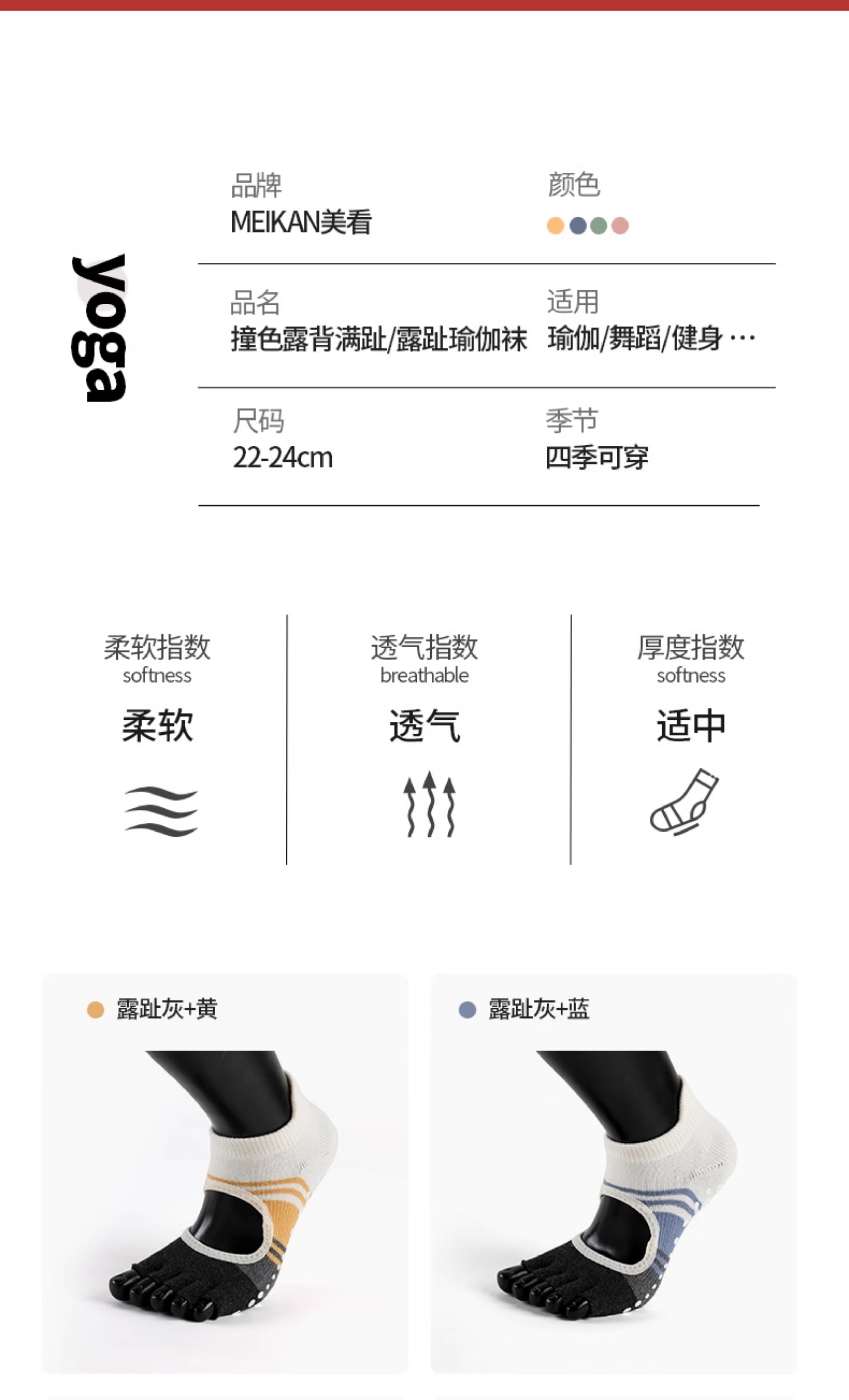 MEIKAN美看瑜珈襪子五指襪普拉提襪地板襪分趾襪運動風專業防滑襪