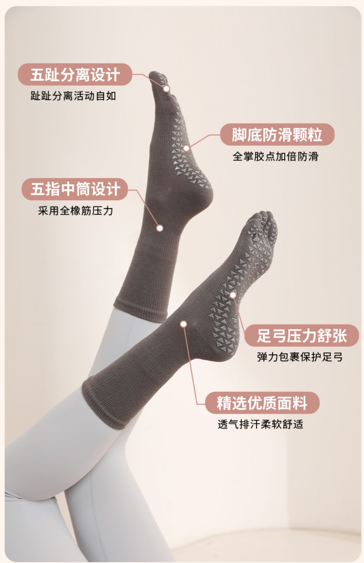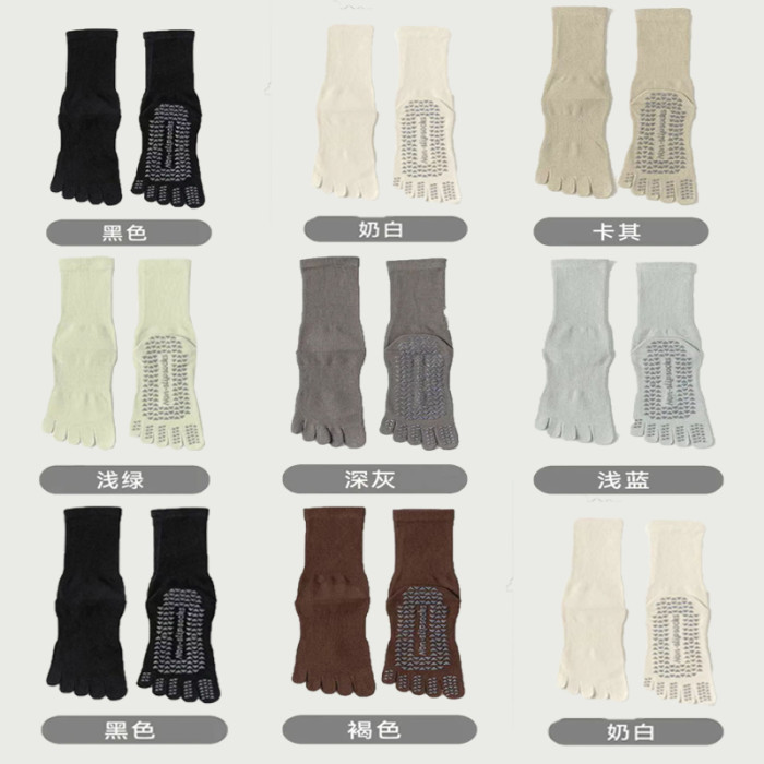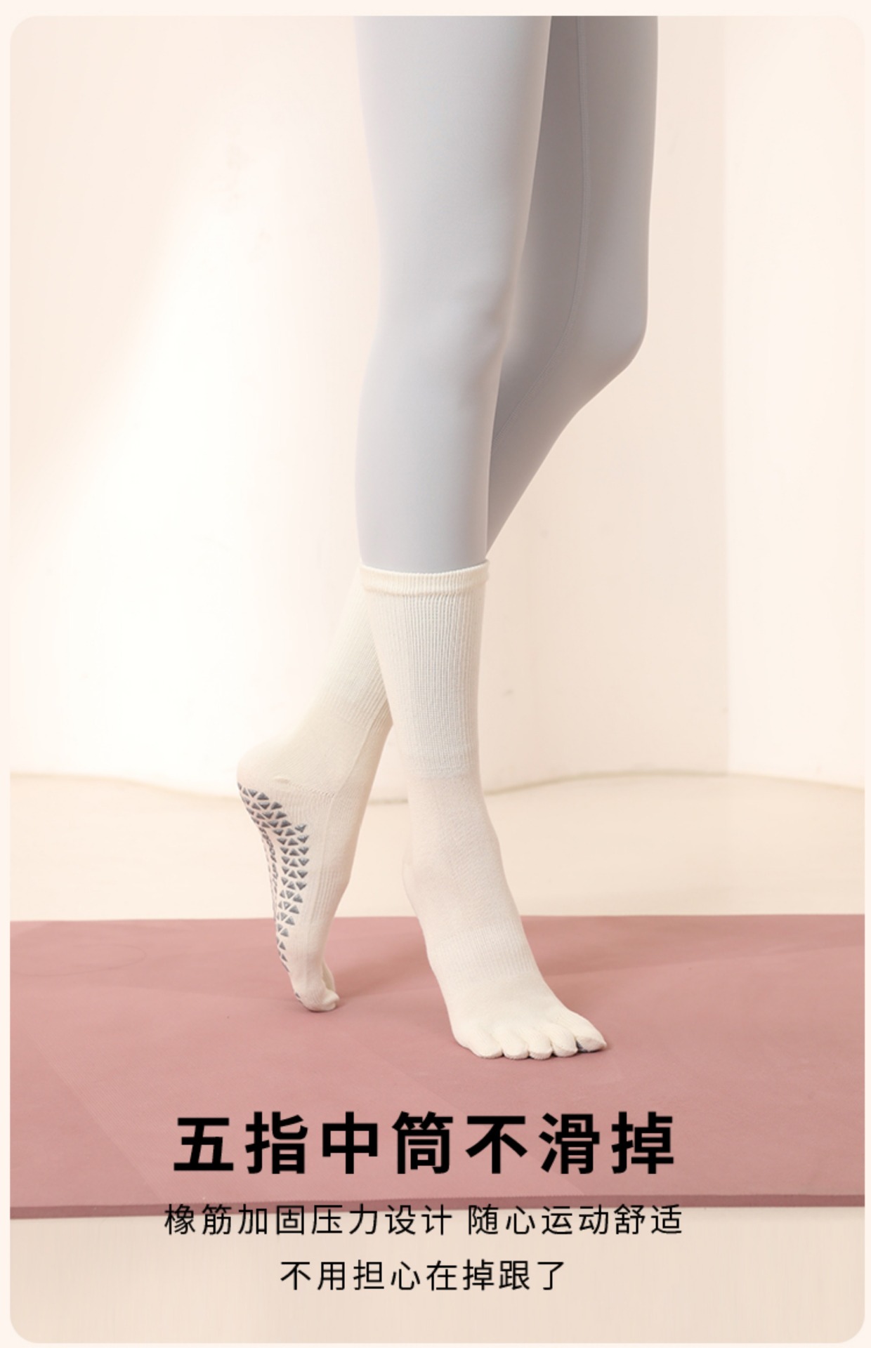 瑜珈襪子女矽膠防滑五指襪子中筒無骨健身專業普拉提五指襪防滑子