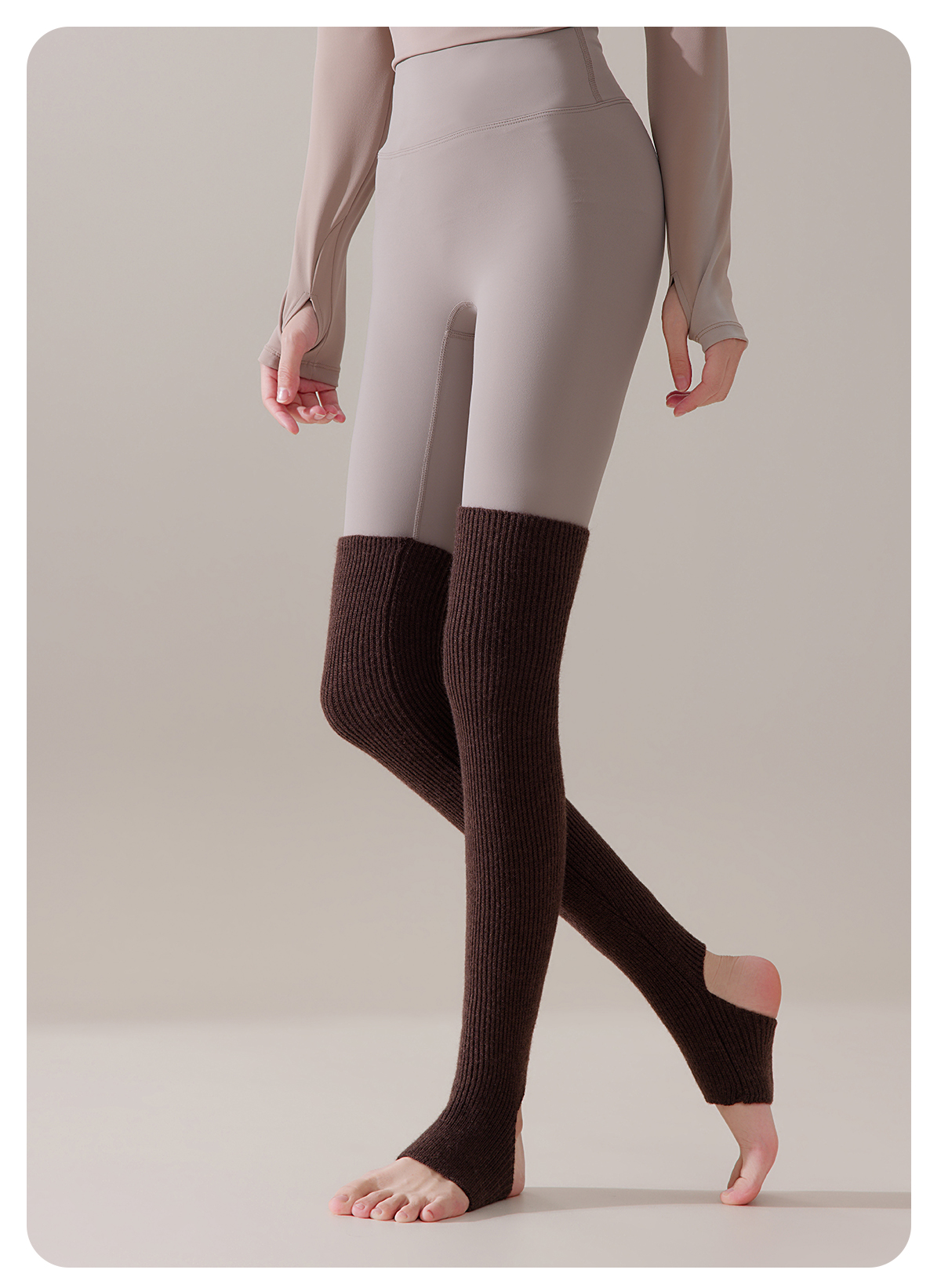 日本羊毛瑜珈襪套女專業過膝長筒保暖普拉提室內舞蹈堆堆襪子秋冬