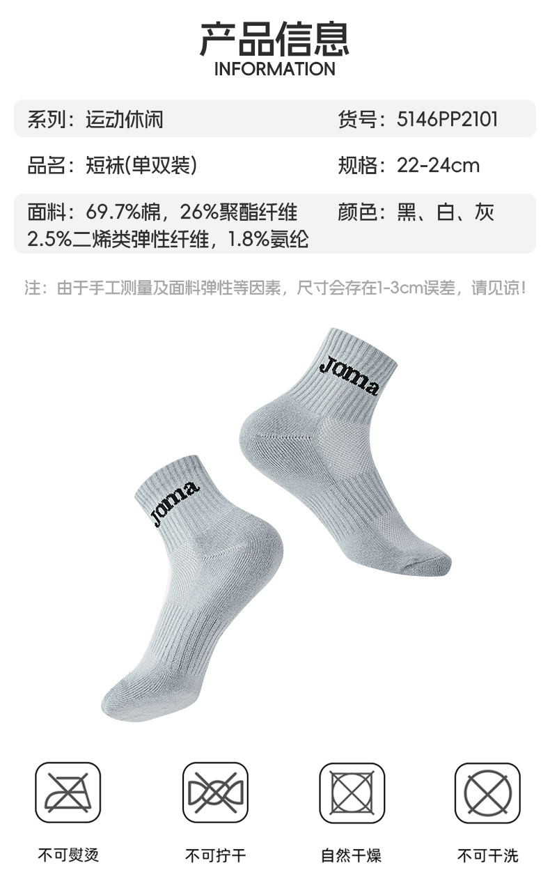 Joma25年新款運動休閒短襪高彈透氣排汗跑步健身日常通勤休閒襪子