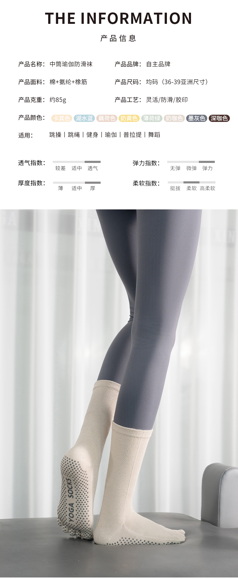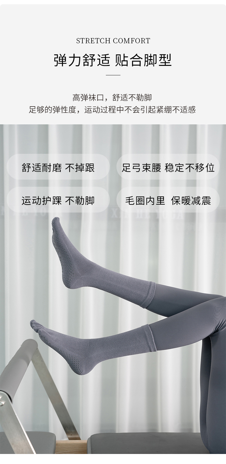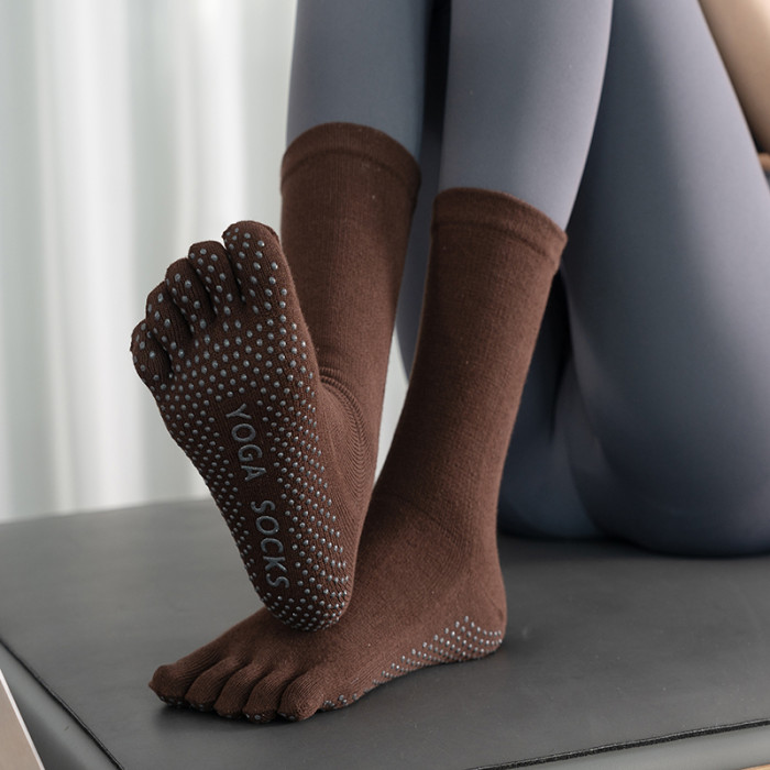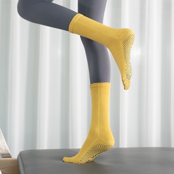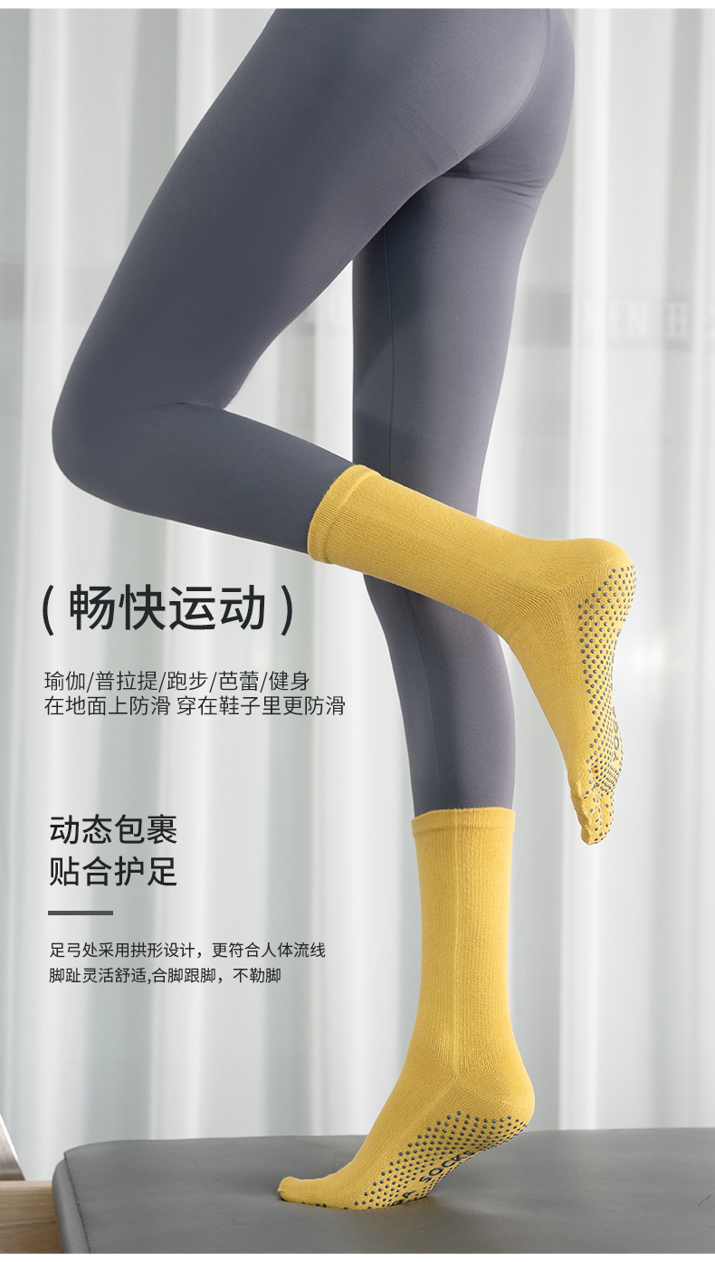 女秋冬新款中筒矽膠防滑瑜珈襪純色運動普拉提襪子室內健身地板襪