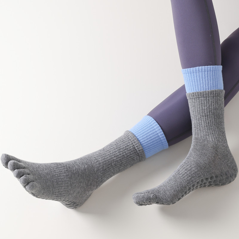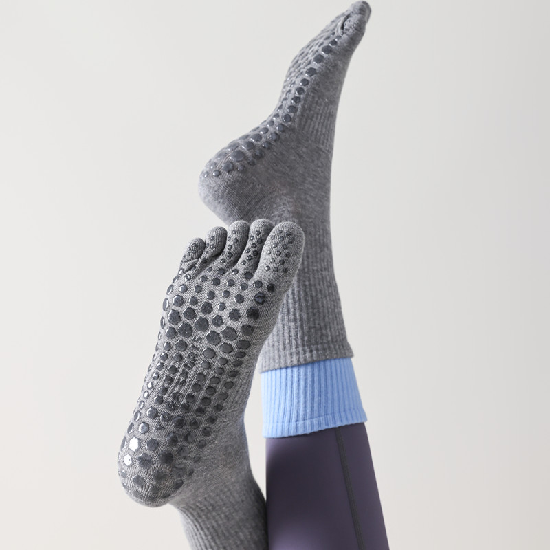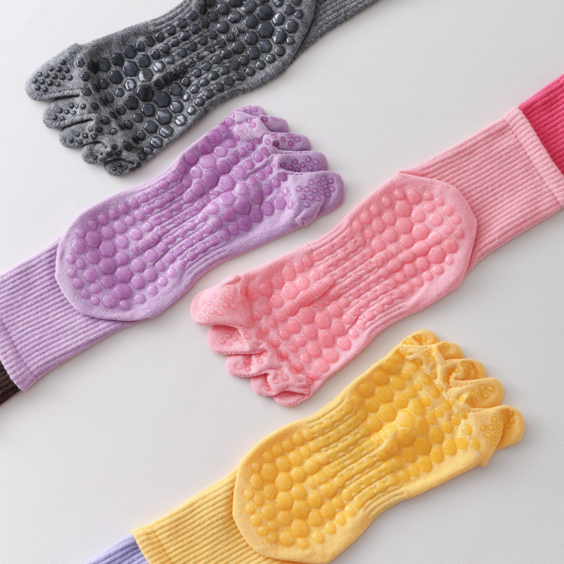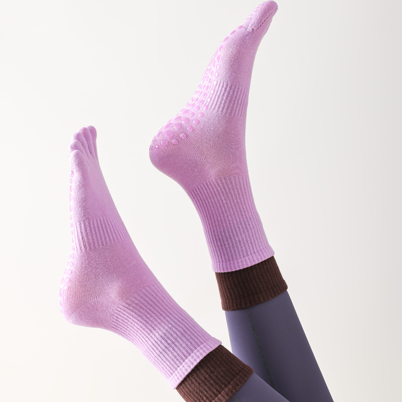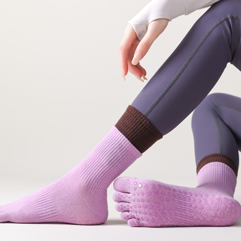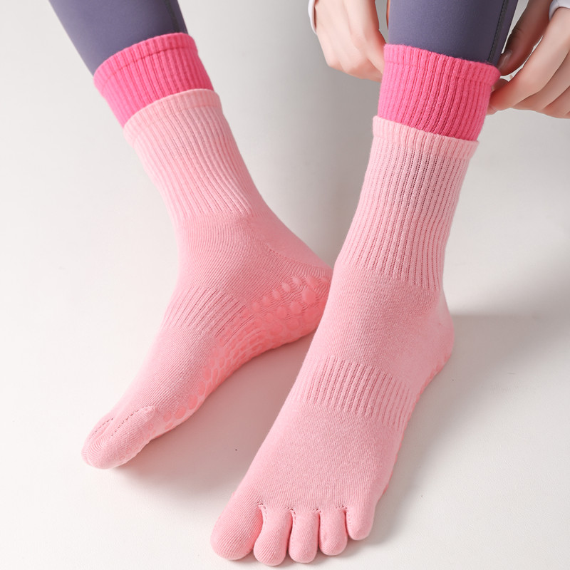 中筒五指瑜珈襪女雙羅口分趾普拉提襪專業防滑室內運動健身舞蹈襪