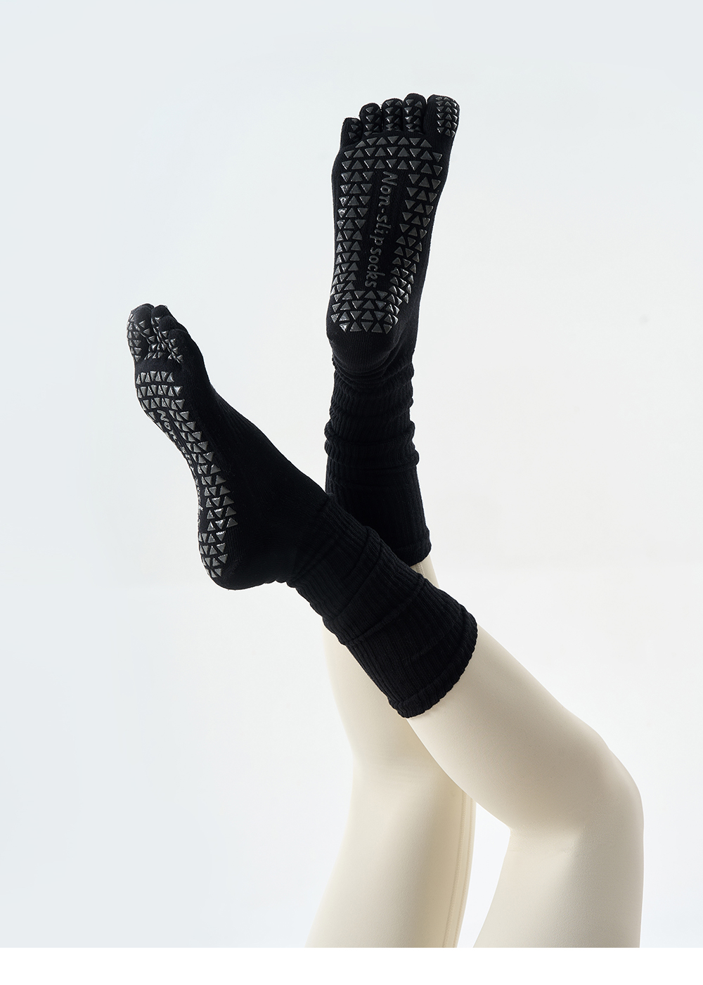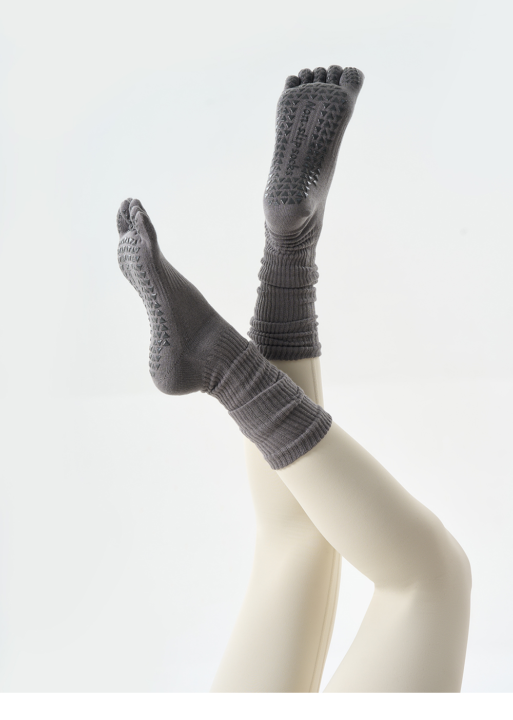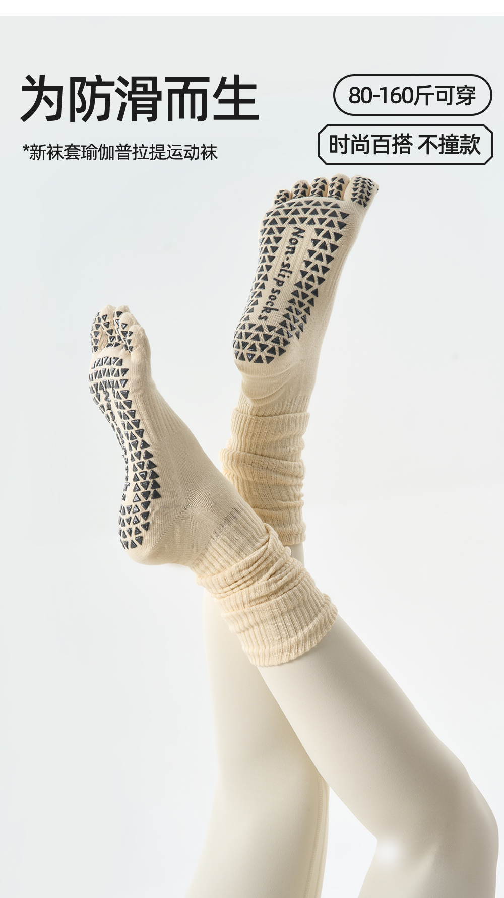 秋冬專業防滑瑜珈襪子女五指堆堆襪套健身地板襪成人防滑襪普拉提