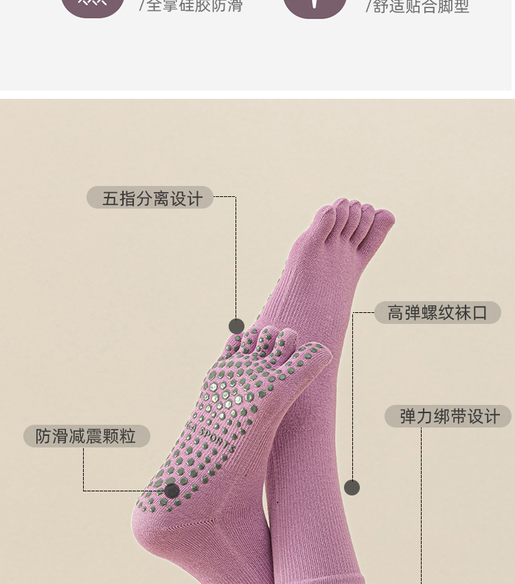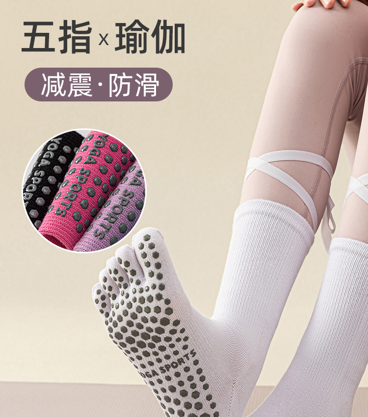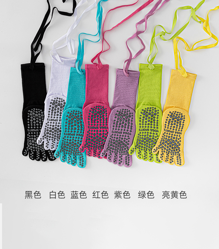 瑜珈襪防滑專業運動五指跑步健身跳繩舞蹈壓力中筒綁帶普拉提襪子
