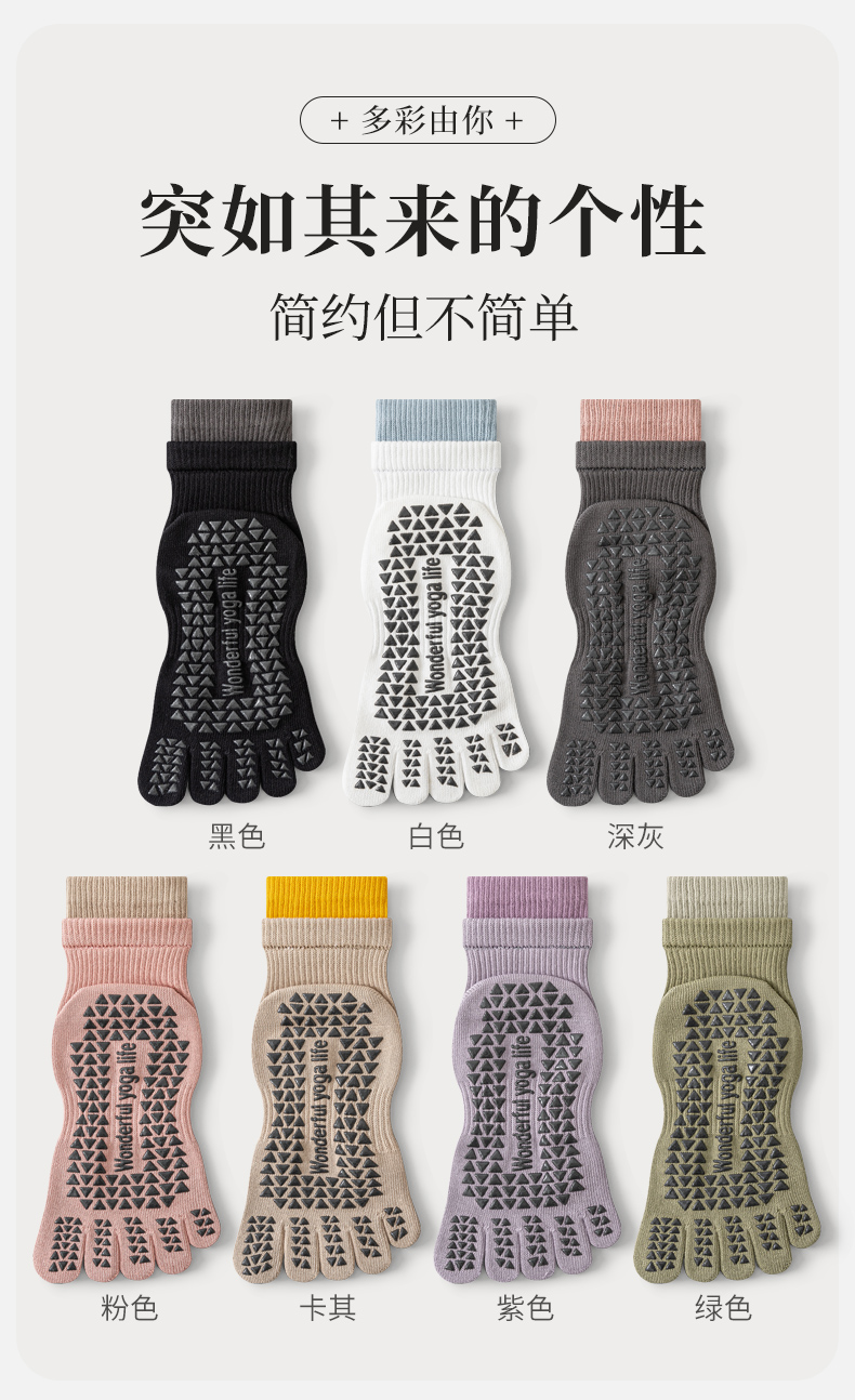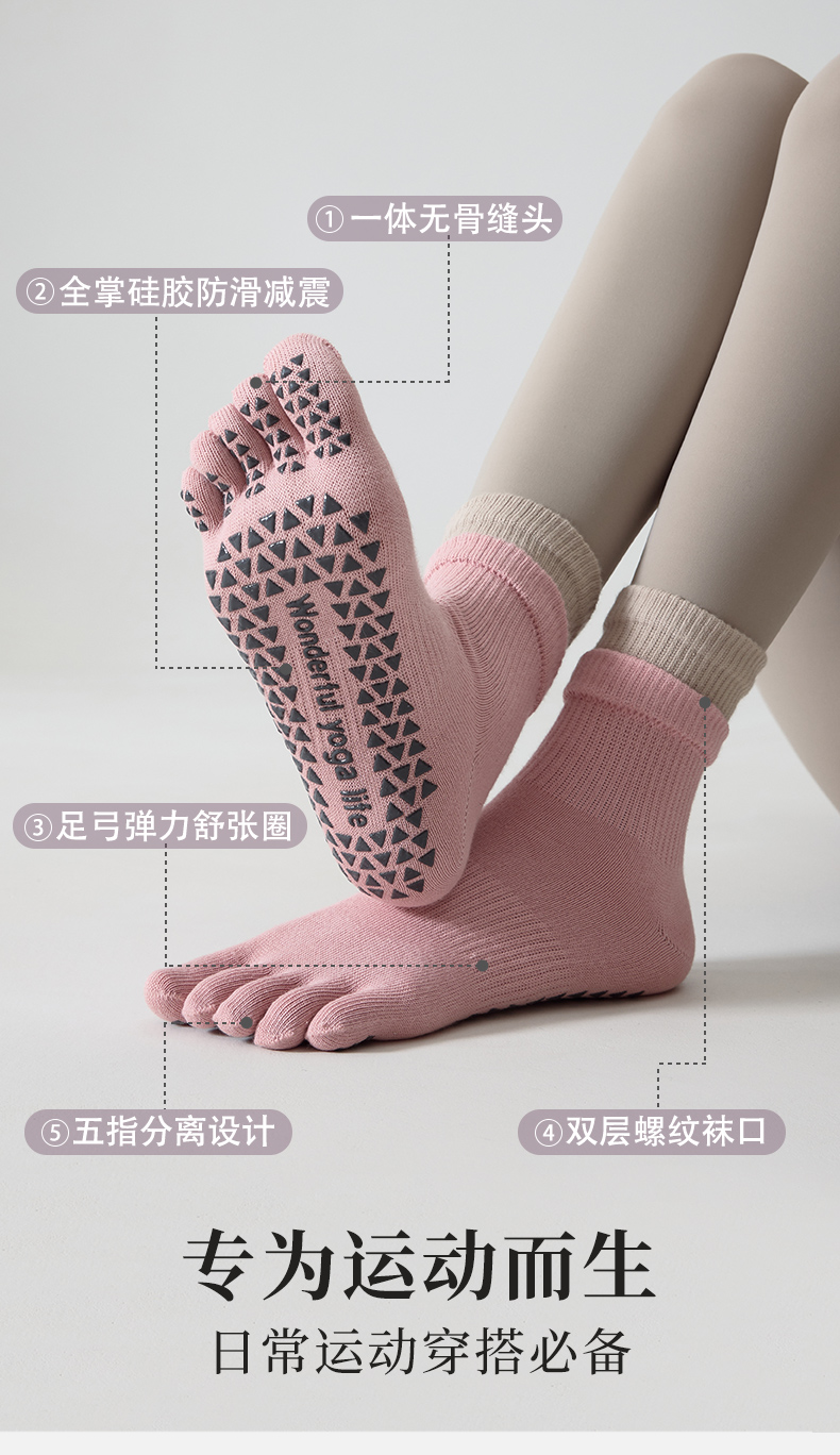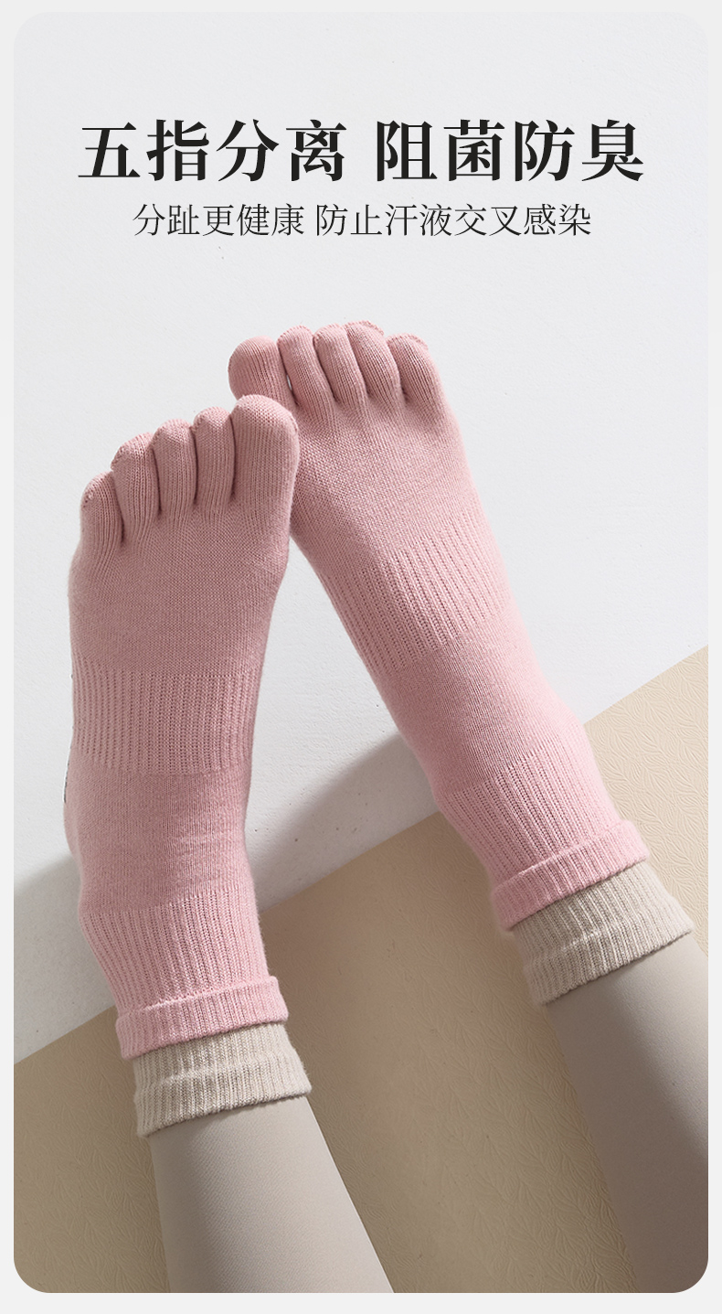 五指瑜珈襪子防滑專業女秋冬普拉提訓練室內運動專用健身分趾中筒