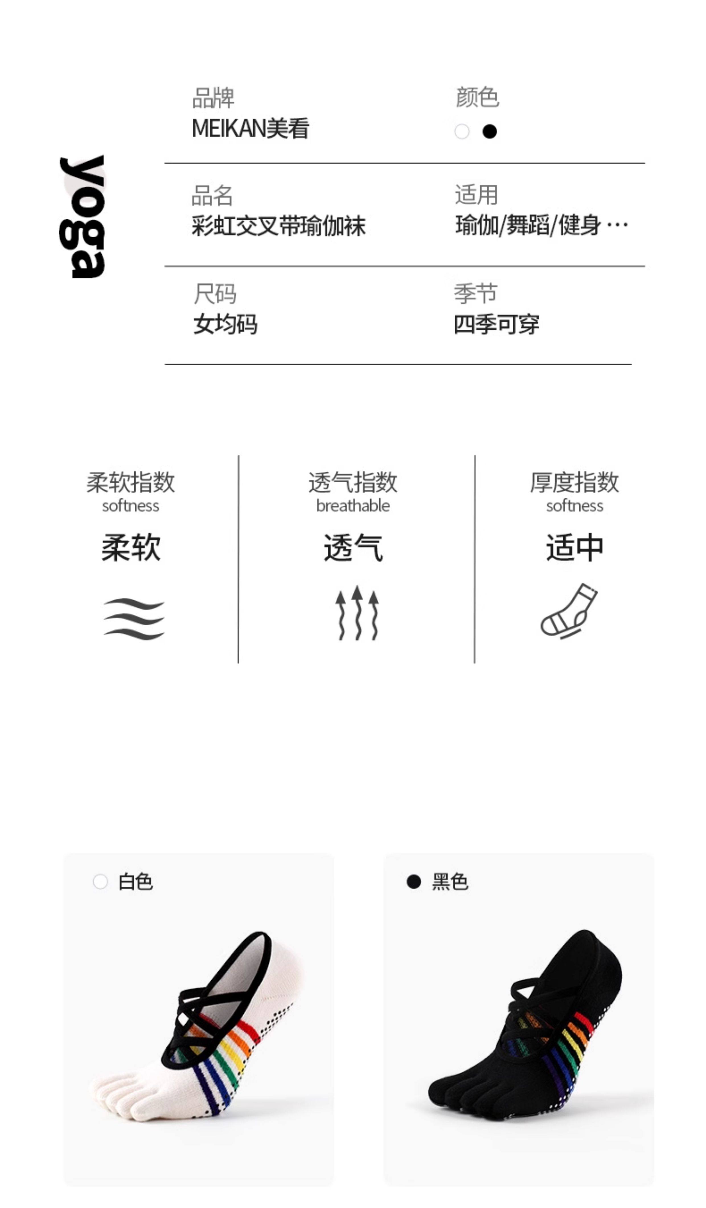 MEIKAN美看瑜珈襪防滑襪專業女五指襪運動普拉提襪子分指襪地板襪
