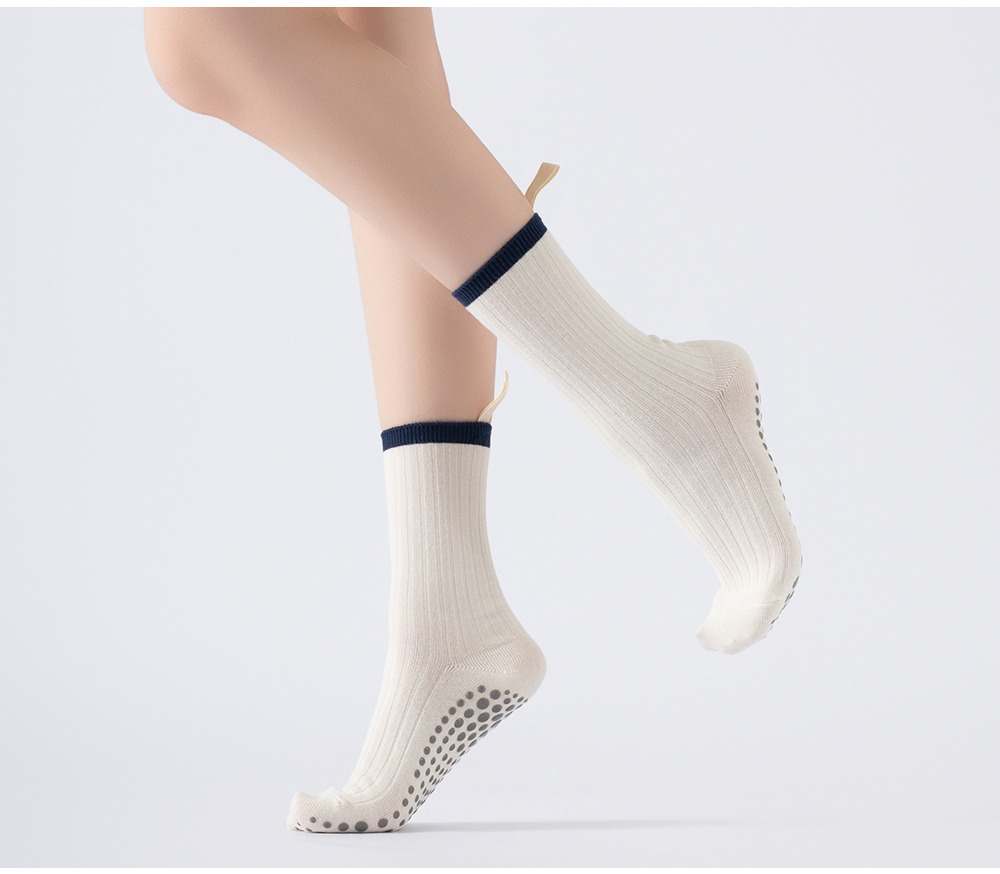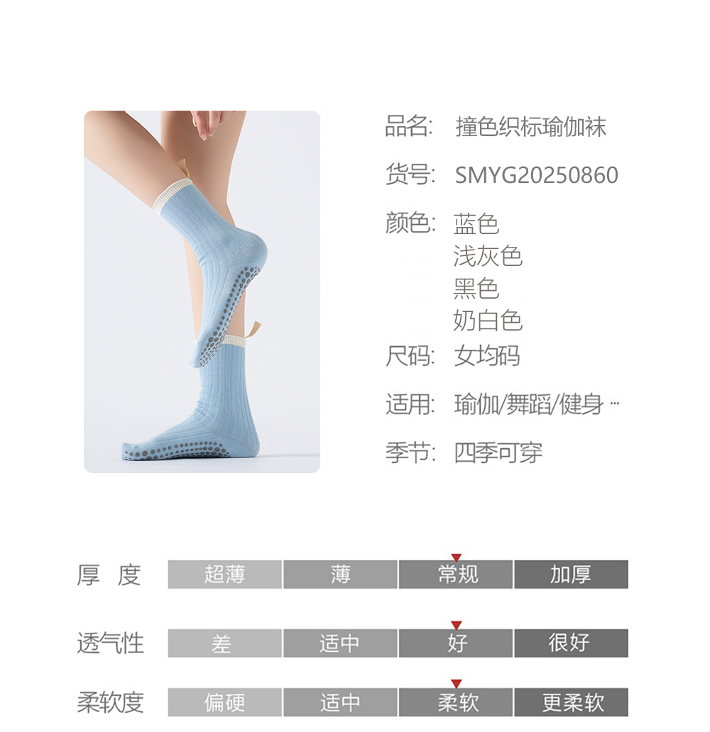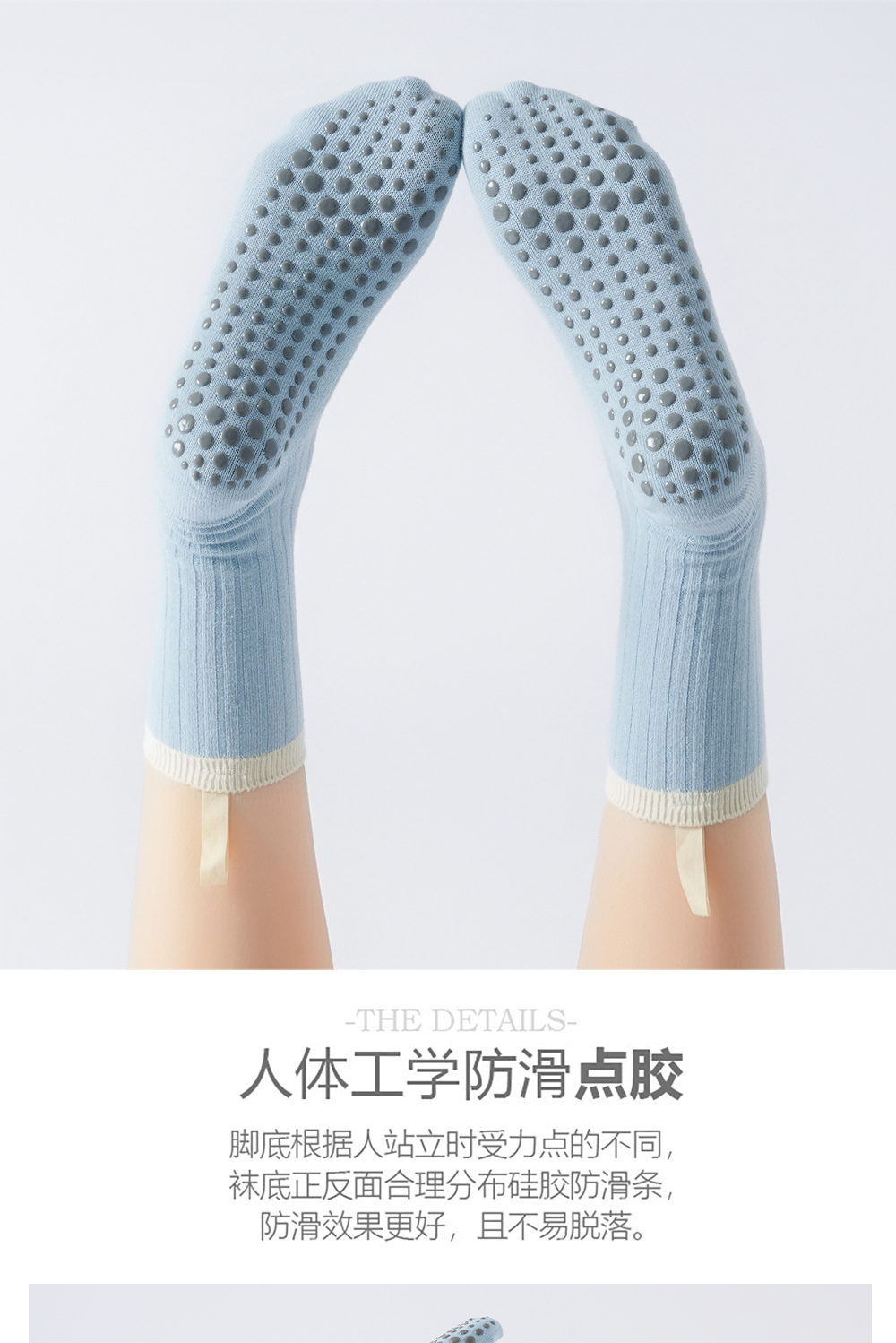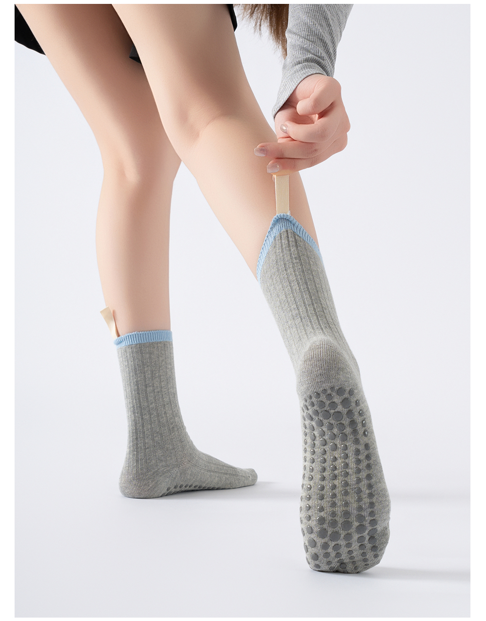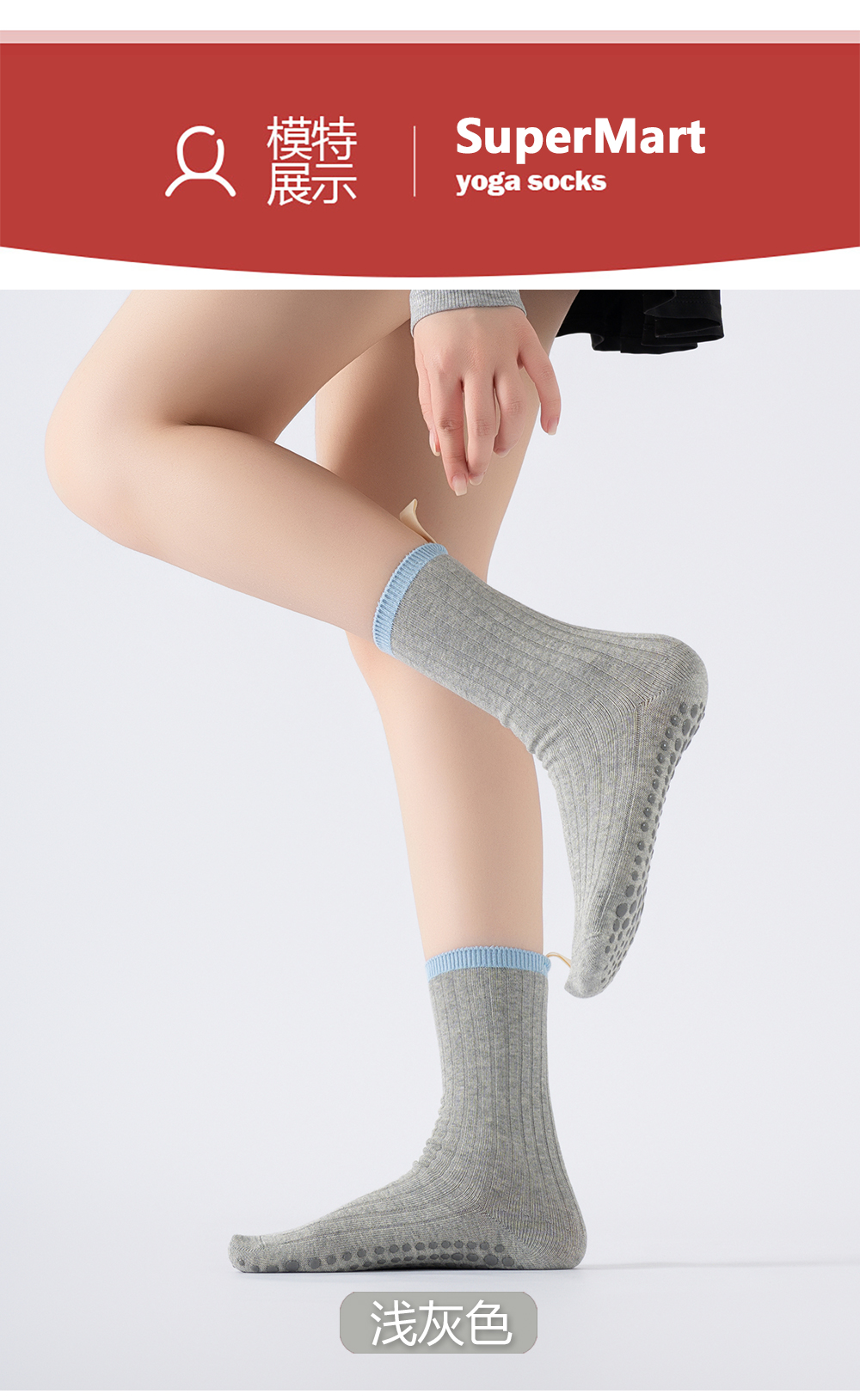 撞色普拉提專用襪子夏季純棉防滑襪女瑜珈小腿襪室內成人地板襪子
