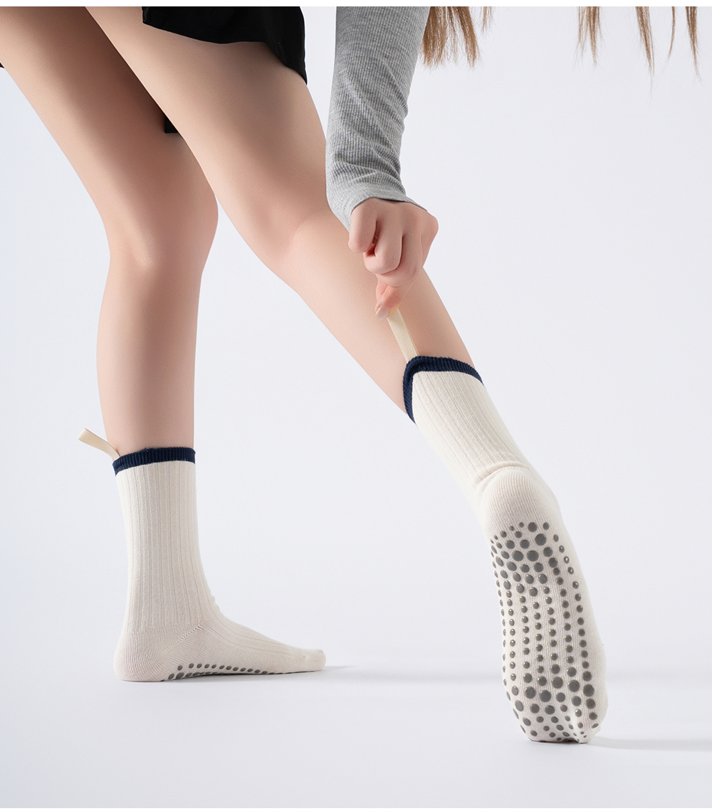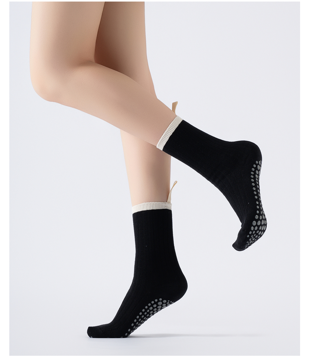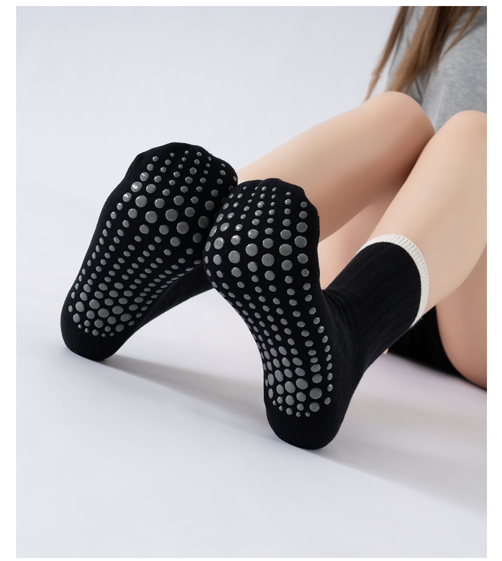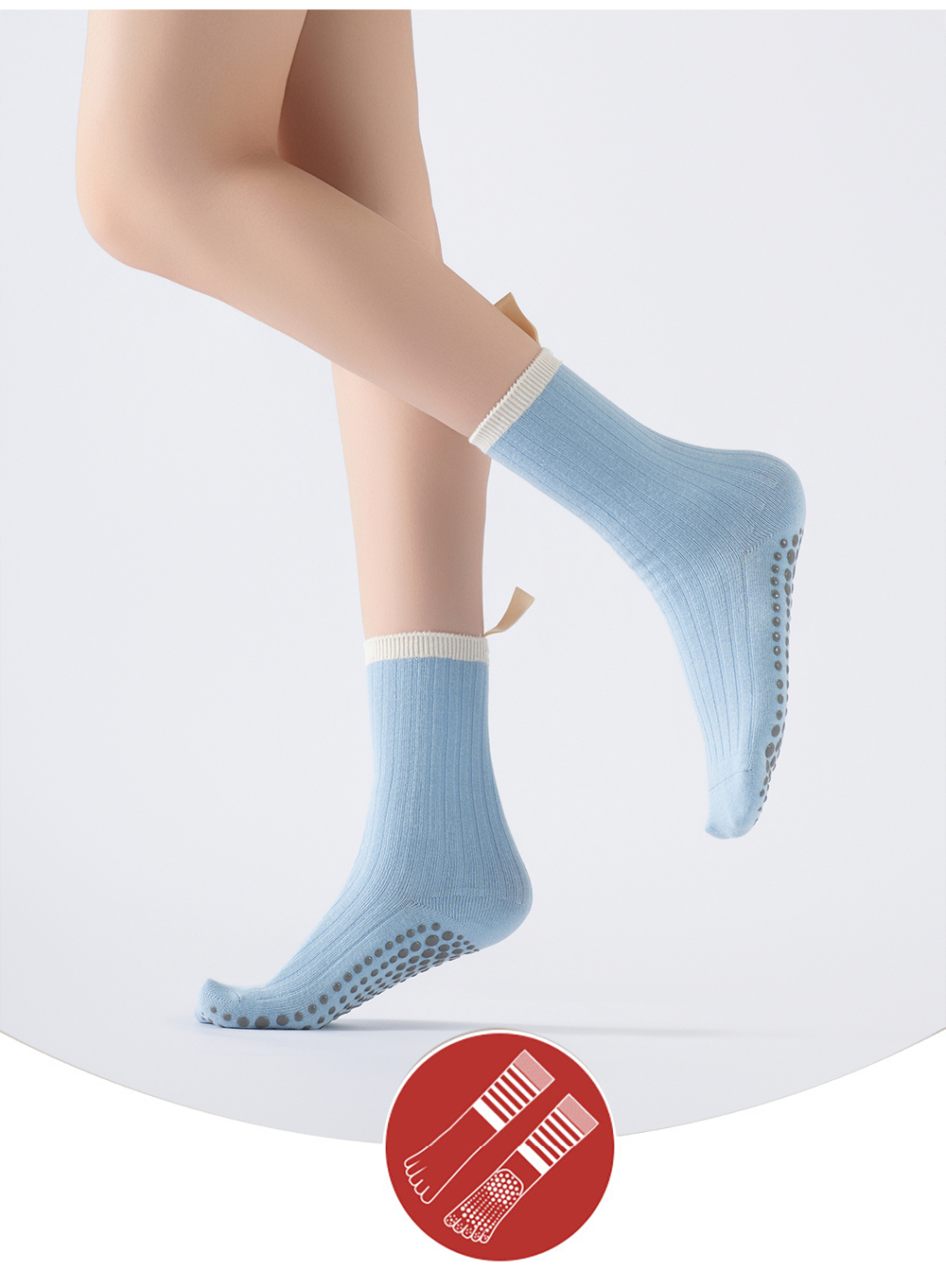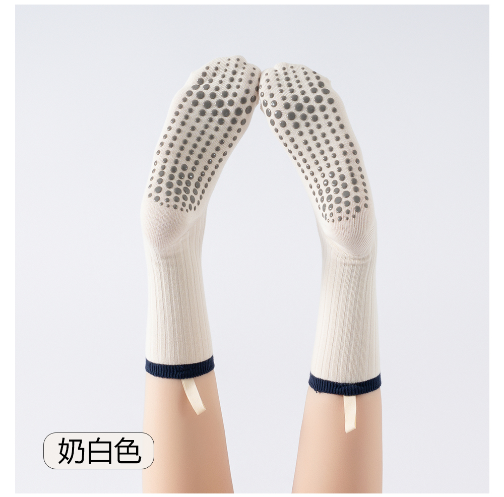 撞色普拉提專用襪子夏季純棉防滑襪女瑜珈小腿襪室內成人地板襪子
