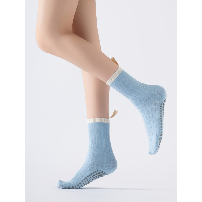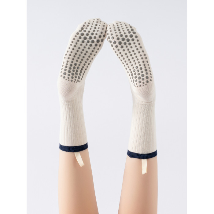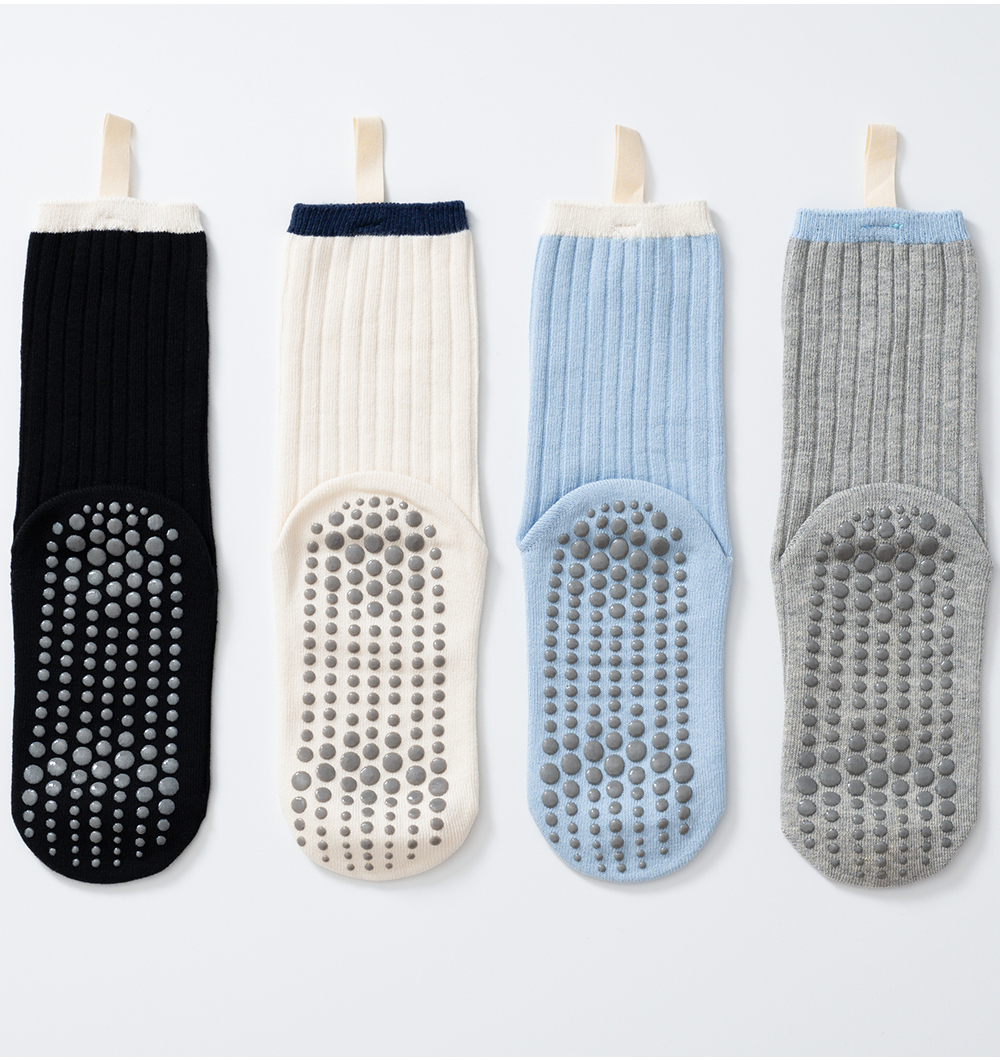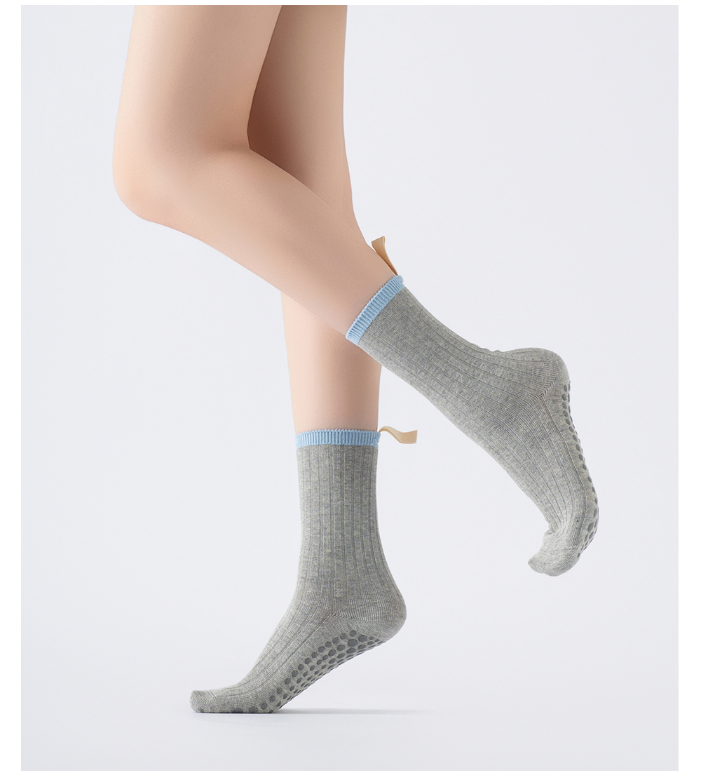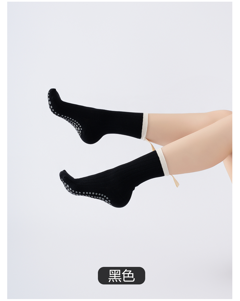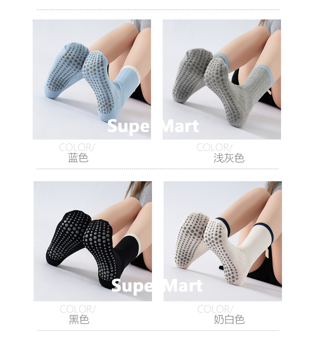 撞色普拉提專用襪子夏季純棉防滑襪女瑜珈小腿襪室內成人地板襪子