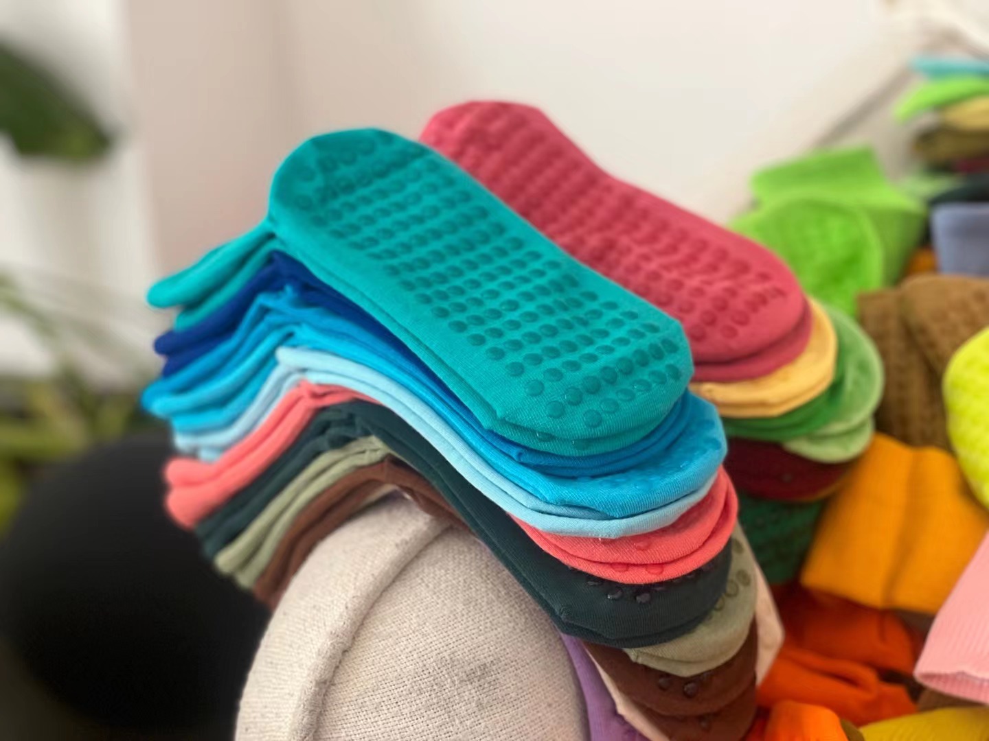 拾陸瑜珈襪普拉提舞蹈襪子黃色室內運動防滑瑜珈長筒襪