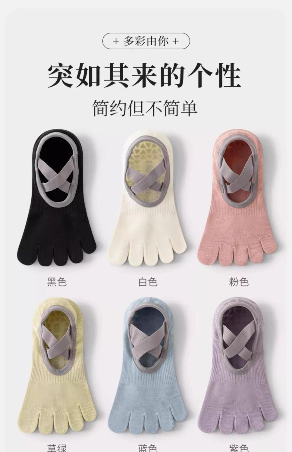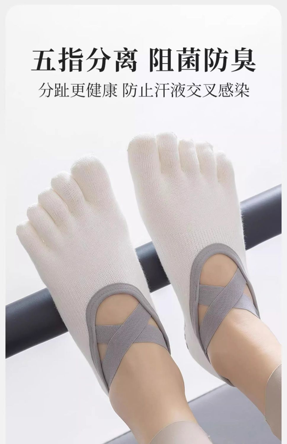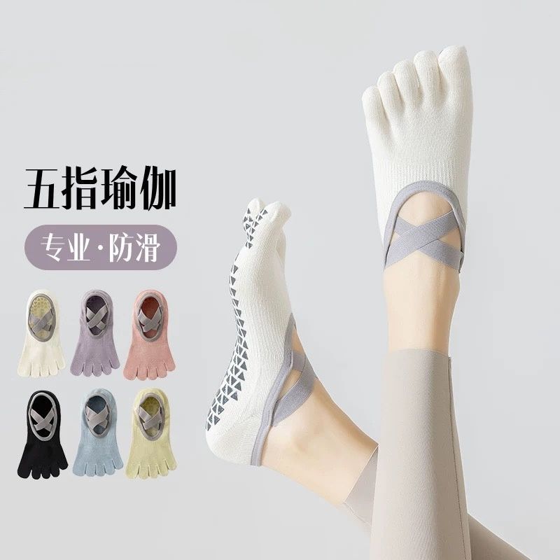 極簡美學瑜珈五趾襪女矽膠防滑交叉綁帶足弓交叉襪靜音跳躍不擾民