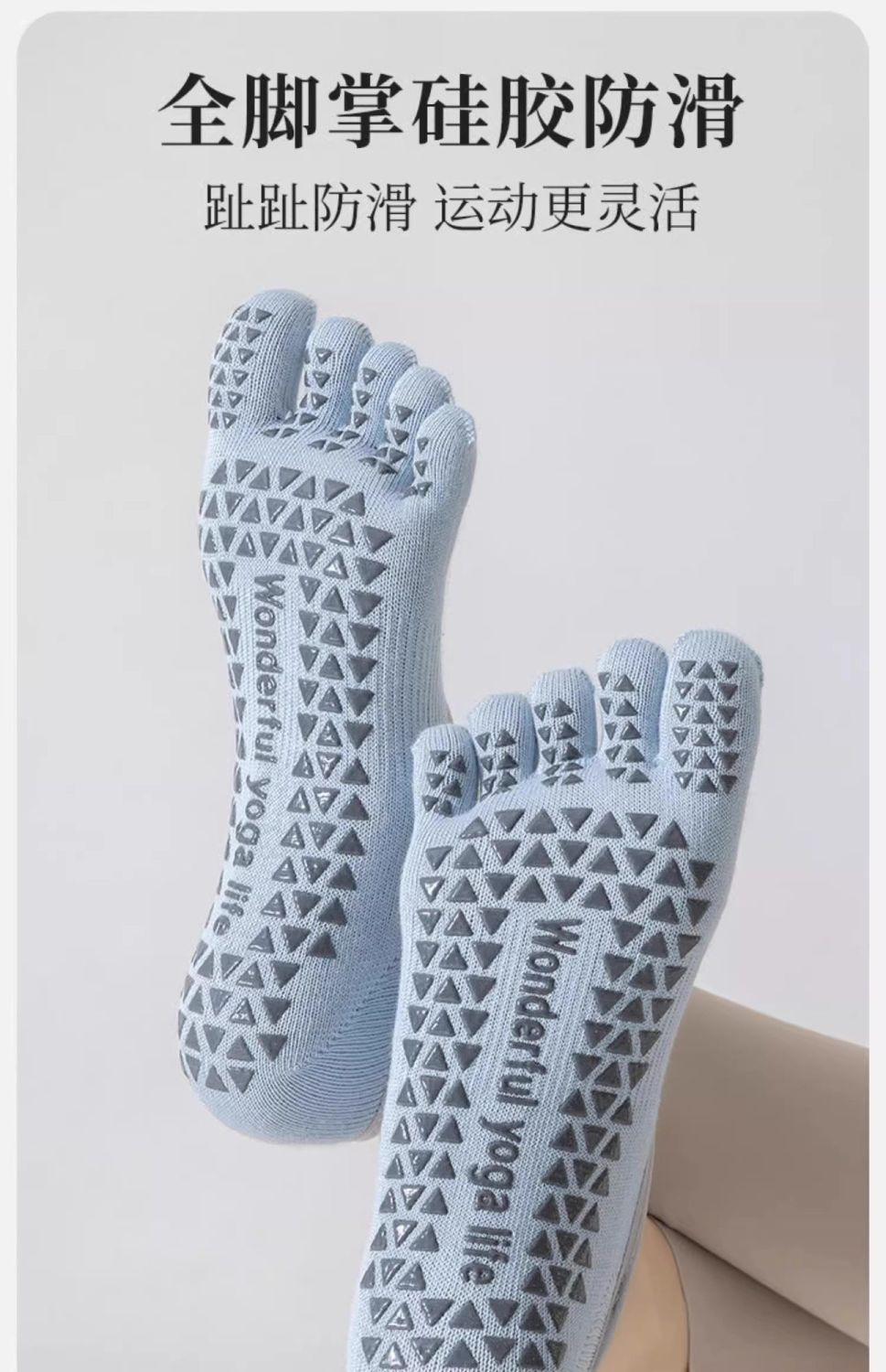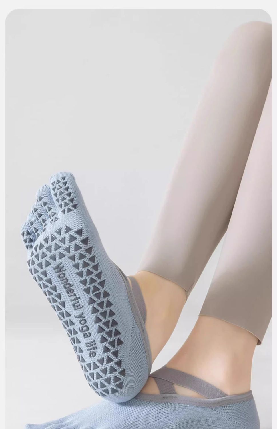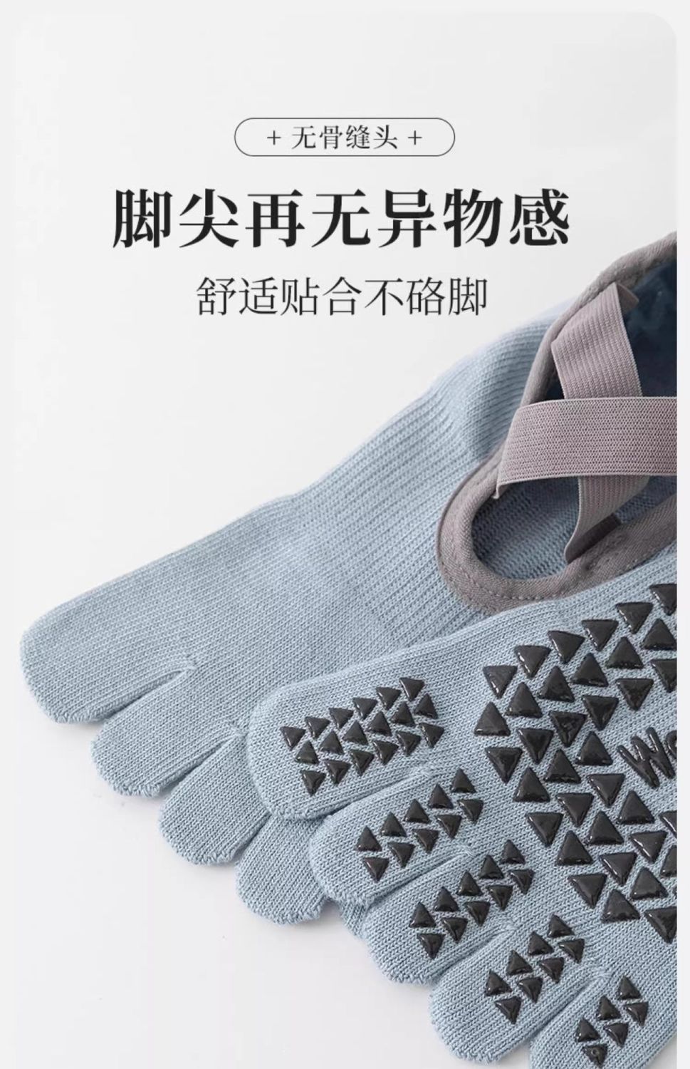極簡美學瑜珈五趾襪女矽膠防滑交叉綁帶足弓交叉襪靜音跳躍不擾民