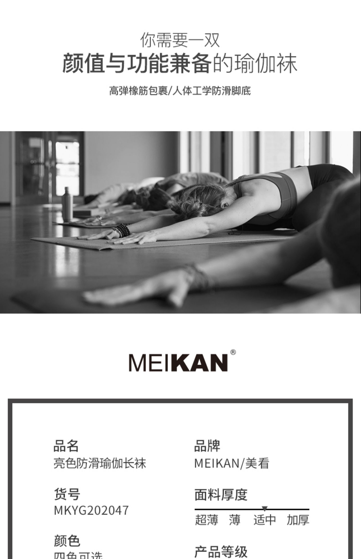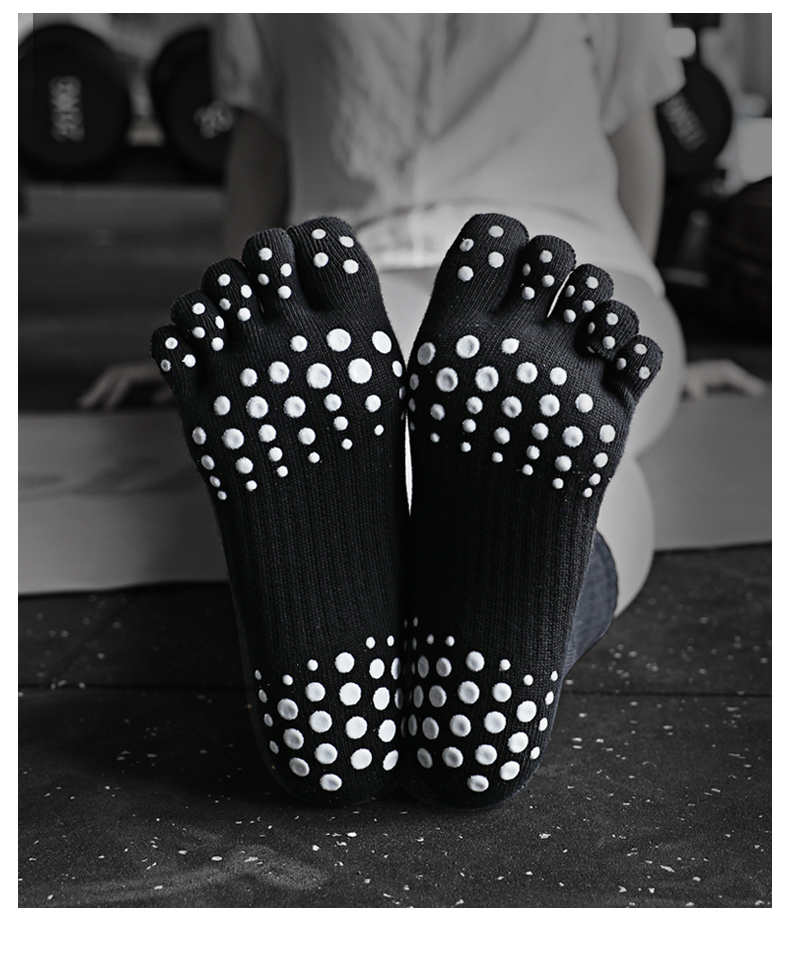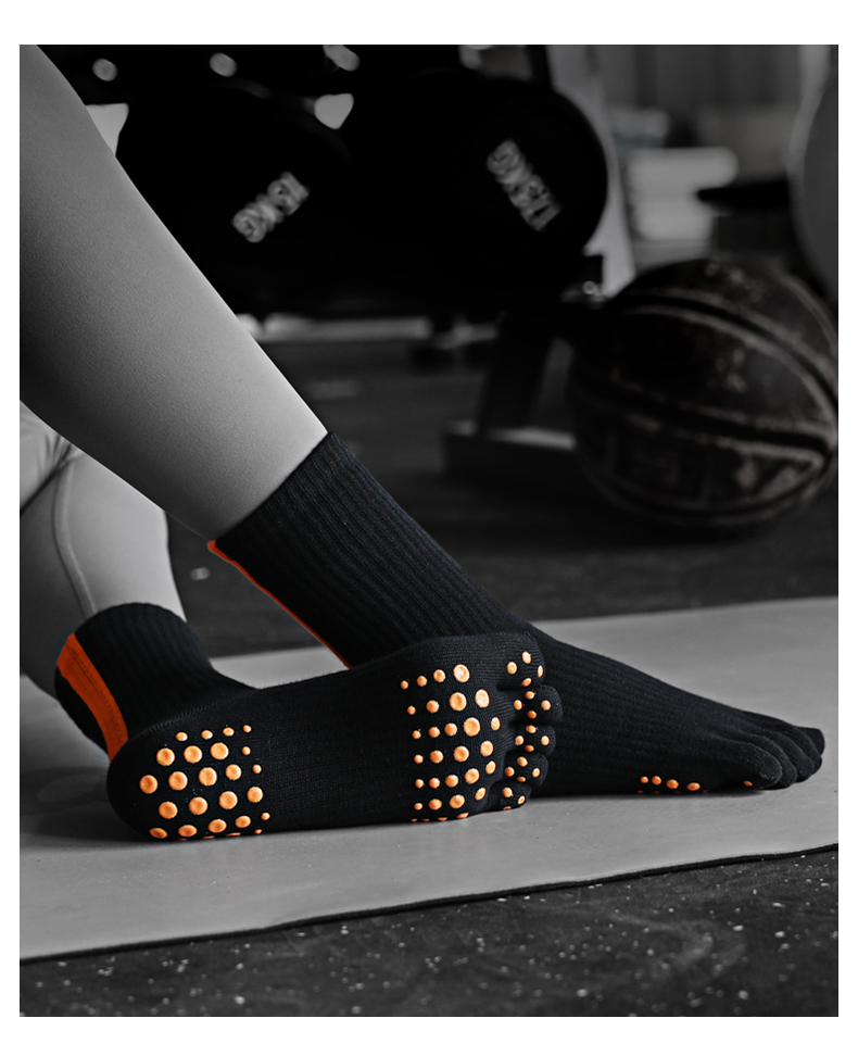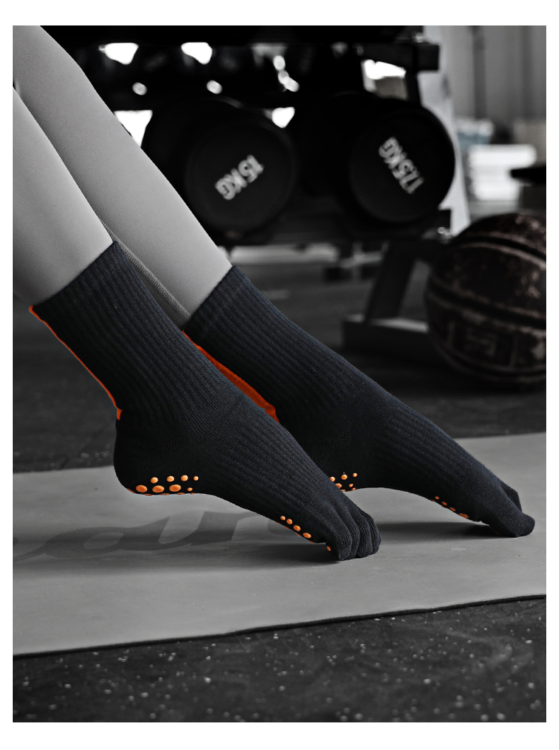 MEIKAN五指瑜珈襪健身地板襪中筒運動女專業防滑蹦床舞蹈分趾襪子