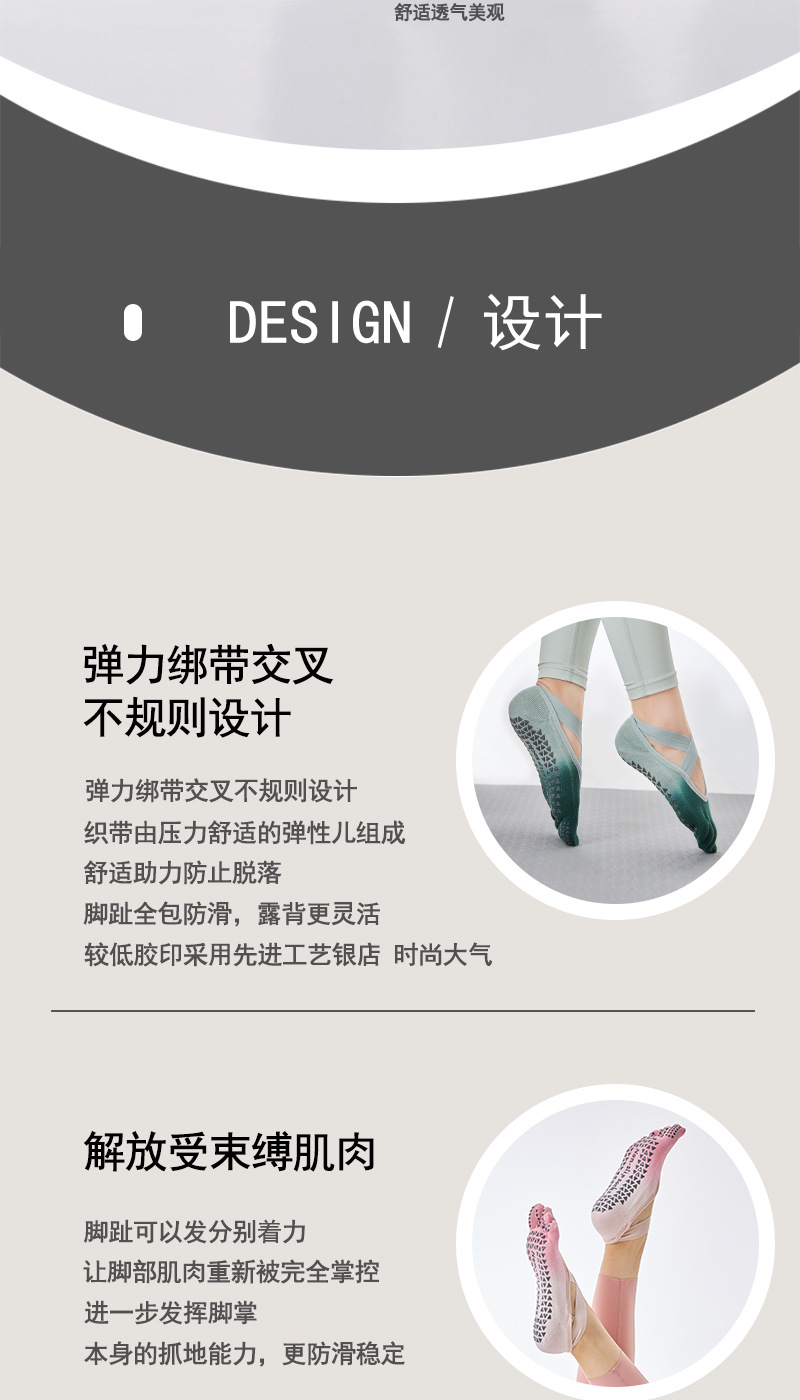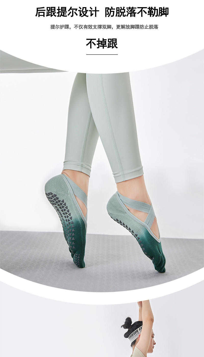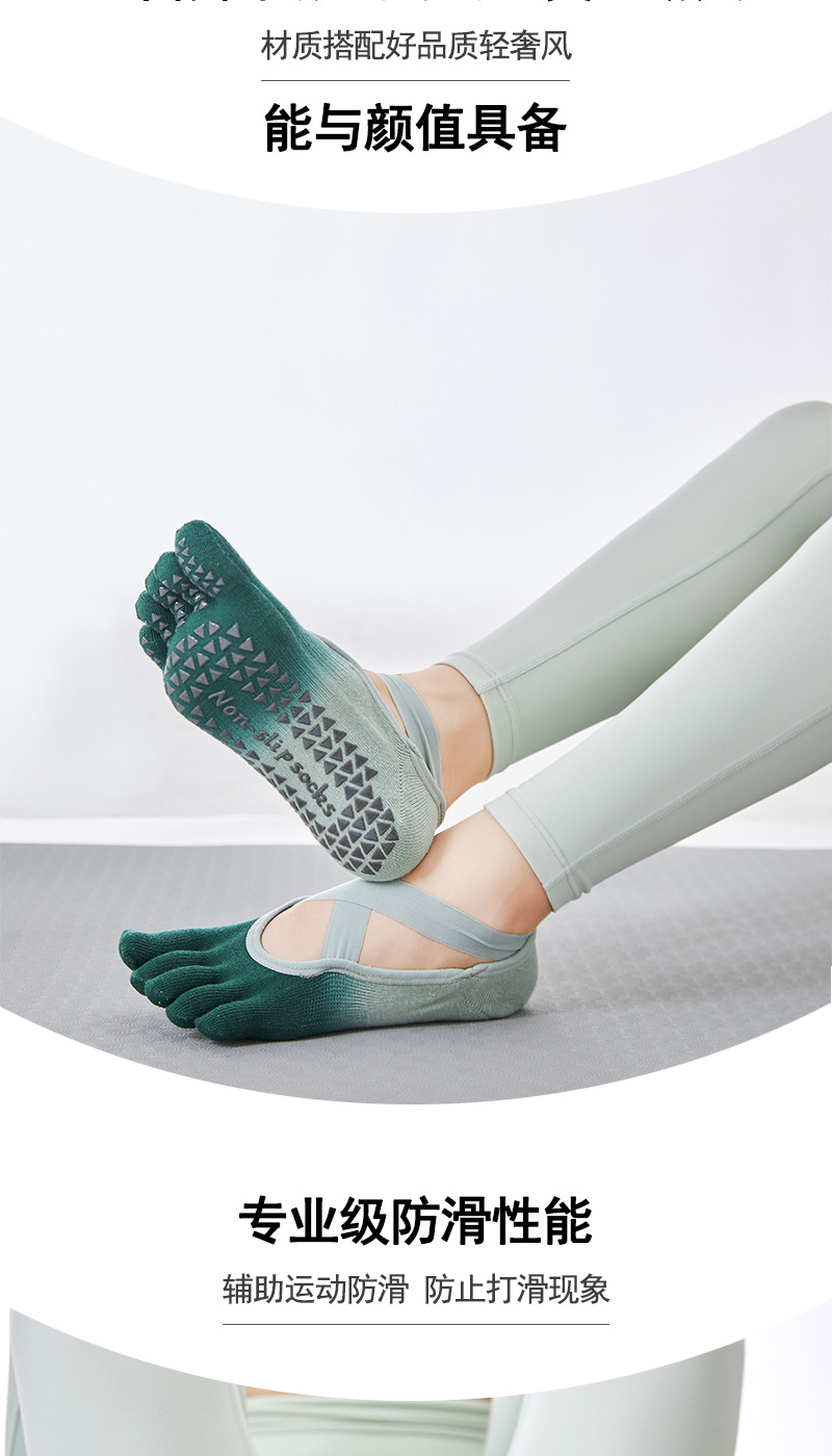 嵐紋漸變五指瑜珈襪女彈力防滑綁帶地板襪耐磨透氣舞蹈普拉提船襪