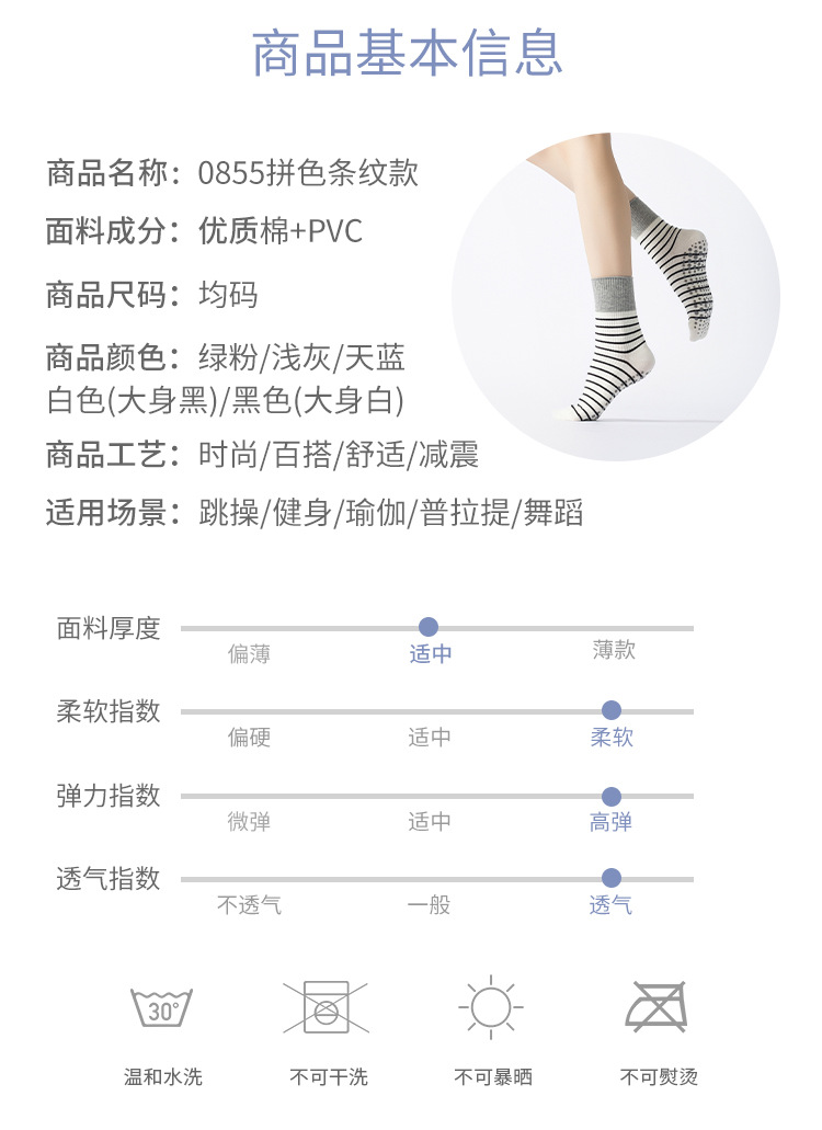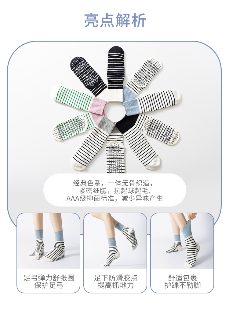 2025新品拼色條紋專業健身瑜珈襪日系學院風吸溼排汗普拉提防滑襪