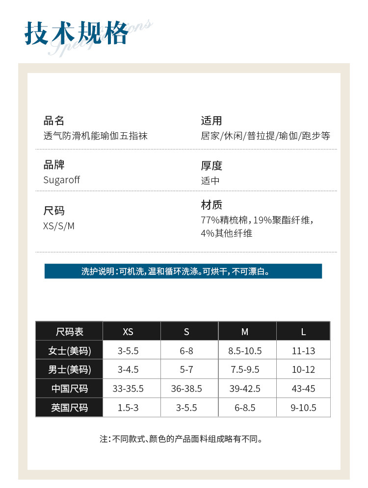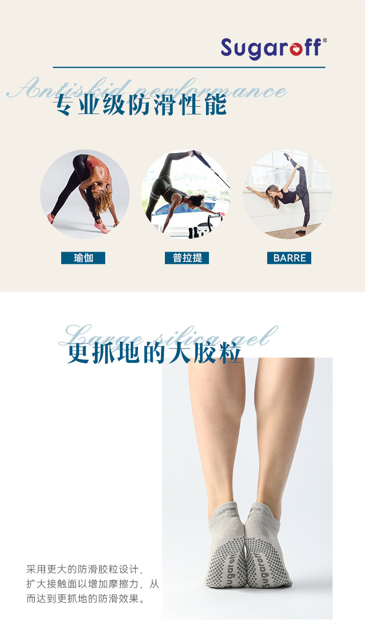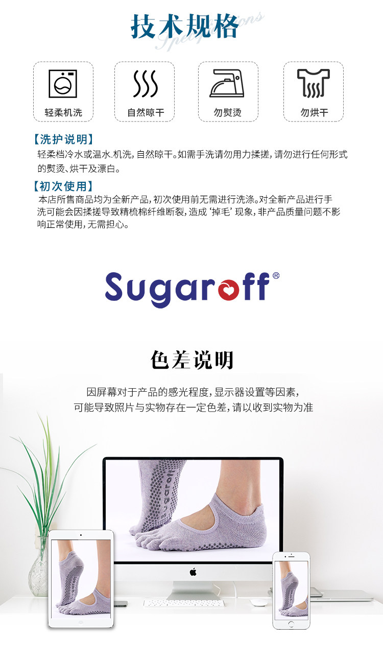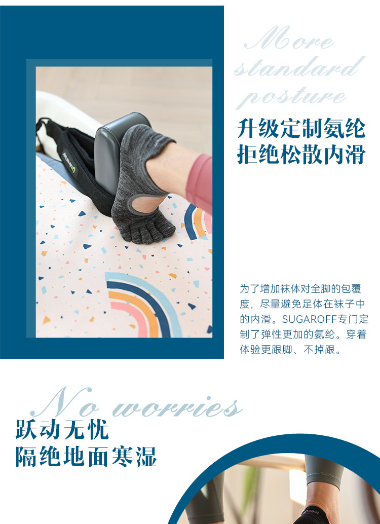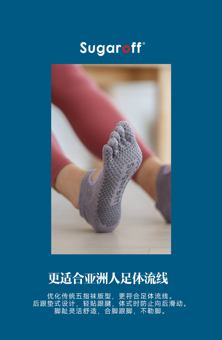 Sugaroff專業普拉提瑜珈防滑五指襪子女室內練習健身訓練襪防滑襪