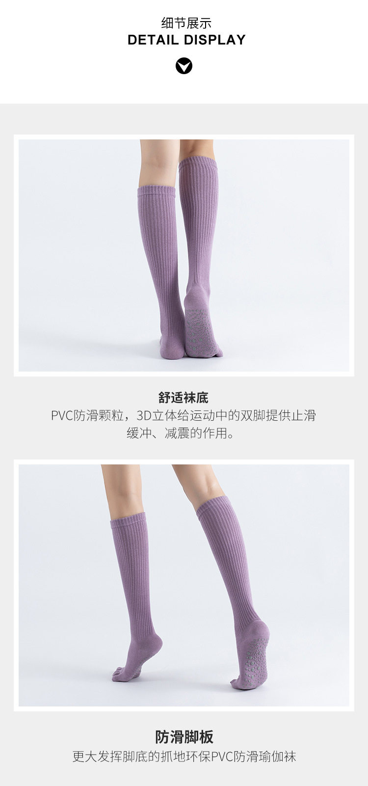 瑜珈襪子防滑專業女五指襪中筒小腿襪普拉提襪室內健身運動長襪春