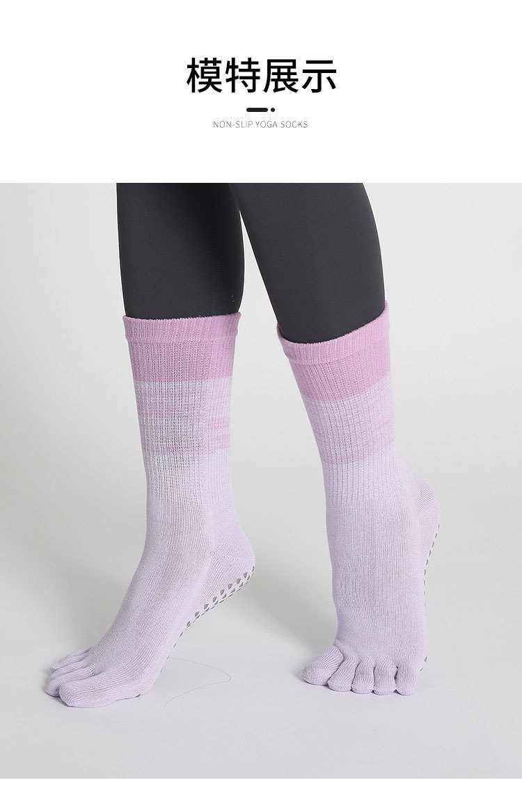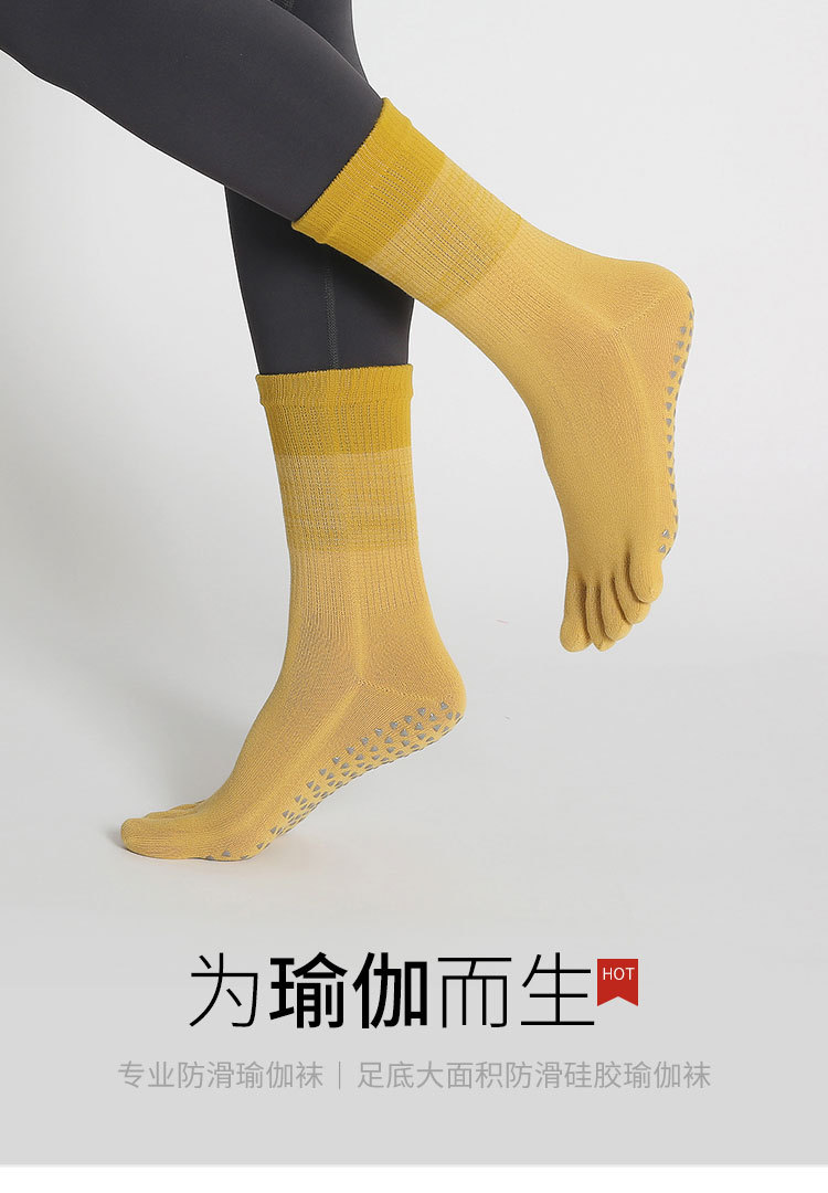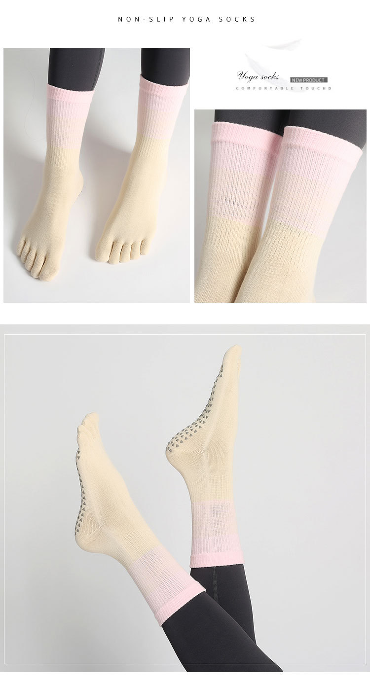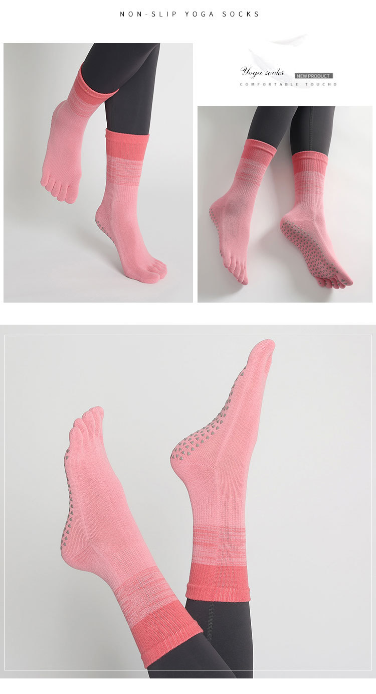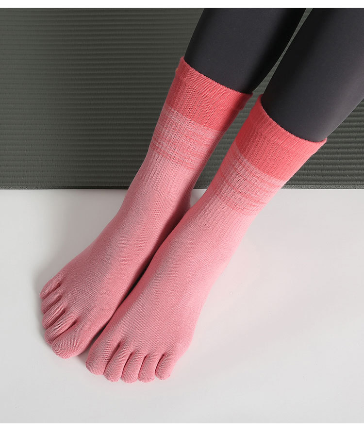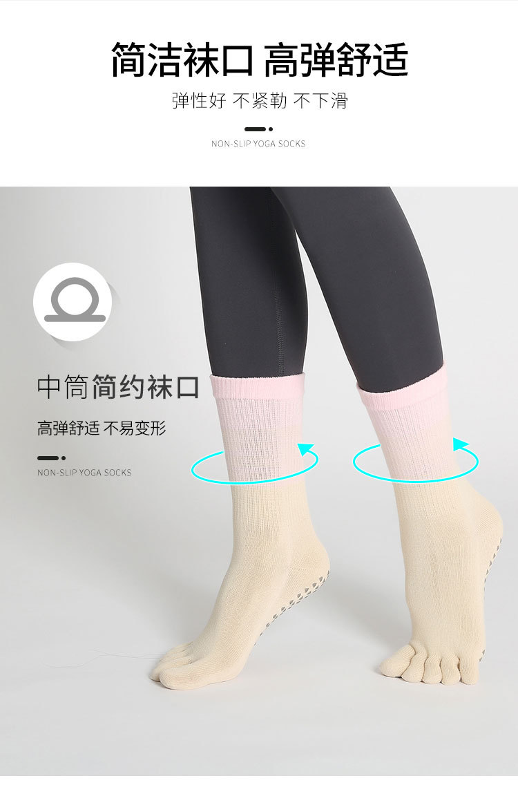 粉色防滑五指健身襪女專業訓練分趾運動襪中筒普拉提訓練瑜珈襪秋