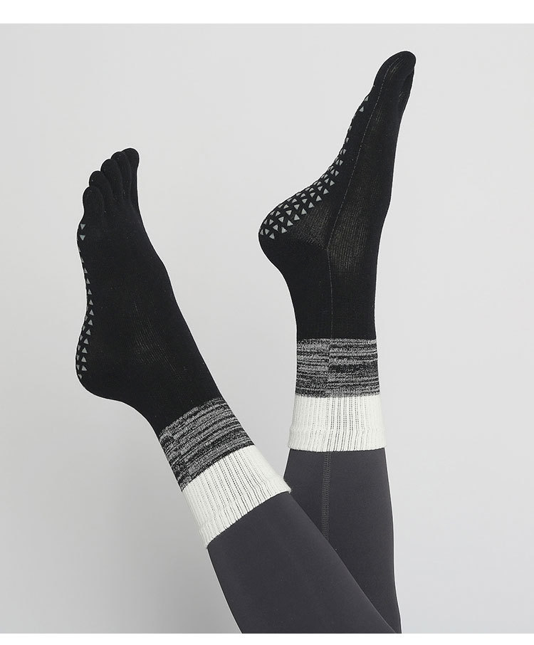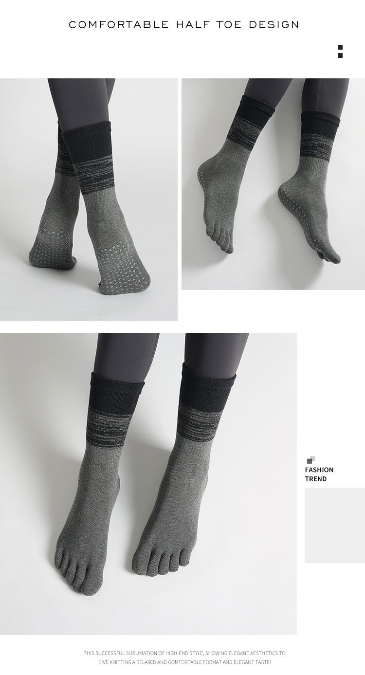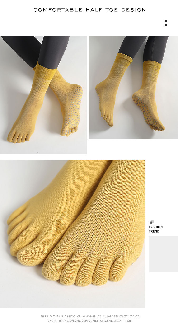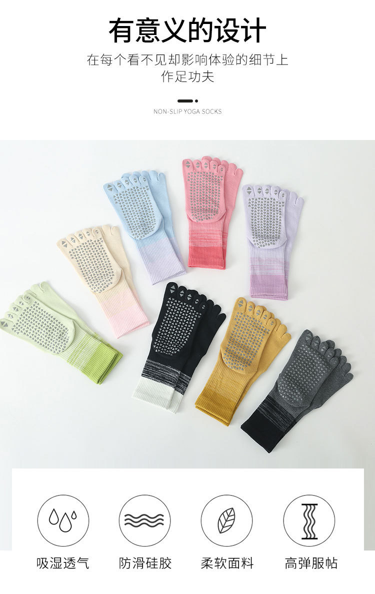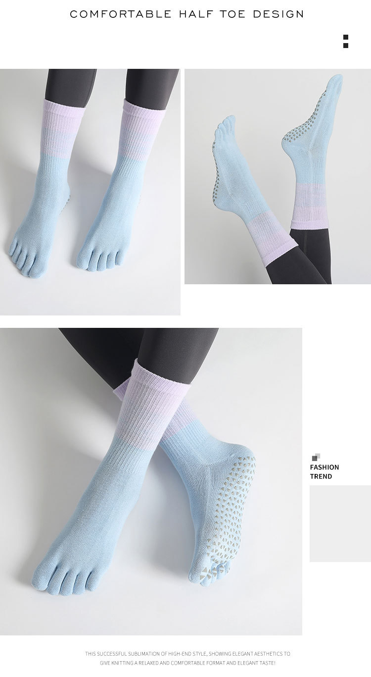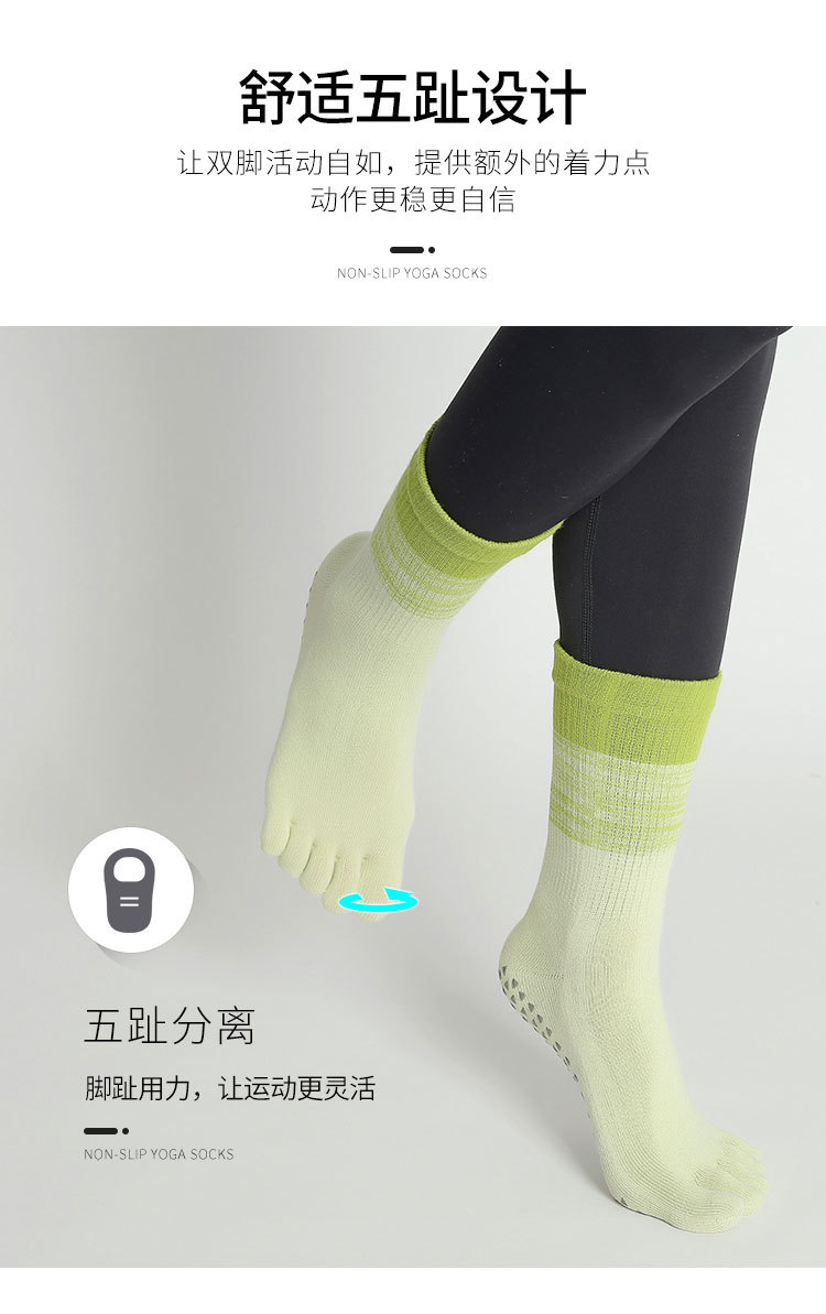 粉色防滑五指健身襪女專業訓練分趾運動襪中筒普拉提訓練瑜珈襪秋