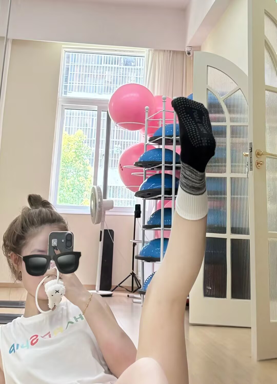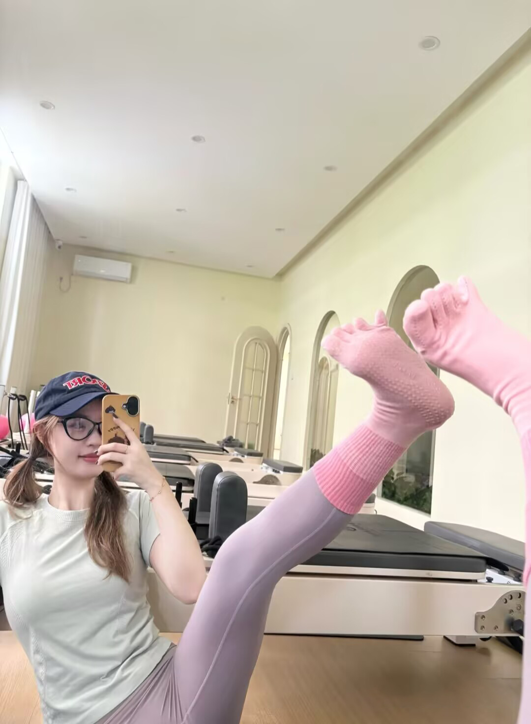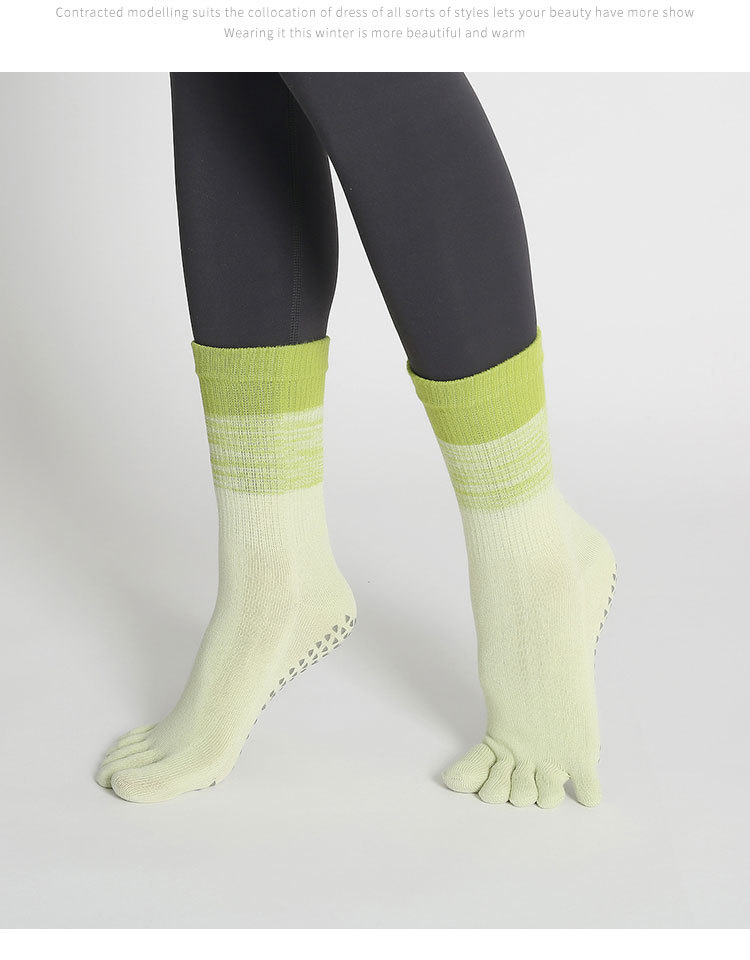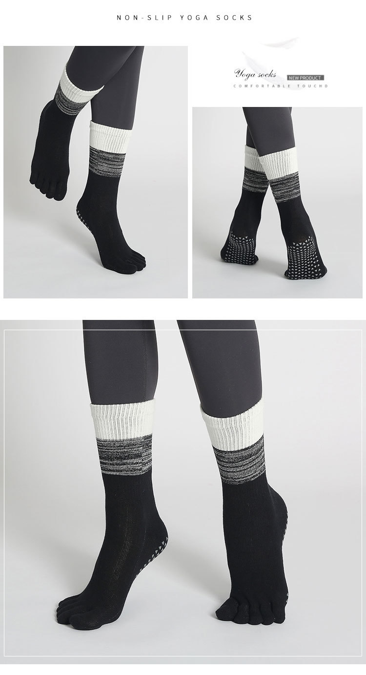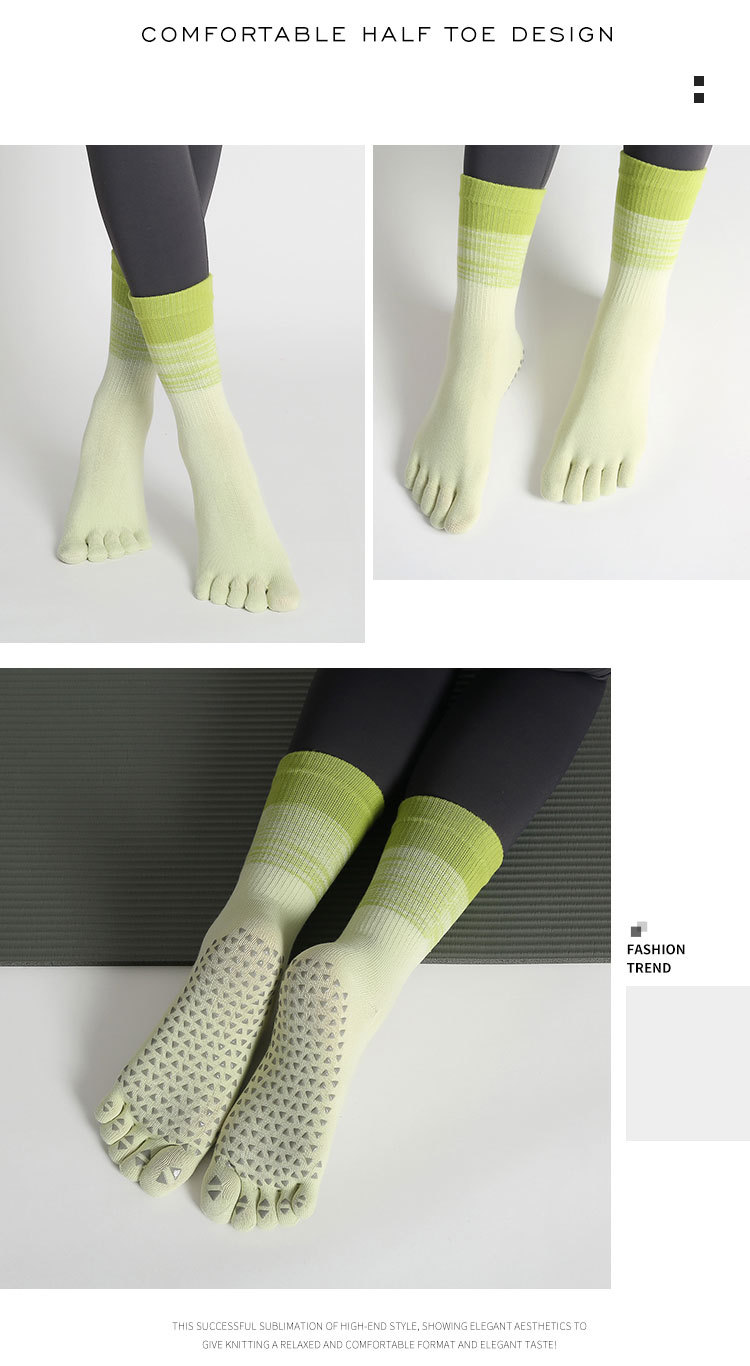 粉色防滑五指健身襪女專業訓練分趾運動襪中筒普拉提訓練瑜珈襪秋