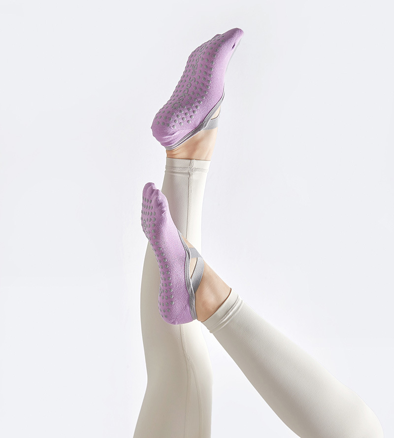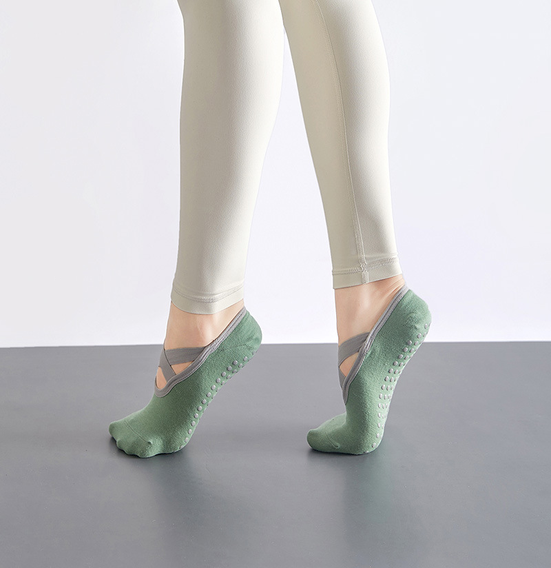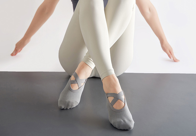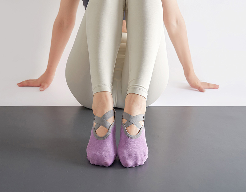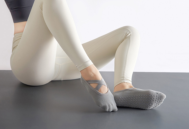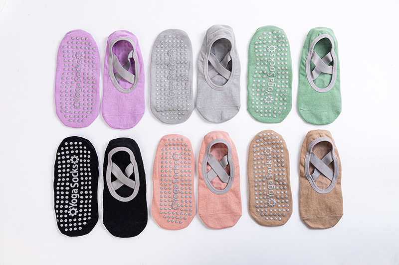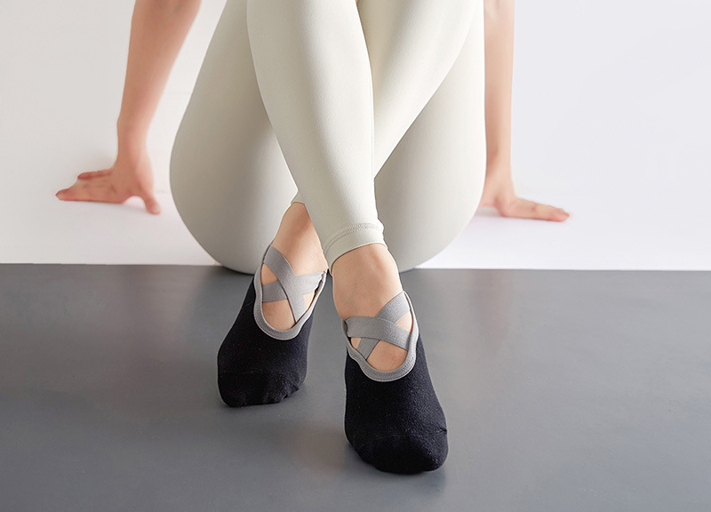 專業瑜珈襪子女士防滑短筒運動隱形船襪交叉帶子蹦床普拉提吸汗薄