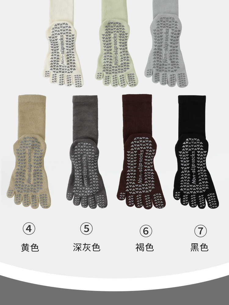 秋冬瑜珈襪普拉提襪子五指襪中筒專業防滑襪女室內運動襪分趾襪厚