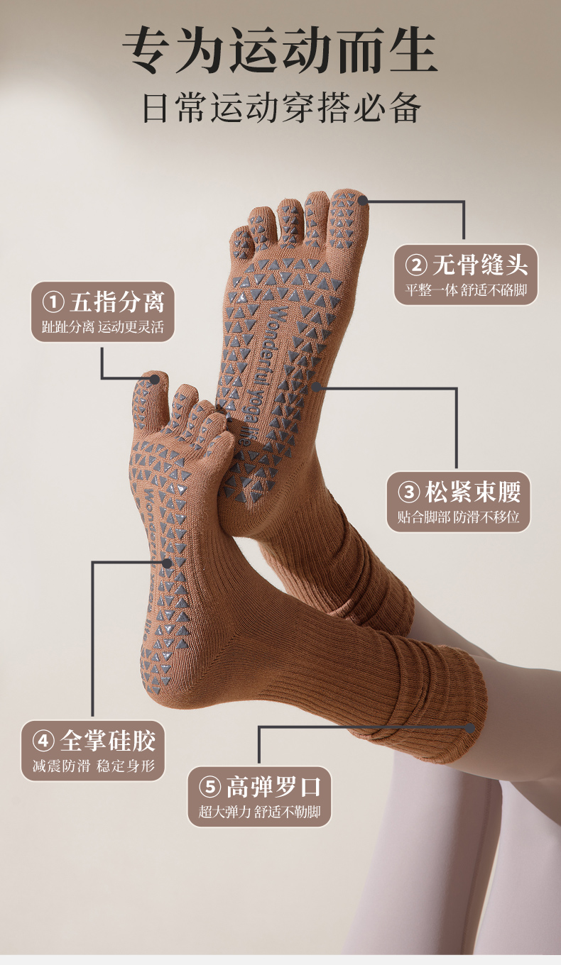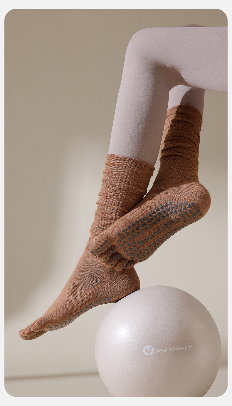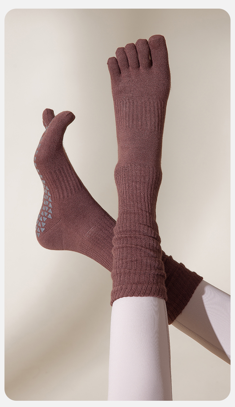日本瑜珈襪子防滑專業女五指襪中筒運動普拉提室內舞蹈分趾襪秋冬