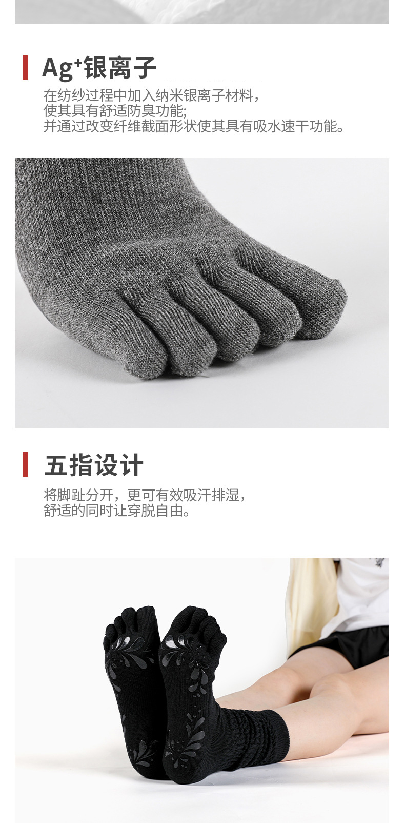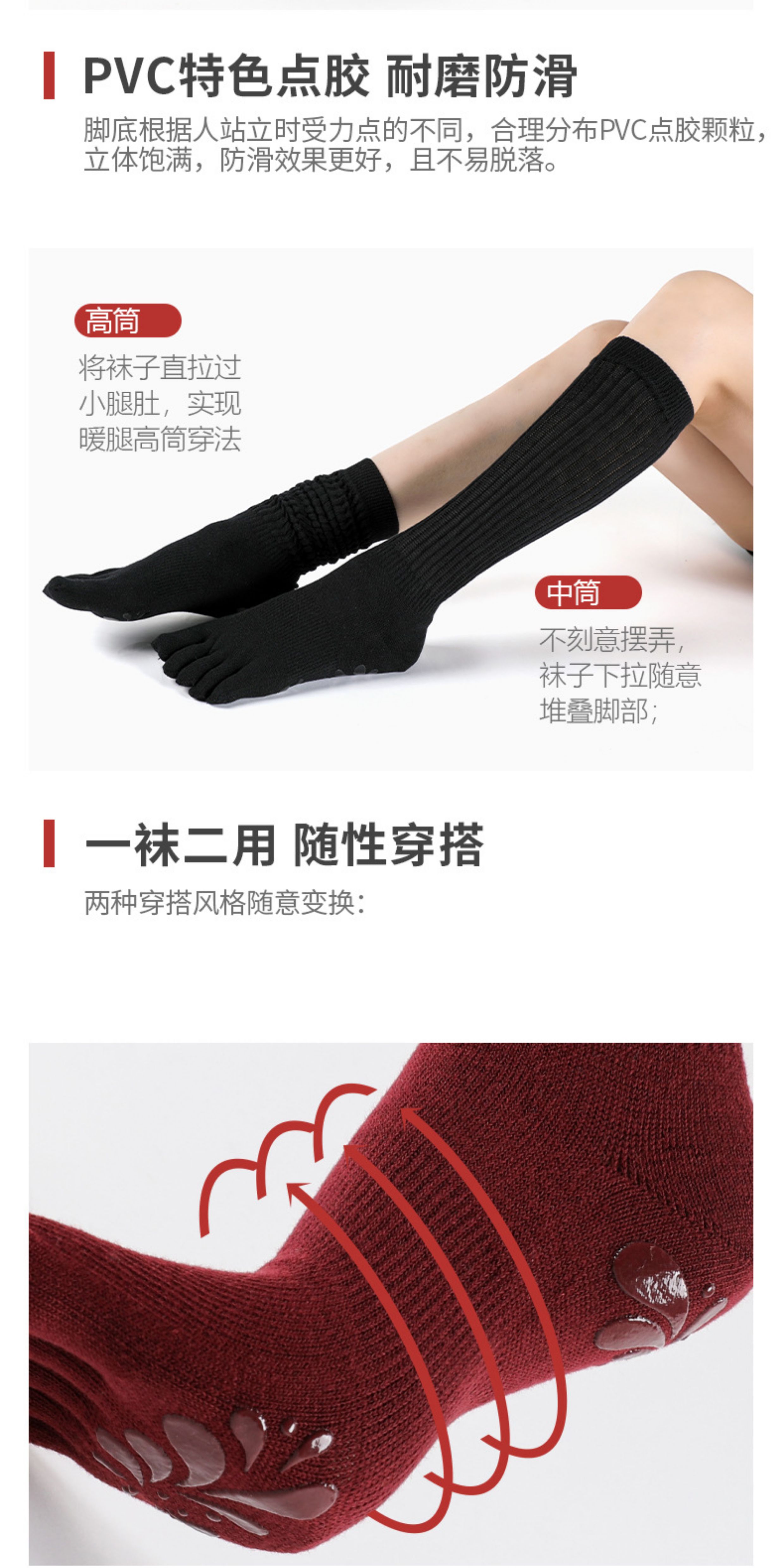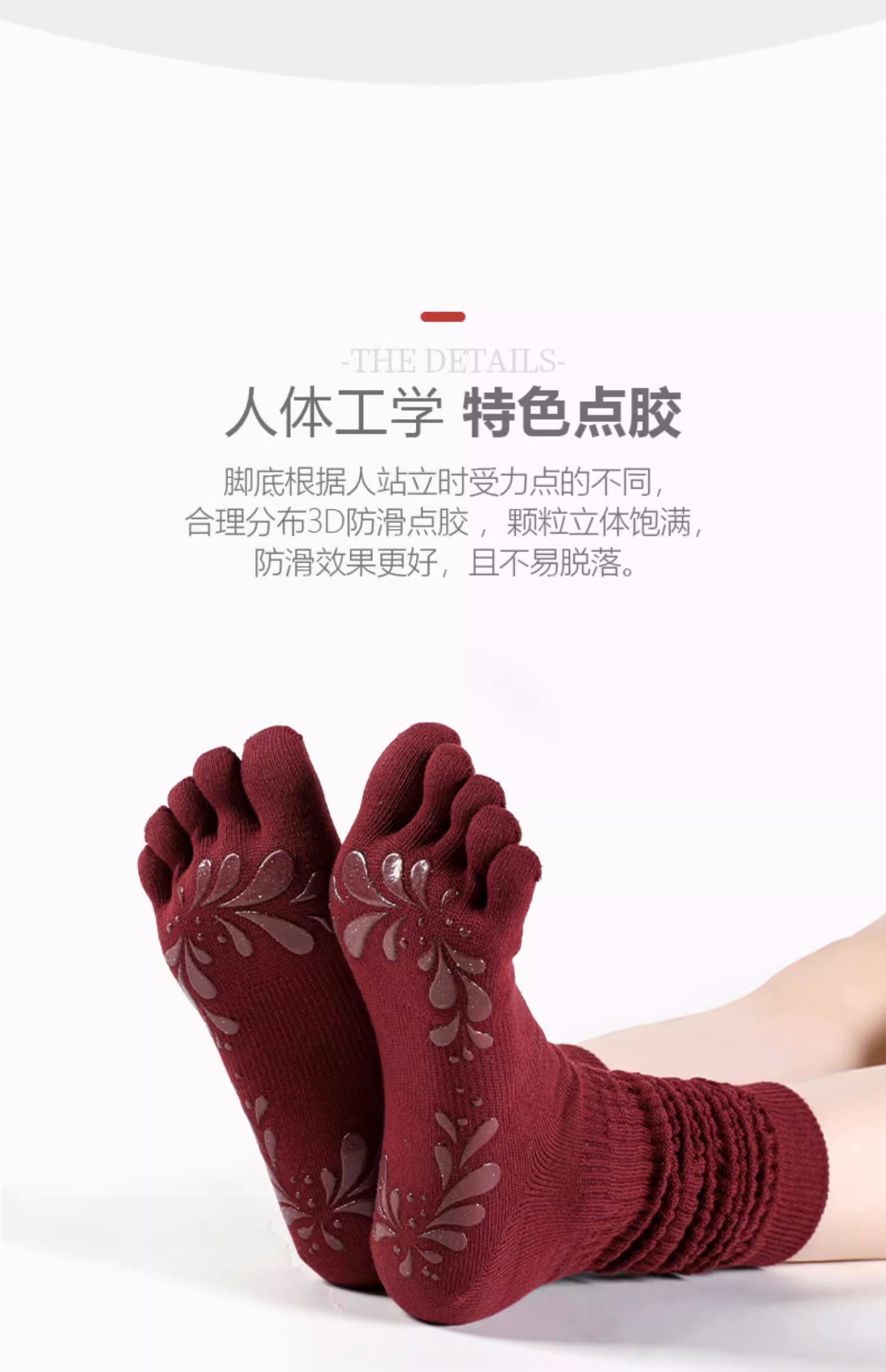 長筒瑜珈襪子防滑專業女五指襪普拉提襪子地板襪成人瑜珈防滑襪