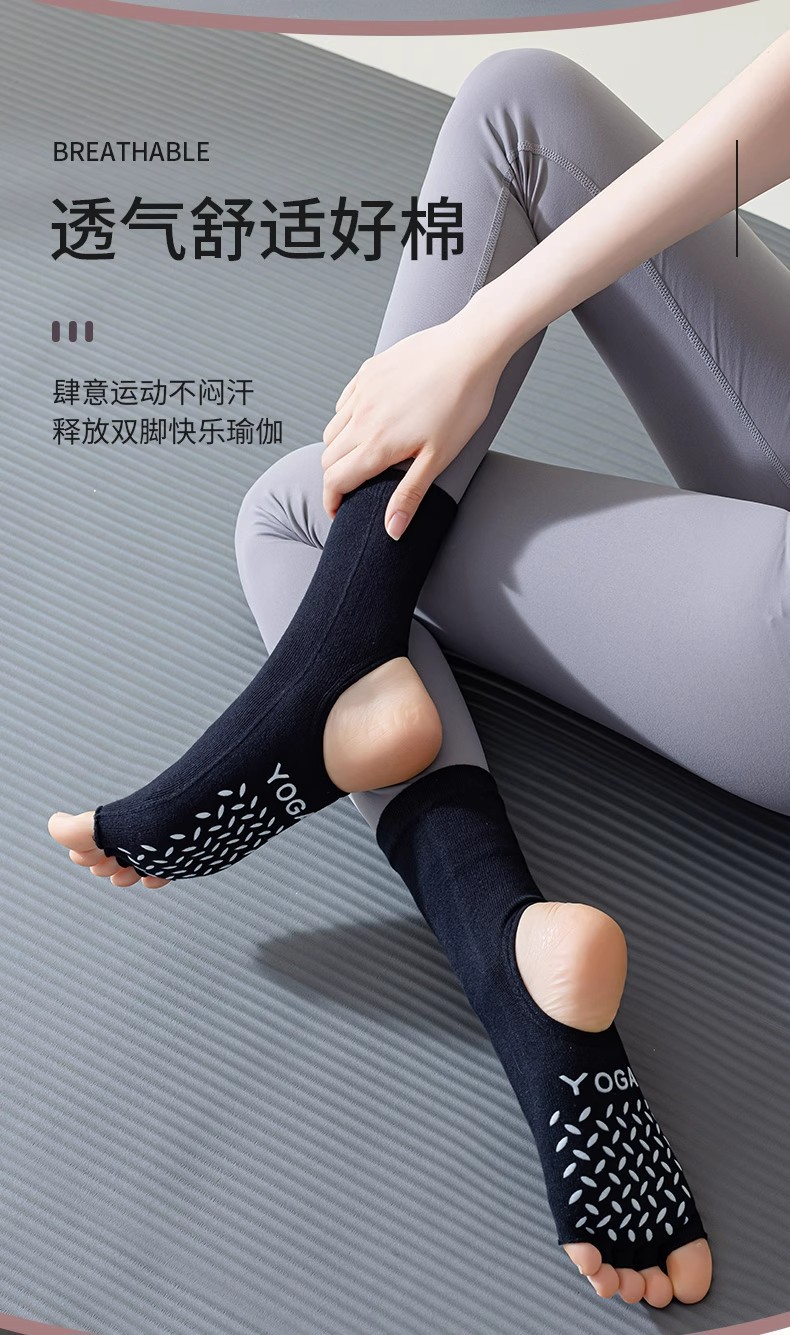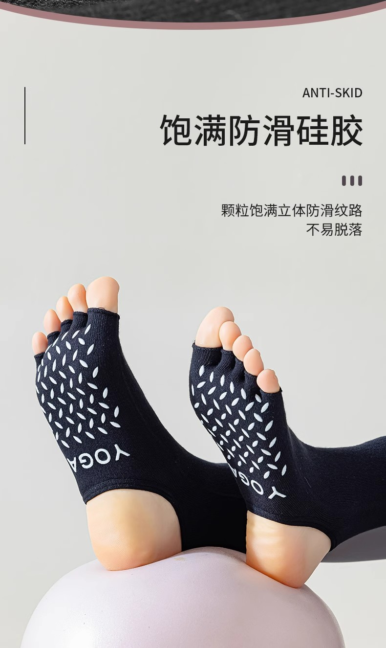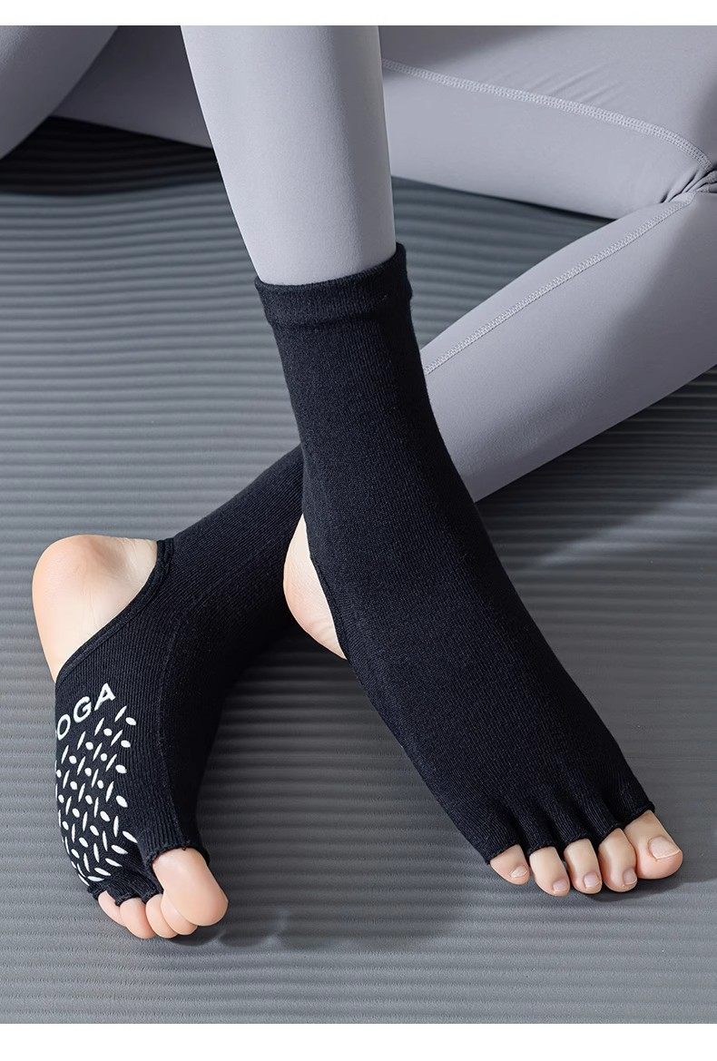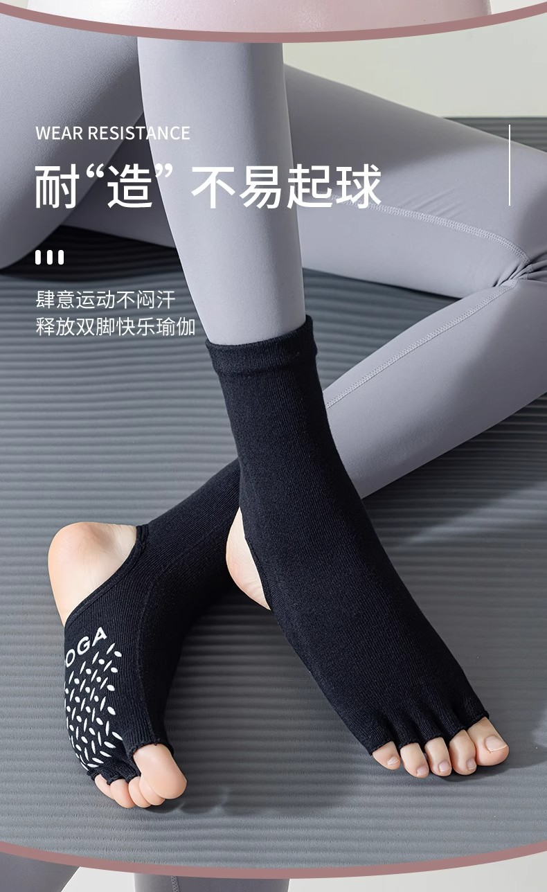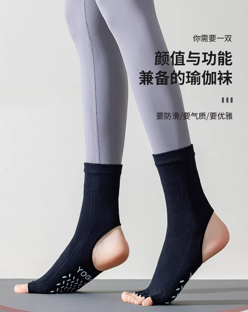 小魚加加露趾露腳跟五指瑜珈襪防滑女襪春夏高筒專業運動中筒襪