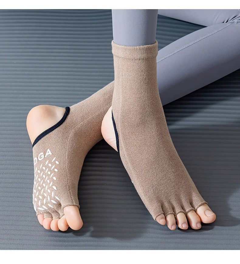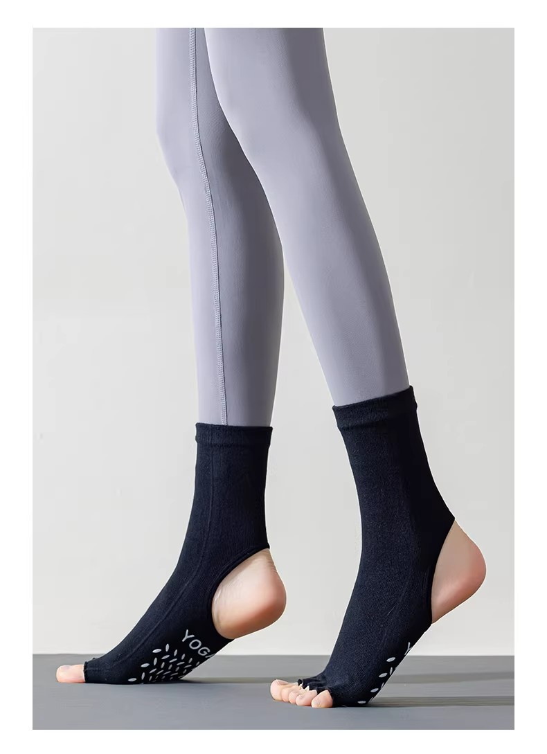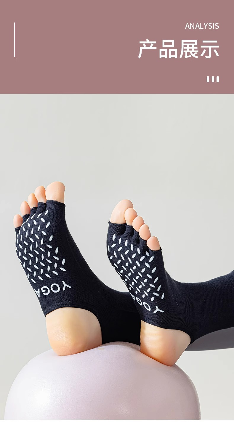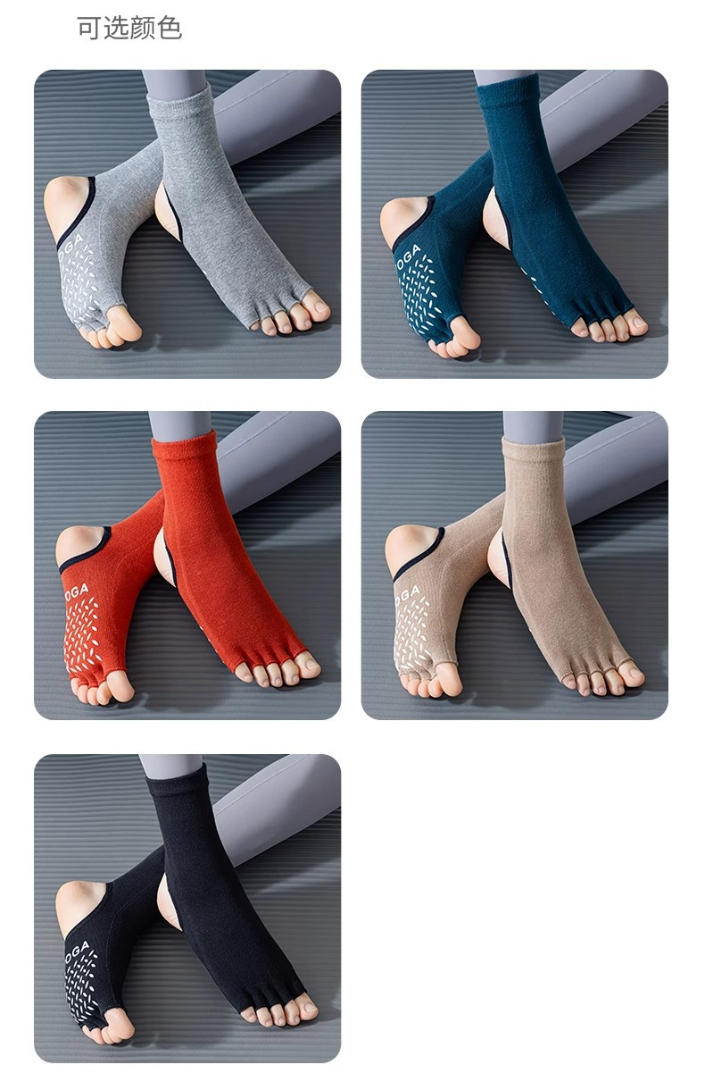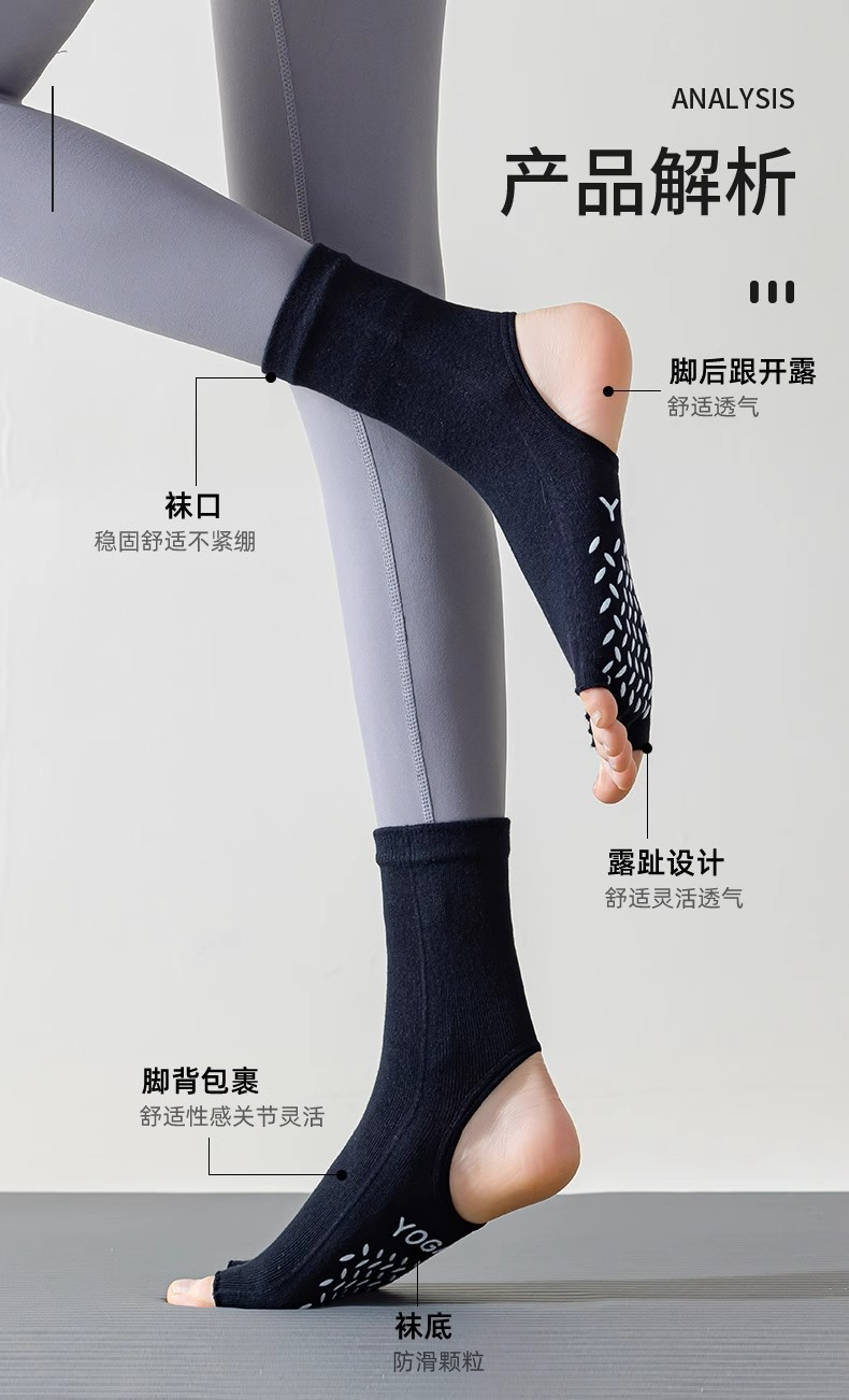 小魚加加露趾露腳跟五指瑜珈襪防滑女襪春夏高筒專業運動中筒襪