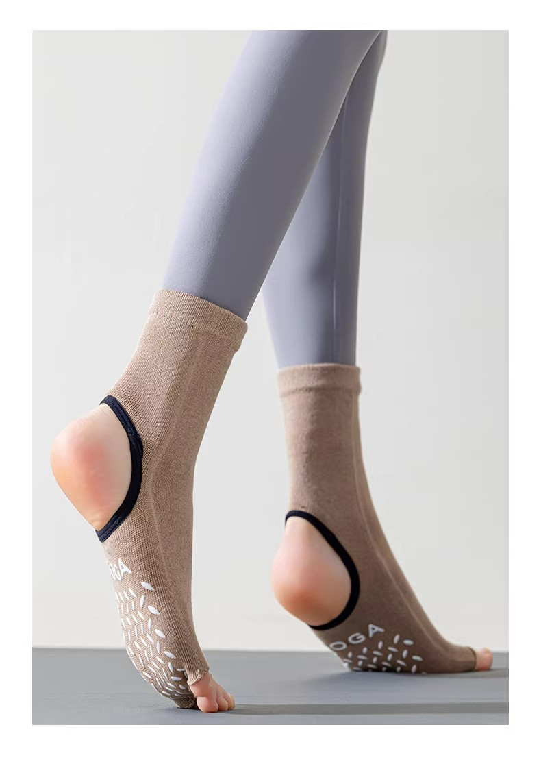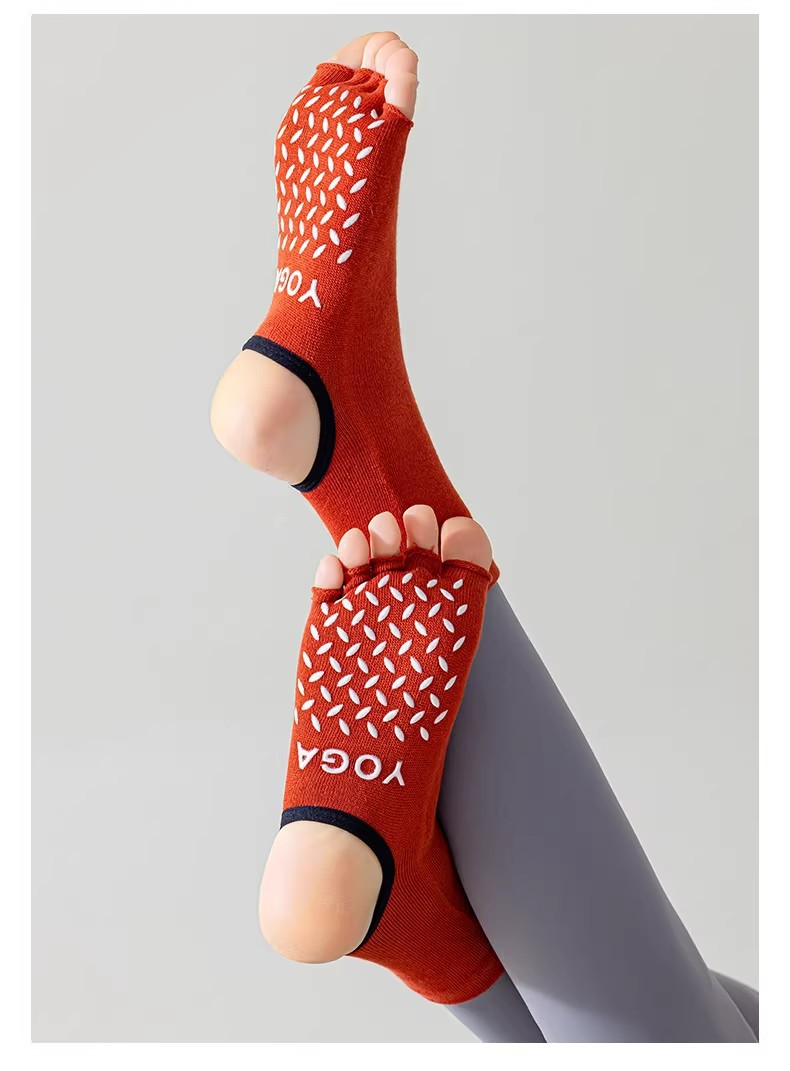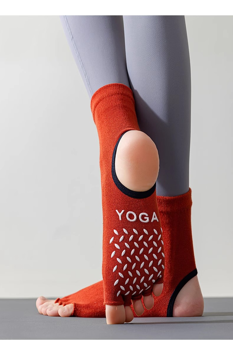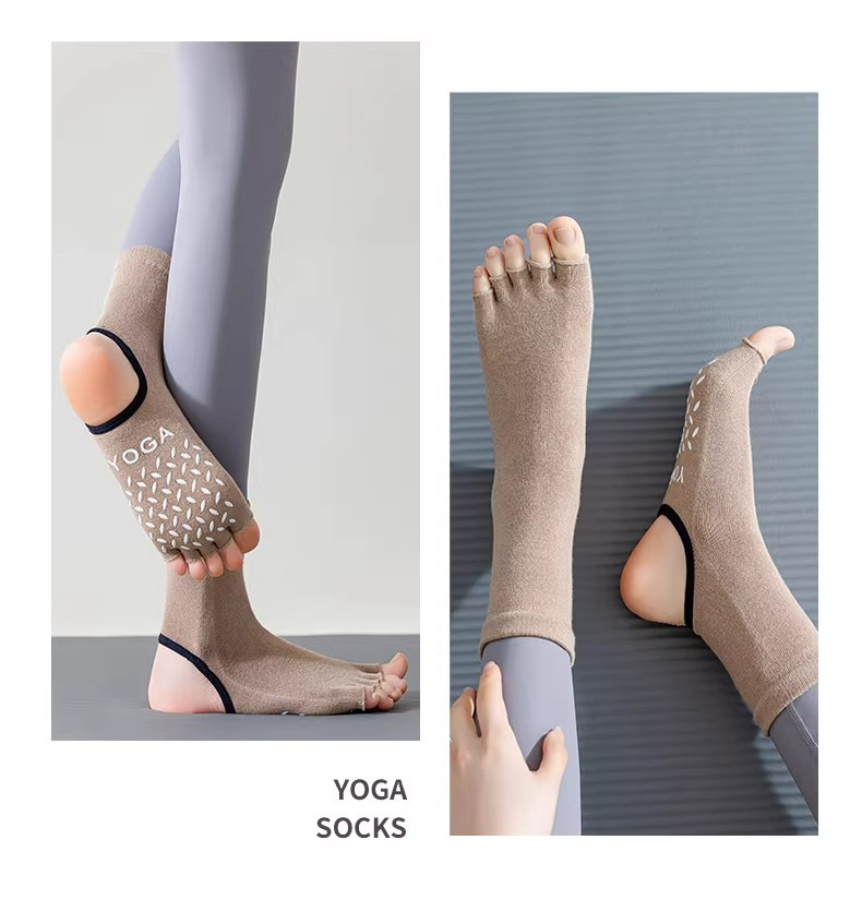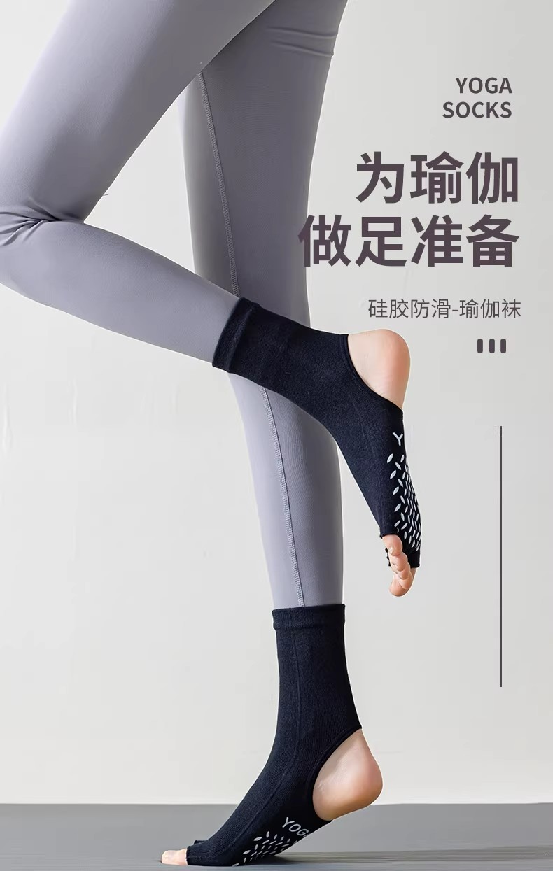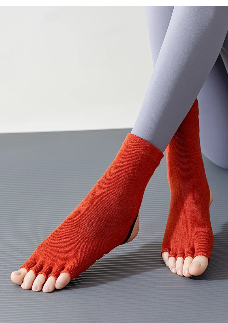 小魚加加露趾露腳跟五指瑜珈襪防滑女襪春夏高筒專業運動中筒襪